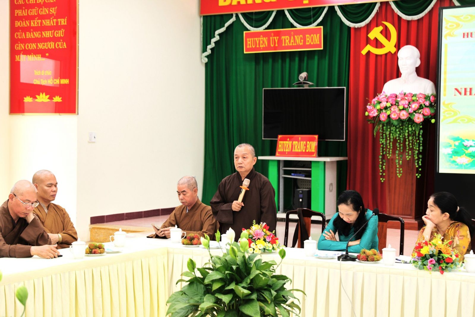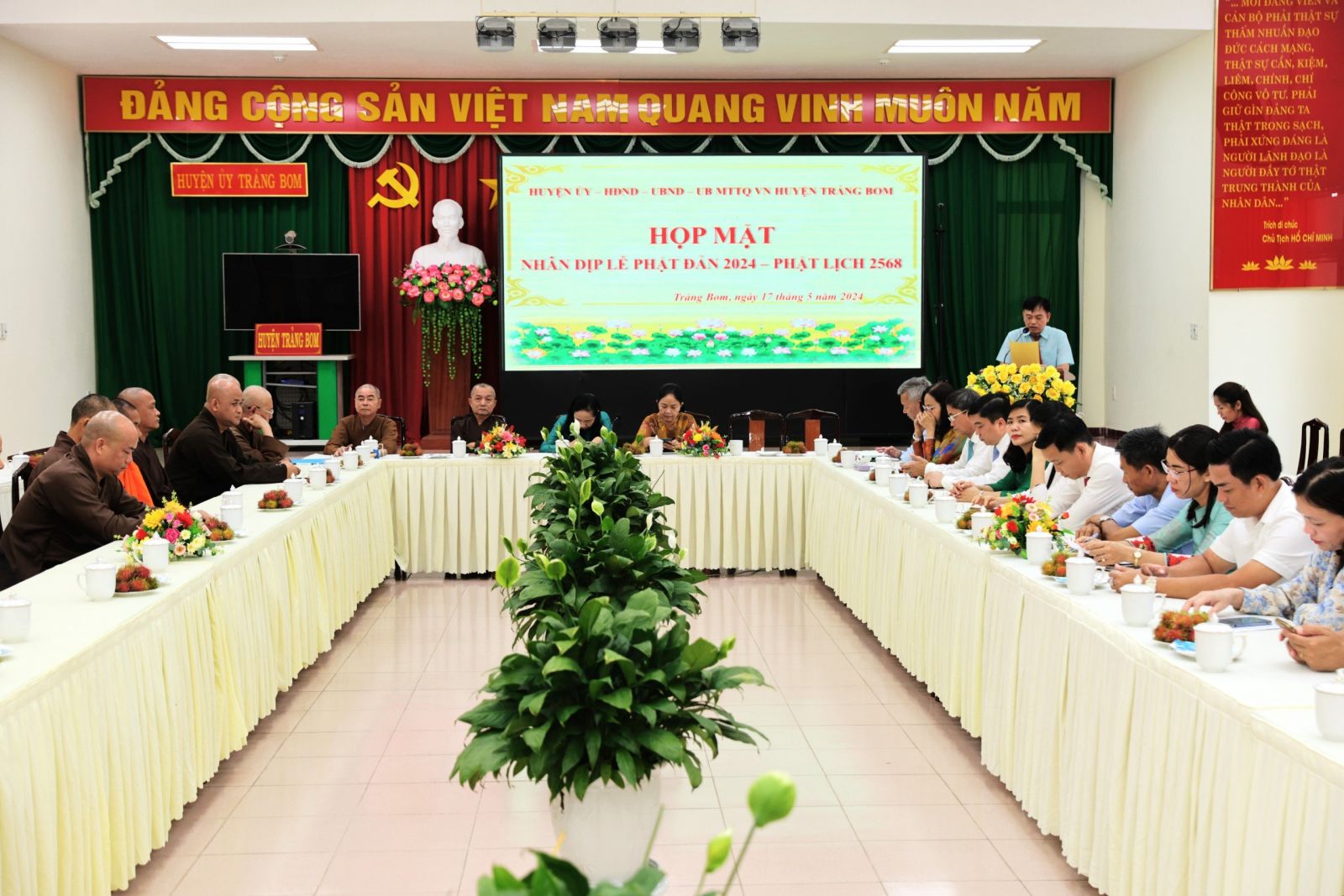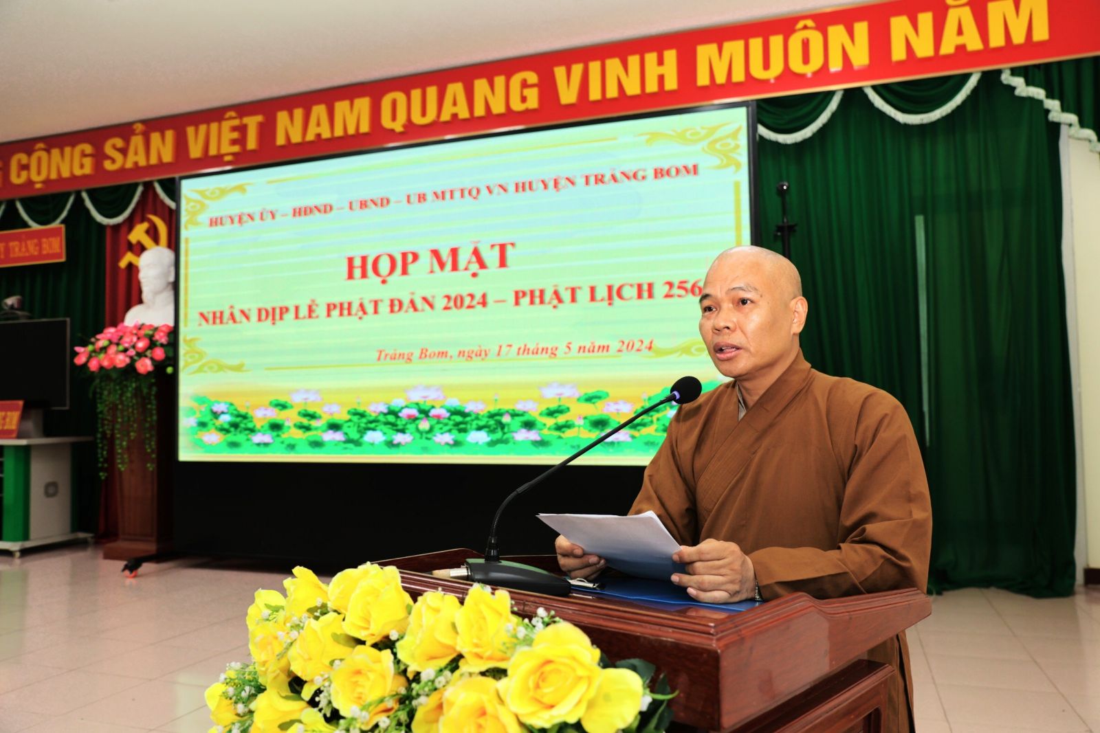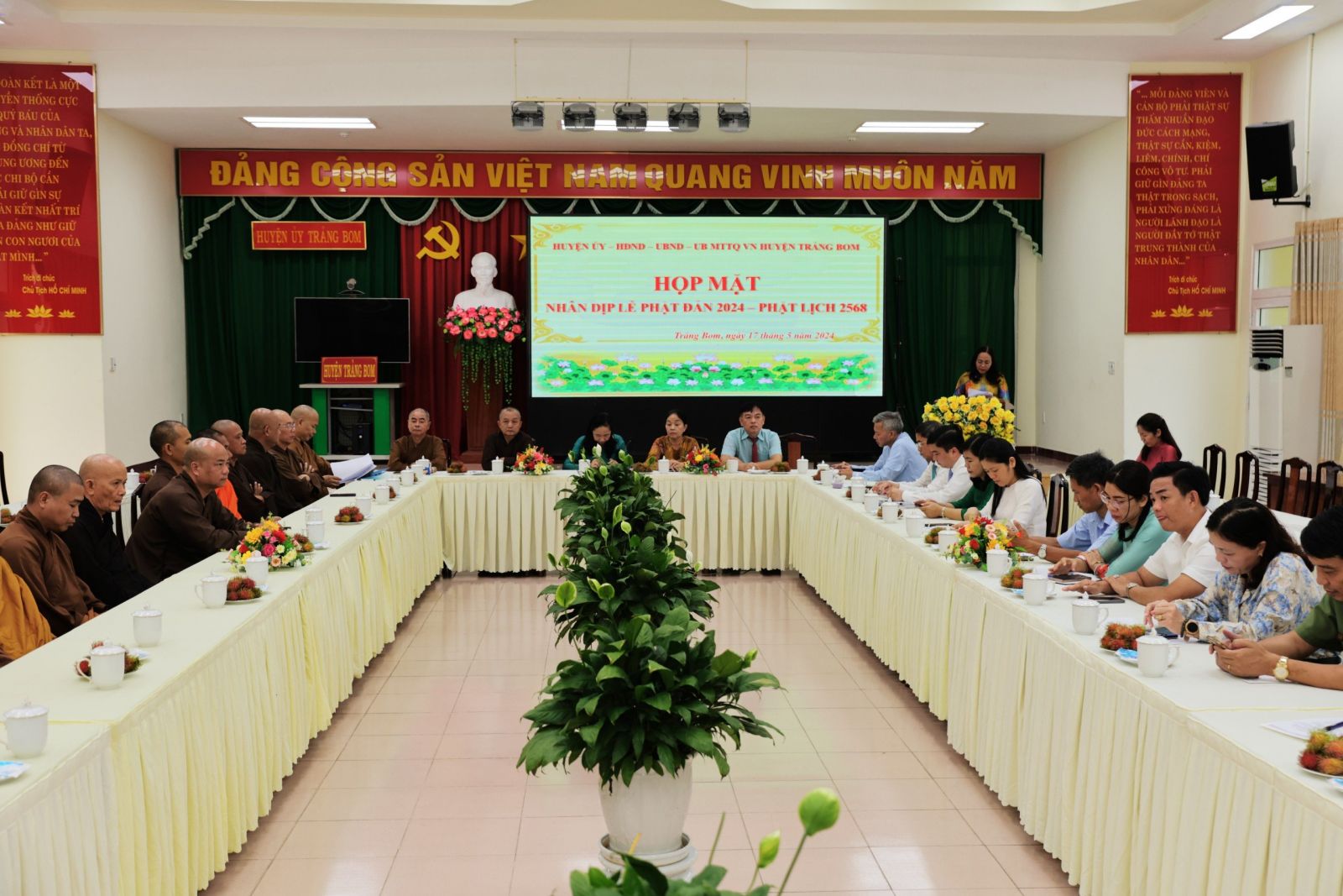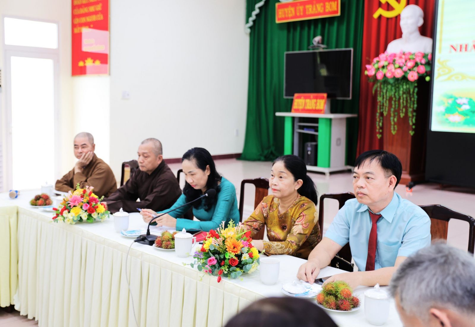 Tại buổi họp mặt, lãnh đạo huyện Trảng Bom đã thông tin về tình hình kinh tế, xã hội của huyện trong thời gian qua và khẳng định trong sự phát triển chung đó có đóng góp không nhỏ của các chức sắc, chức việc, phật tử trên địa bàn huyện. Hàng năm, các cấp chính quyền trong huyện luôn quan tâm, tạo mọi điều kiện thuận lợi cho các hoạt động tôn giáo hợp pháp. Đồng thời đánh giá cao sự tham gia tích cực, có hiệu quả tăng ni, phật tử trong các phong trào, cuộc vận động do huyện phát động, góp phần nâng cao đời sống vật chất, tinh thần cho nhân dân, giữ vững an ninh chính trị và trật tự, an toàn xã hội tại địa phương; tạo mối quan hệ gắn bó, đoàn kết, đùm bọc lẫn nhau trong cộng đồng dân cư.