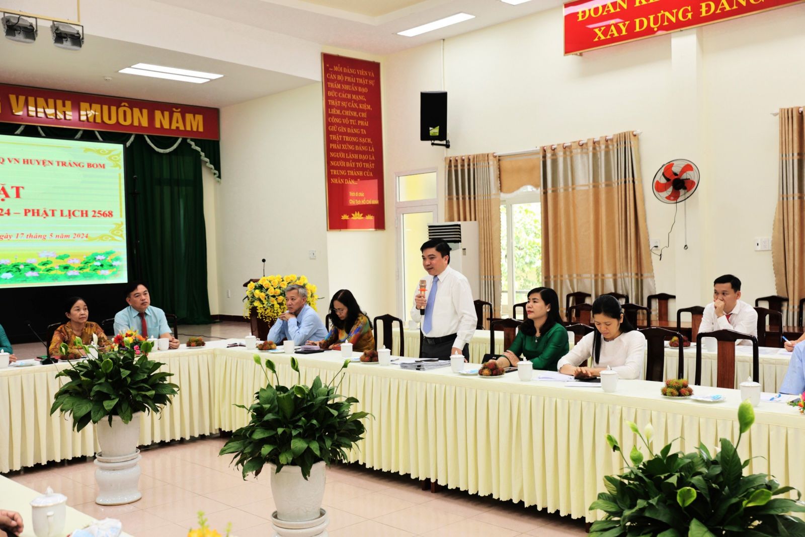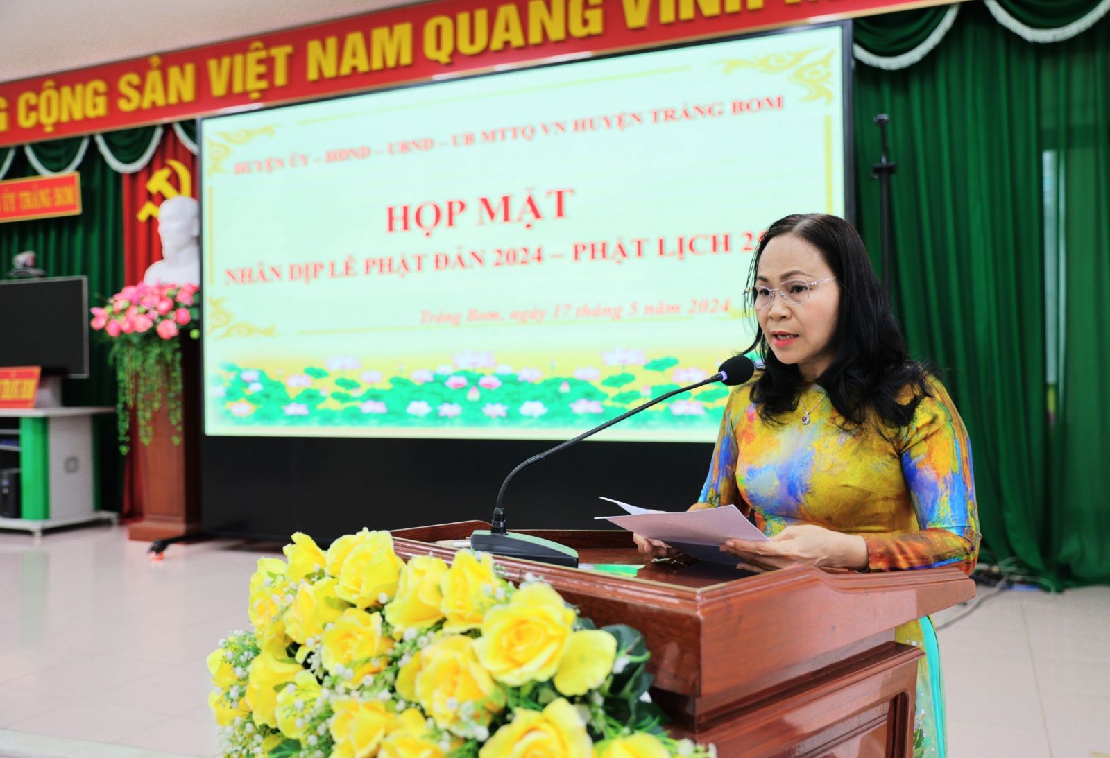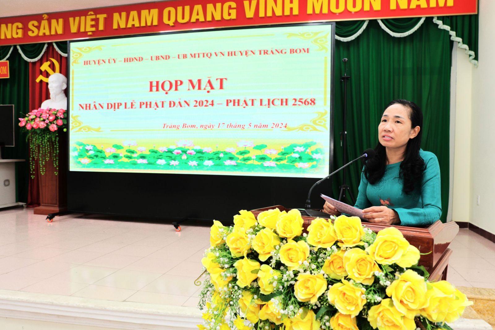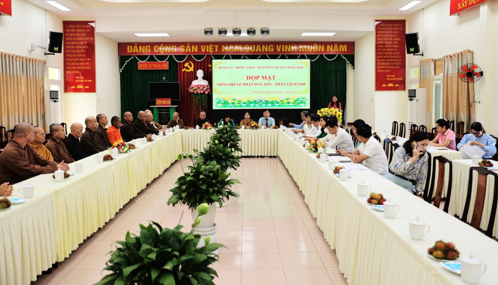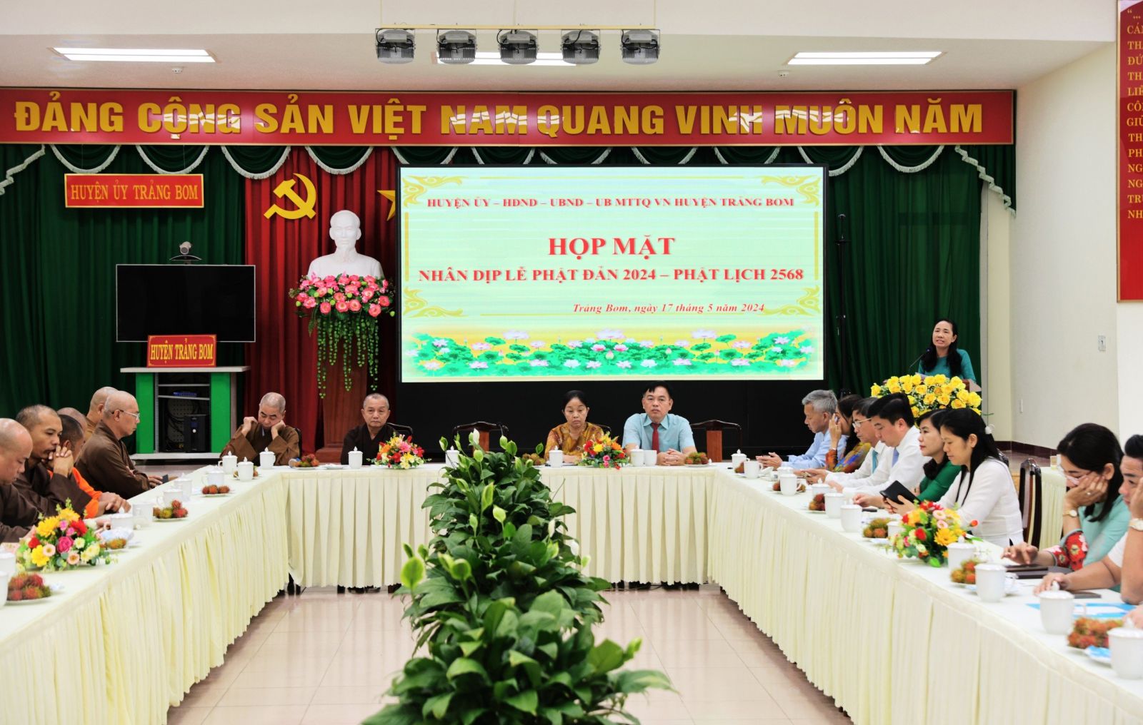 Tại buổi họp mặt, lãnh đạo huyện Trảng Bom đã thông tin về tình hình kinh tế, xã hội của huyện trong thời gian qua và khẳng định trong sự phát triển chung đó có đóng góp không nhỏ của các chức sắc, chức việc, phật tử trên địa bàn huyện. Hàng năm, các cấp chính quyền trong huyện luôn quan tâm, tạo mọi điều kiện thuận lợi cho các hoạt động tôn giáo hợp pháp. Đồng thời đánh giá cao sự tham gia tích cực, có hiệu quả tăng ni, phật tử trong các phong trào, cuộc vận động do huyện phát động, góp phần nâng cao đời sống vật chất, tinh thần cho nhân dân, giữ vững an ninh chính trị và trật tự, an toàn xã hội tại địa phương; tạo mối quan hệ gắn bó, đoàn kết, đùm bọc lẫn nhau trong cộng đồng dân cư.
