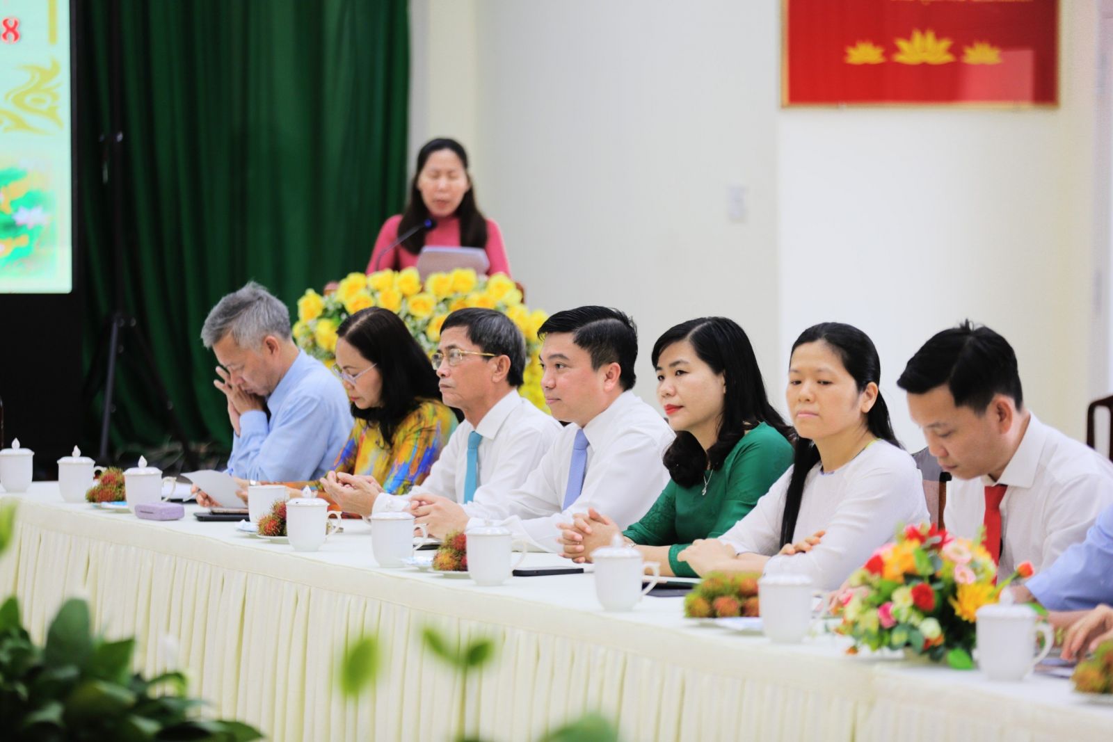 Tiếp đoàn Phật giáo có Bà Nguyễn Thị Nga – Phó bí thư Thường trực Huyện ủy, Chủ tịch HĐND huyện; Bà Vũ Thị Minh Châu – Phó bí thư Huyện ủy, Chủ tịch UBND huyện, Bà Lưu Thị Ngọc Quế - HUV - PCT HĐND huyện, ông Đào Xuân Hồng - HUV - CT UB MTTQ Việt Nam huyện, cùng các ông, bà là Ủy viên Ban Thường vụ Huyện ủy, lãnh đạo các ban Đảng, Văn phòng huyện ủy; Văn phòng HĐND-UBND huyện; Công an huyện, Phòng Nội vụ, Phòng Tài nguyên - Môi trường.Trung tâm VHTT-TT huyện dự, ghi hình và đưa tin.