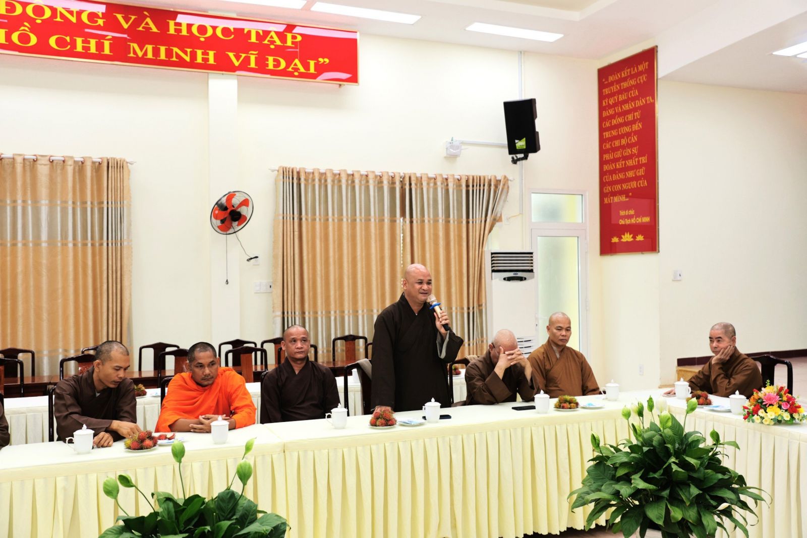 Đại diện Ban Trị sự Phật giáo huyện, Thượng toạ Thích Hạnh Đạt đã thông tin đến lãnh đạo huyện về các công tác phật sự trong những tháng đầu năm, chương trình hoạt động trong thời gian tới, đặc biệt là đại lễ Phật Đản kỷ niệm lần thư 2648 đức Thích Ca Mâu Ni Đản Sanh, An cư kiết hạ sắp tới.