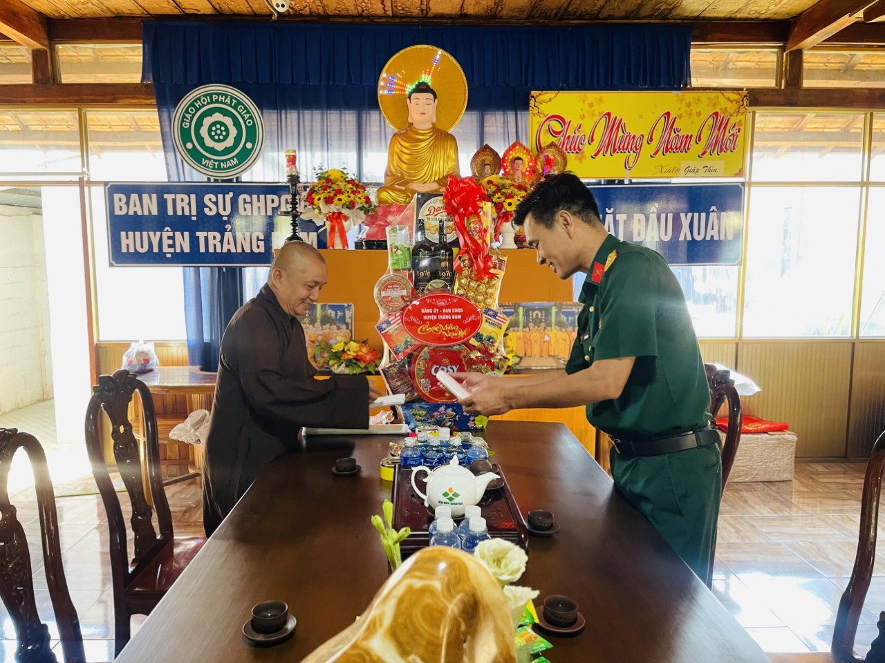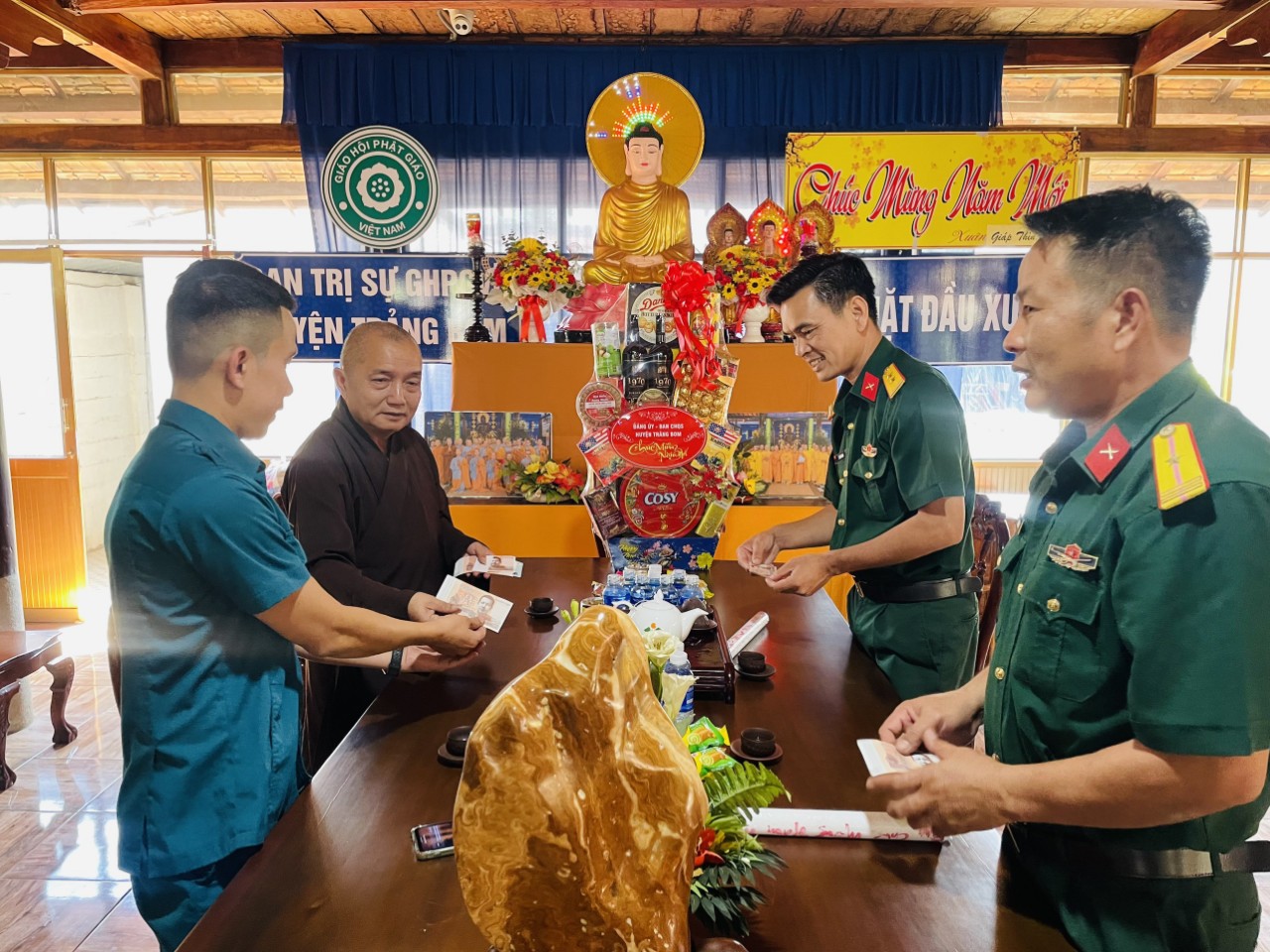 chiều cùng ngày, ban chỉ huy quân sự huyện cũng đến thăm và chúc tết cổ truền Giáp Thìn - 2024.