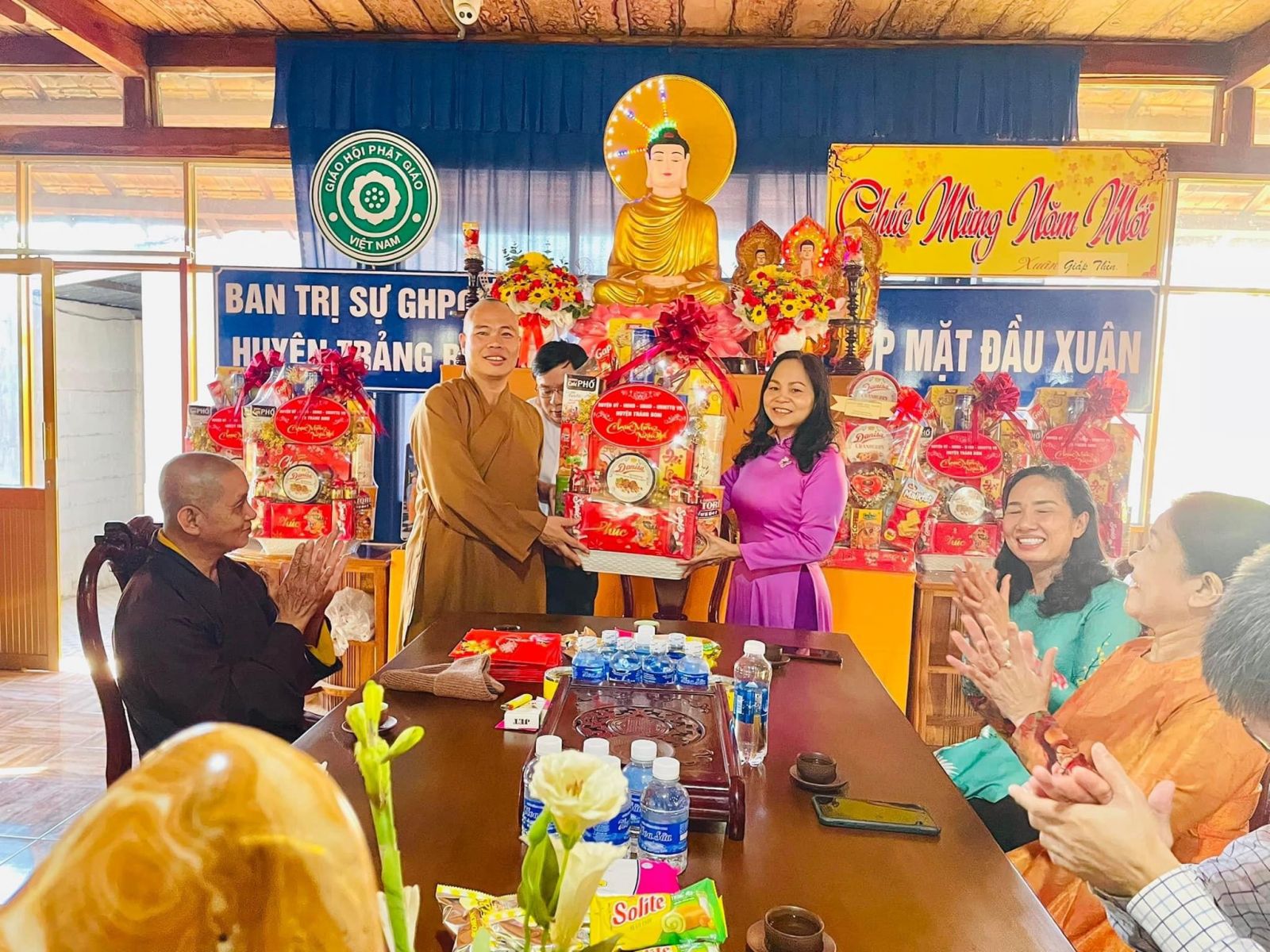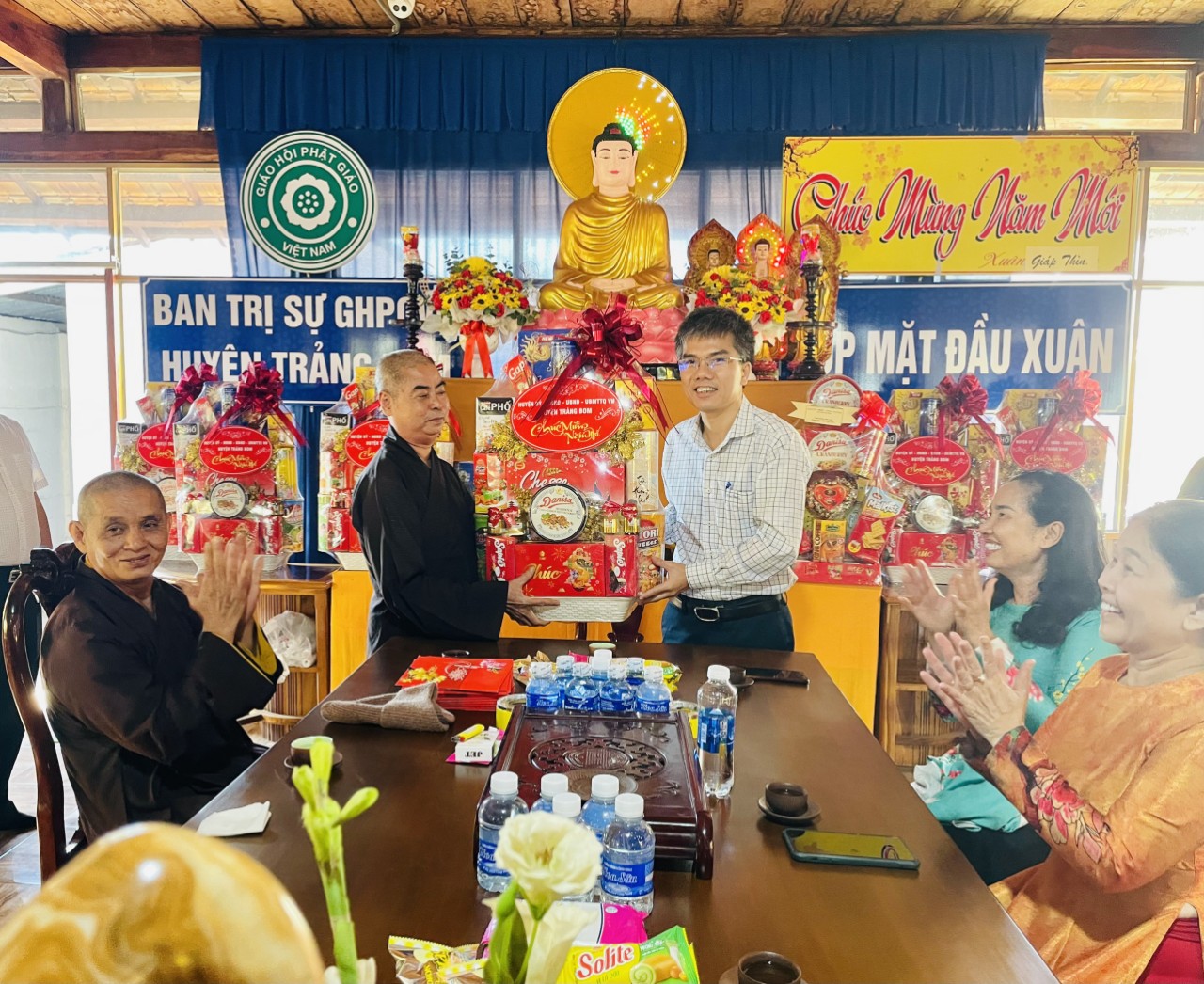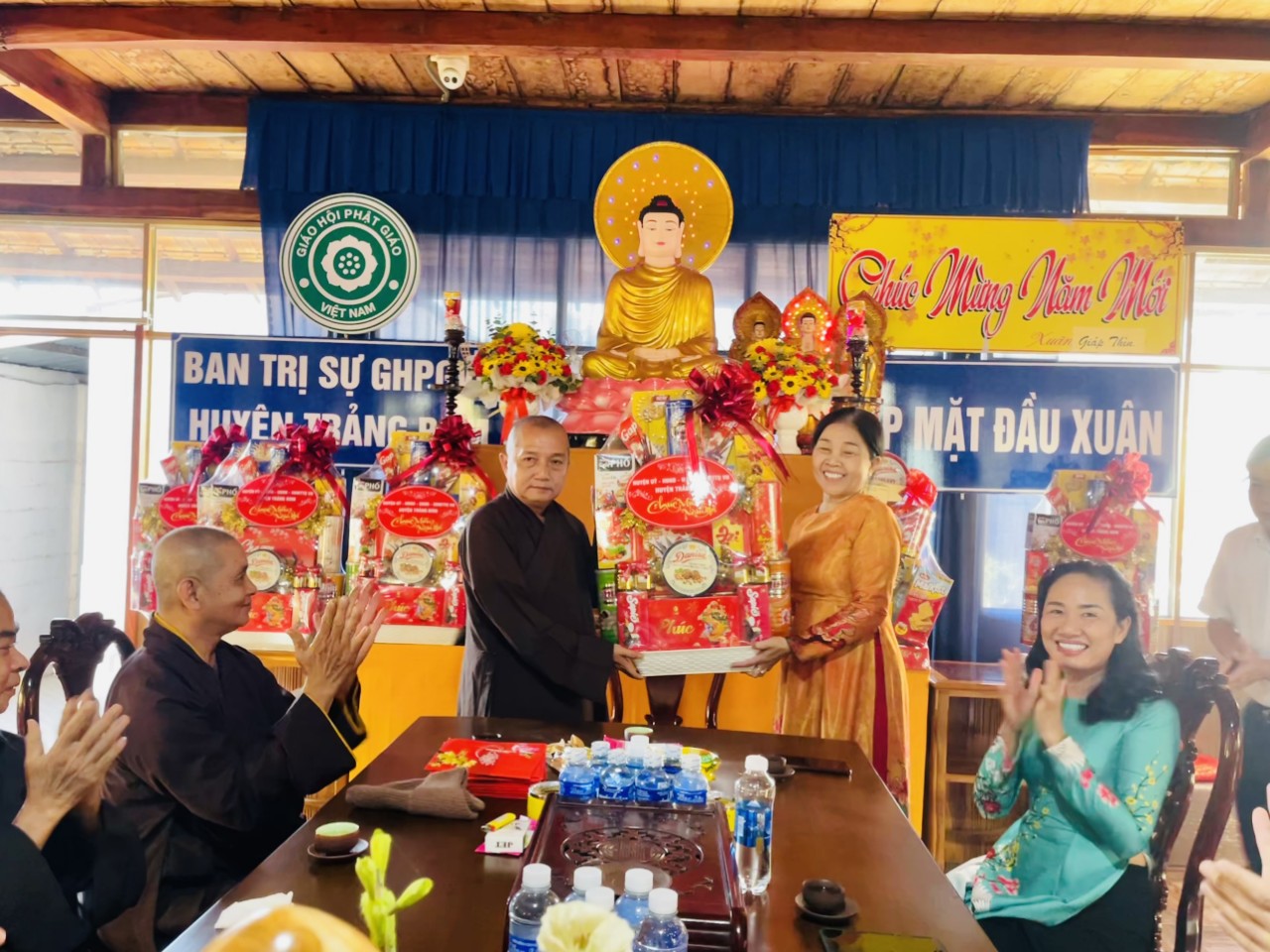 Sau lời chúc xuân của quý vị trong đoàn Huyện Uỷ, TT Thích Minh Trì thay mặt cho Phật Giáo huyện Trảng Bom, gửi lời cảm ơn chân thành đến quý vị lãnh đạo Huyện Uỷ, HĐND, UBND, UBMTTQ Huyện, Công An, Phòng Nội huyện Trảng Bom và các cơ quan trực thuộc cấp huyện và xã nhà. Hằng năm các kỳ lễ lớn của Phật Giáo và Tết cổ truyền, quý vị lãnh đạo huyện và xã nhà, đều ưu ái có sự quan tâm thăm hỏi ân cần, tạo điều kiện cho tăng ni và tín đồ phật tử ổn định cơ sở để có nơi tu tập, đặc biệt là đồng hành cùng tăng ni và phật tử trong việc hỗ trợ an sinh, công tác từ thiện xã hội.