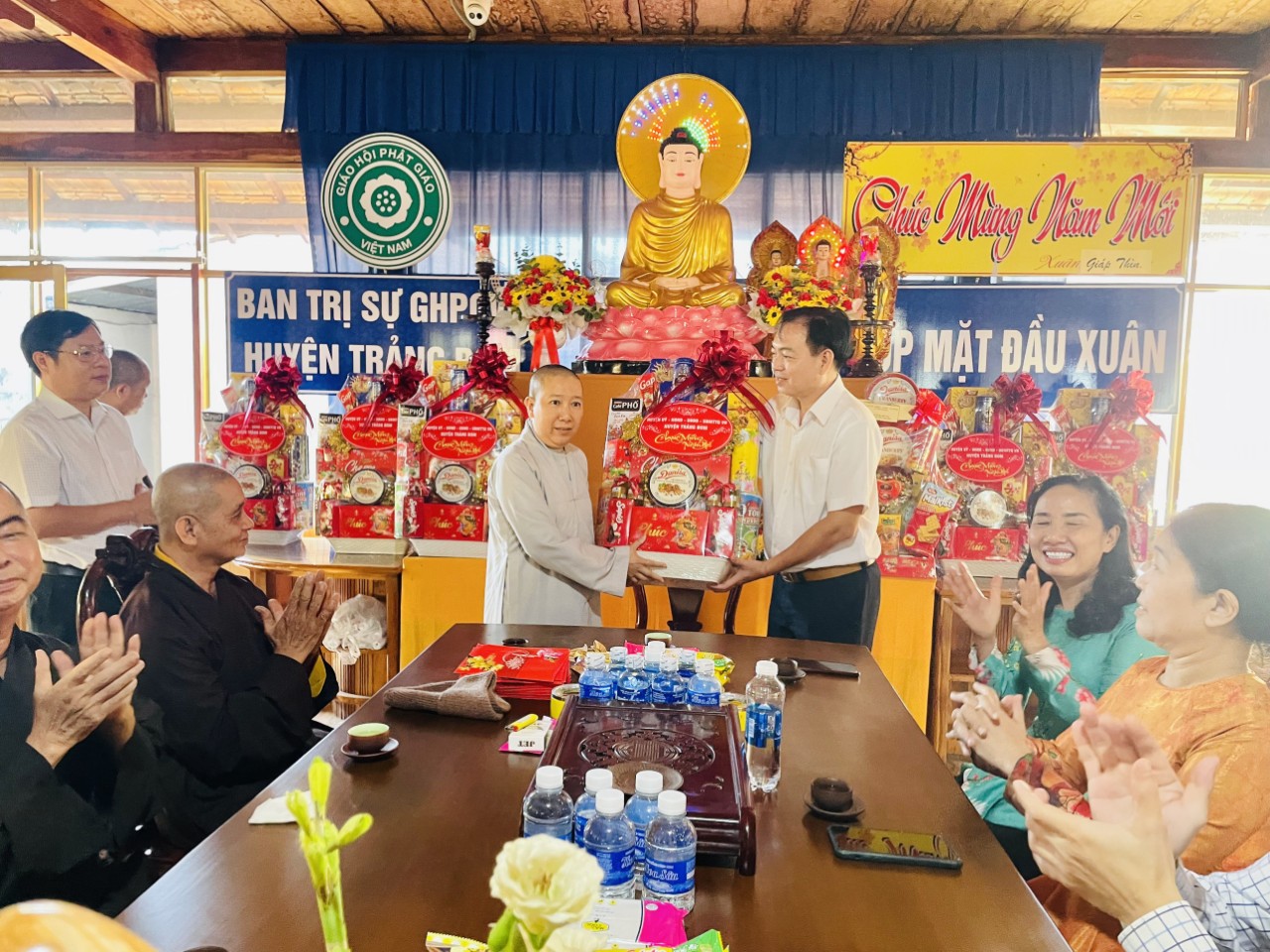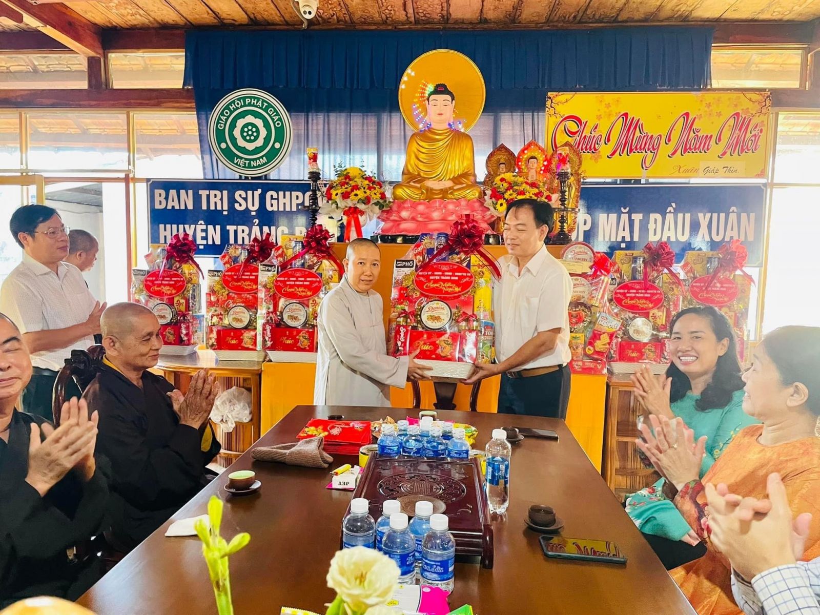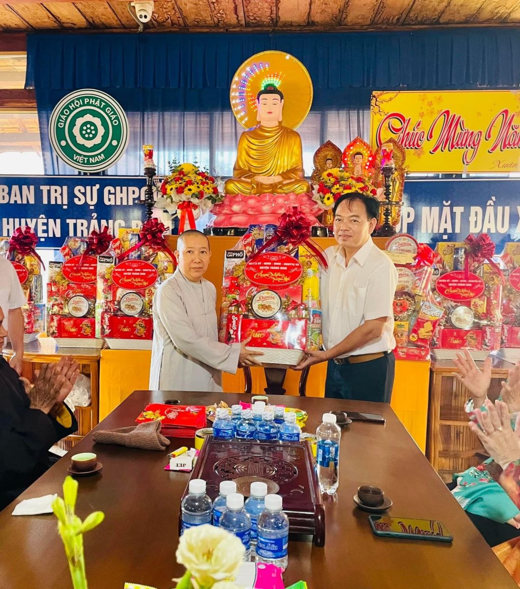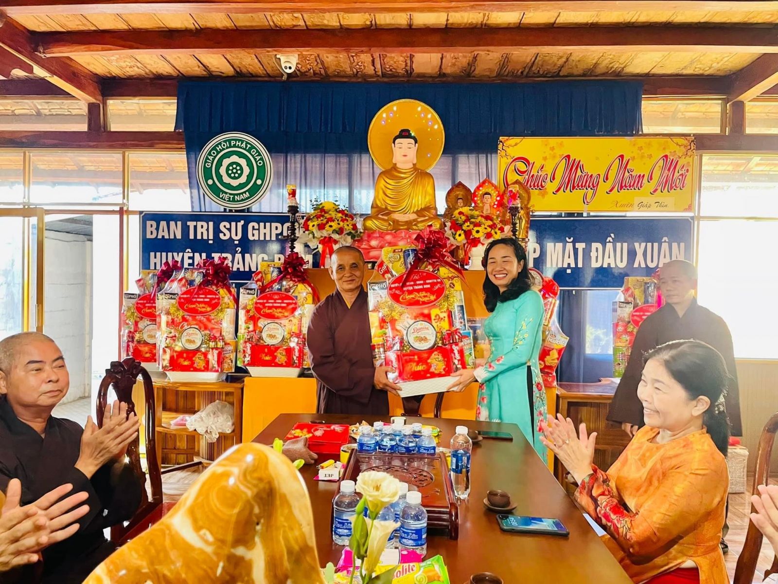 Sau lời chúc xuân của quý vị trong đoàn Huyện Uỷ, TT Thích Minh Trì thay mặt cho Phật Giáo huyện Trảng Bom, gửi lời cảm ơn chân thành đến quý vị lãnh đạo Huyện Uỷ, HĐND, UBND, UBMTTQ Huyện, Công An, Phòng Nội huyện Trảng Bom và các cơ quan trực thuộc cấp huyện và xã nhà. Hằng năm các kỳ lễ lớn của Phật Giáo và Tết cổ truyền, quý vị lãnh đạo huyện và xã nhà, đều ưu ái có sự quan tâm thăm hỏi ân cần, tạo điều kiện cho tăng ni và tín đồ phật tử ổn định cơ sở để có nơi tu tập, đặc biệt là đồng hành cùng tăng ni và phật tử trong việc hỗ trợ an sinh, công tác từ thiện xã hội.