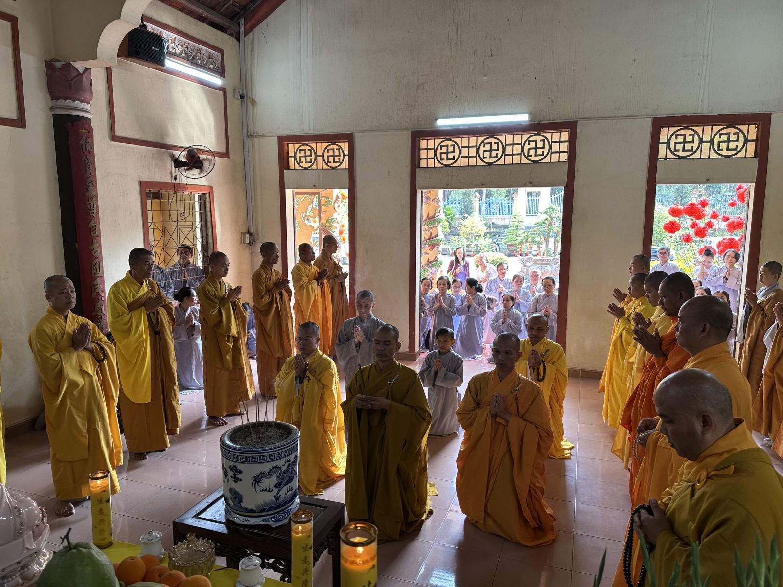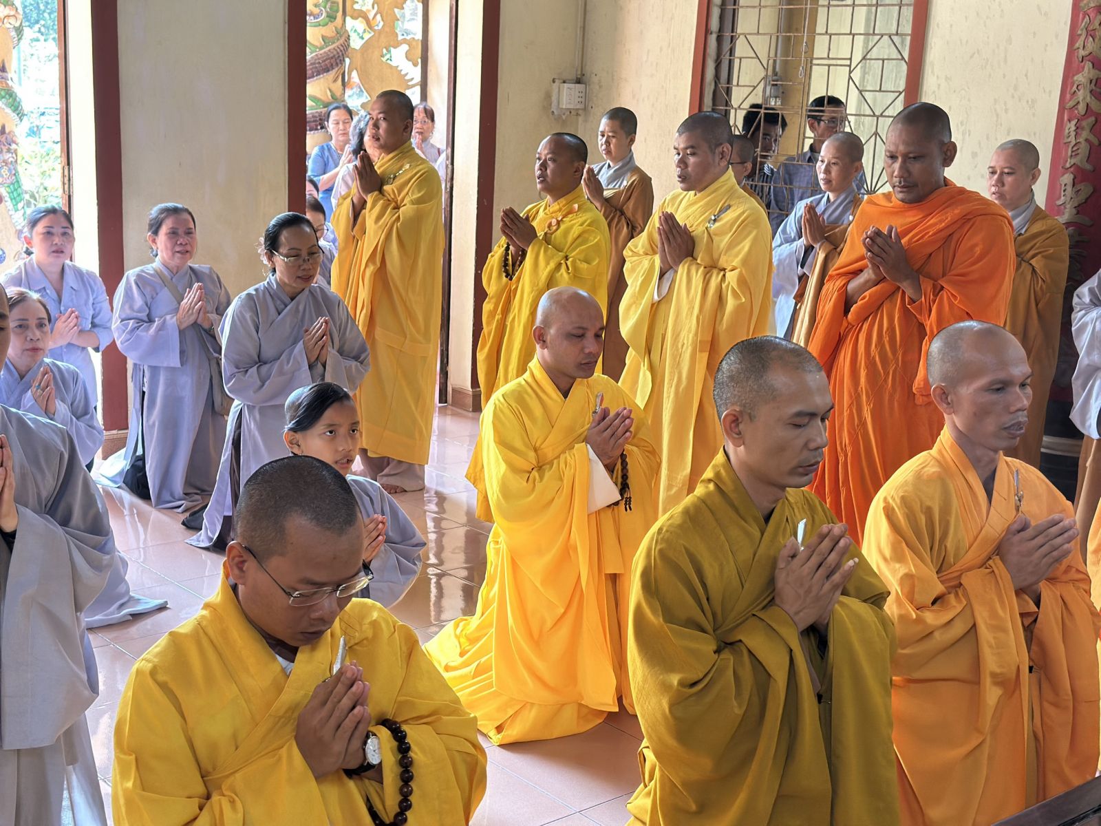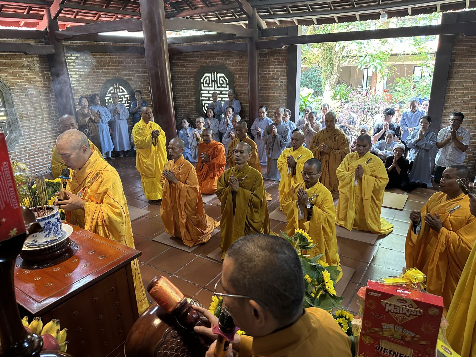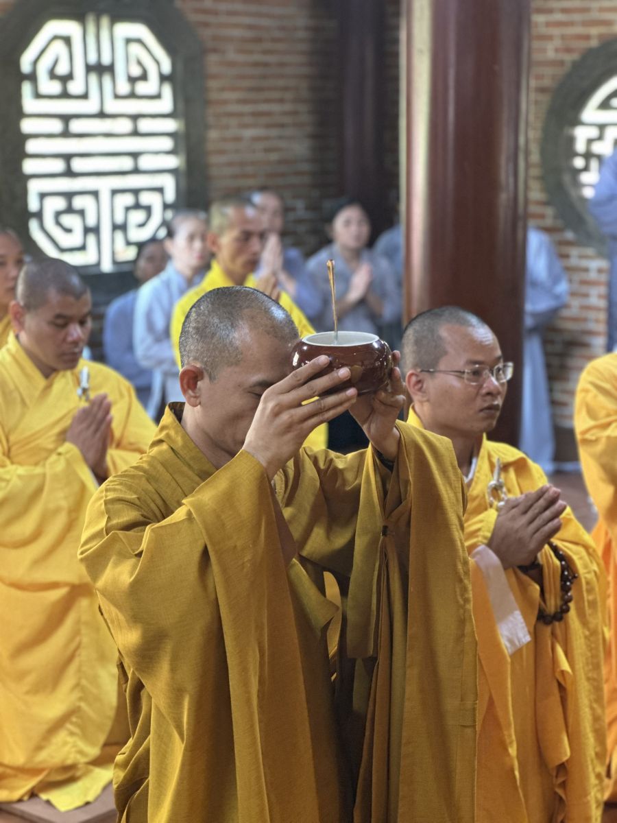 Buổi lễ trang nghiêm với nghi thức truyền thống của thiền môn. Hòa thượng Thích Thiện Hoằng – Chứng minh Ban Trị sự GHPGVN huyện Xuân Lộc, Viện chủ Chùa Linh Hòa; cùng với TT. Thích Minh Trì – Phó Ban Trị sự tỉnh, Trưởng Ban Trị sự GHPGVN huyện Trảng Bom; TT. Thích Chí Vân – Phó trưởng Ban Trị sự GHPGVN huyện Trảng Bom; cùng chư Tôn đức Tăng Ni đã niêm hương đảnh lễ tam bảo chứng minh cho pháp sự được trang nghiêm.