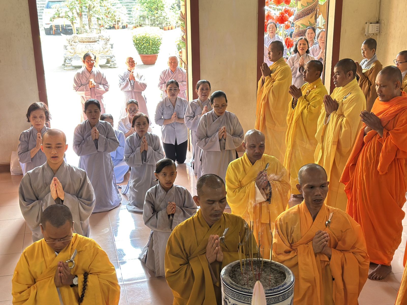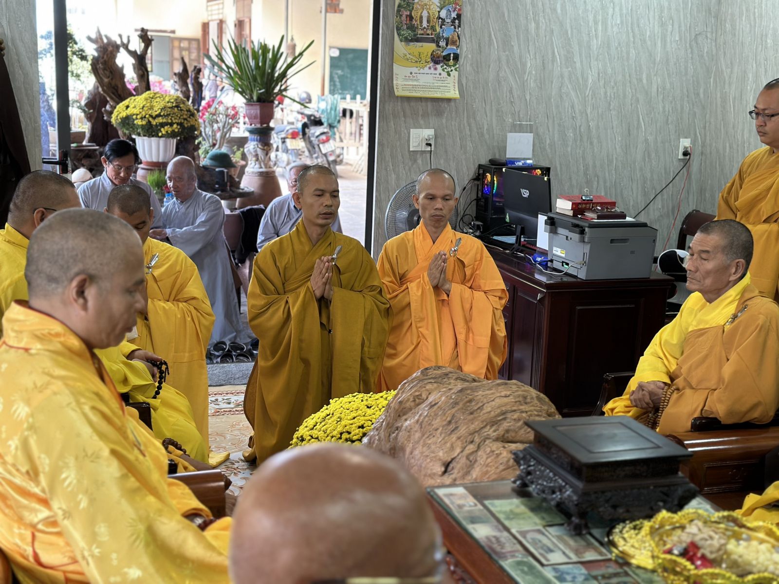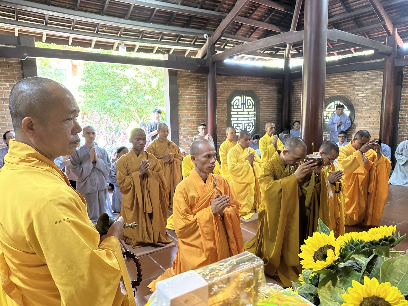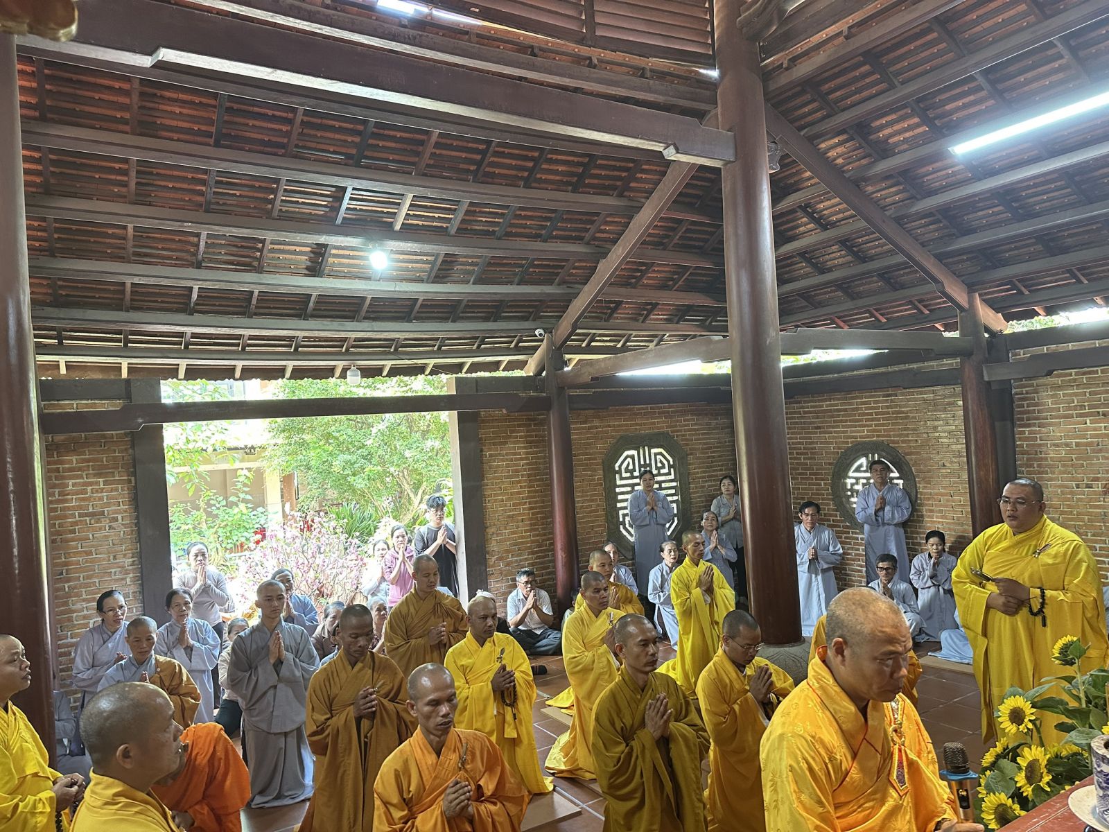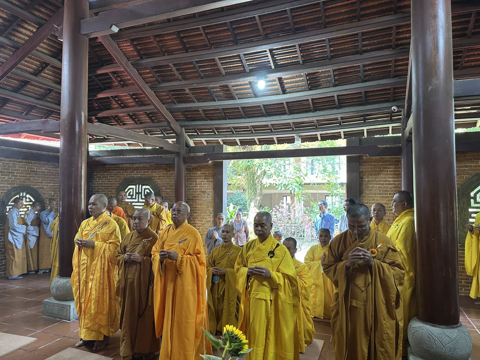 Buổi lễ trang nghiêm với nghi thức truyền thống của thiền môn. Hòa thượng Thích Thiện Hoằng – Chứng minh Ban Trị sự GHPGVN huyện Xuân Lộc, Viện chủ Chùa Linh Hòa; cùng với TT. Thích Minh Trì – Phó Ban Trị sự tỉnh, Trưởng Ban Trị sự GHPGVN huyện Trảng Bom; TT. Thích Chí Vân – Phó trưởng Ban Trị sự GHPGVN huyện Trảng Bom; cùng chư Tôn đức Tăng Ni đã niêm hương đảnh lễ tam bảo chứng minh cho pháp sự được trang nghiêm.