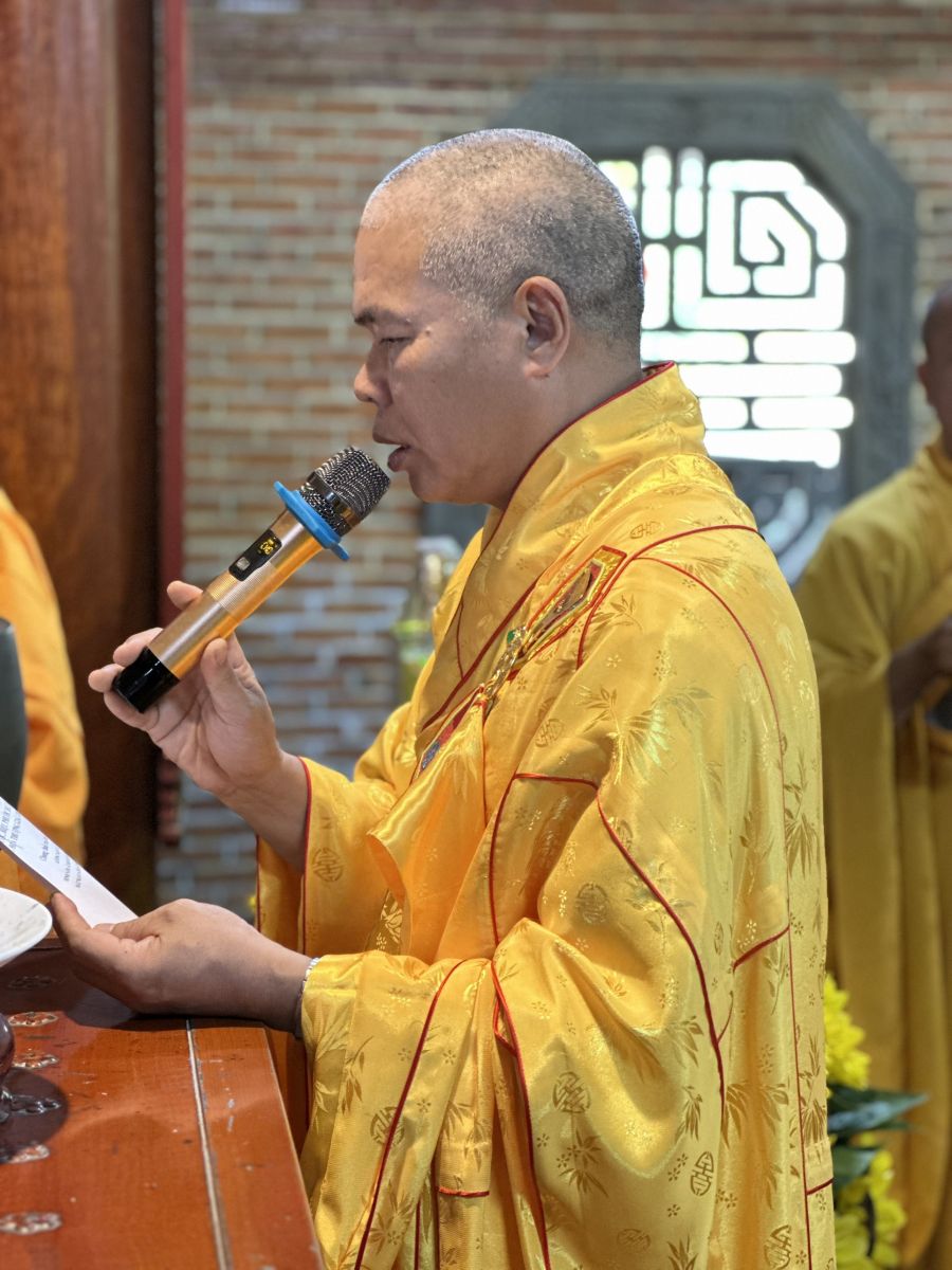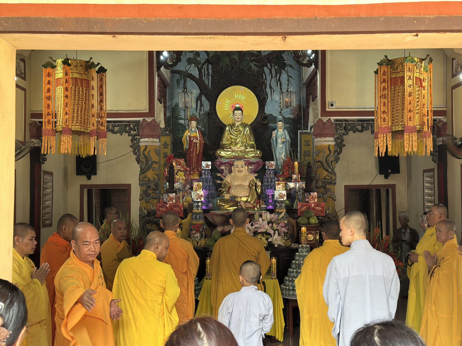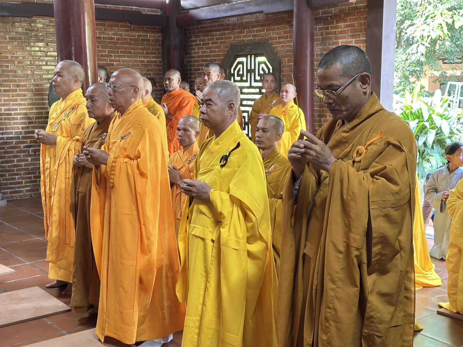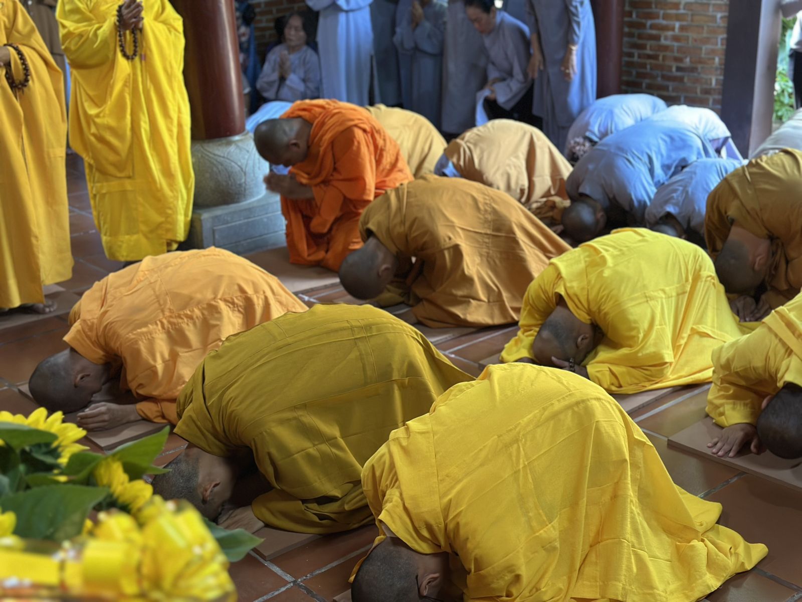 Buổi lễ trang nghiêm với nghi thức truyền thống của thiền môn. Hòa thượng Thích Thiện Hoằng – Chứng minh Ban Trị sự GHPGVN huyện Xuân Lộc, Viện chủ Chùa Linh Hòa; cùng với TT. Thích Minh Trì – Phó Ban Trị sự tỉnh, Trưởng Ban Trị sự GHPGVN huyện Trảng Bom; TT. Thích Chí Vân – Phó trưởng Ban Trị sự GHPGVN huyện Trảng Bom; cùng chư Tôn đức Tăng Ni đã niêm hương đảnh lễ tam bảo chứng minh cho pháp sự được trang nghiêm.