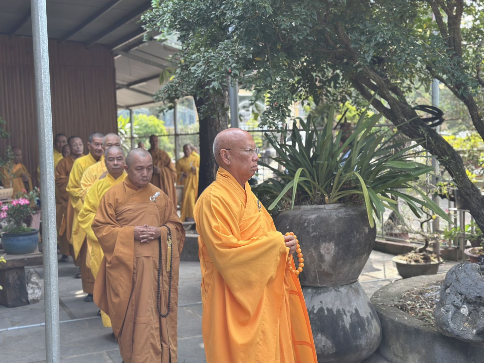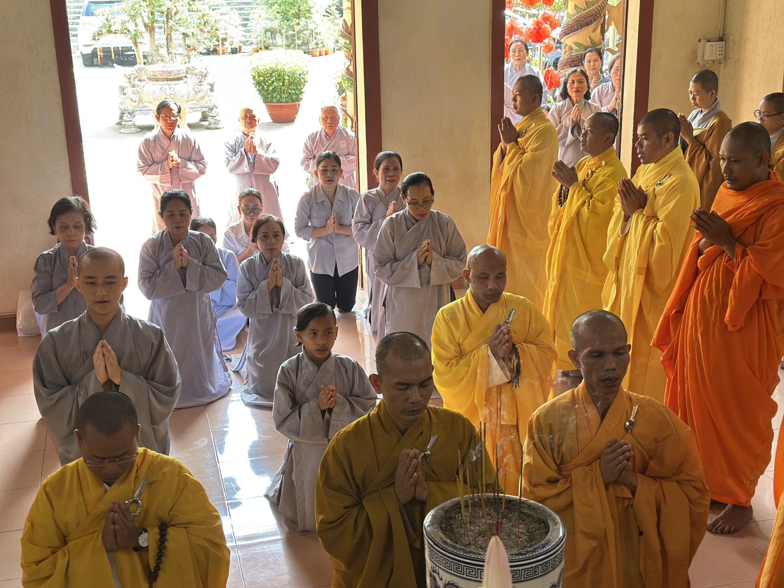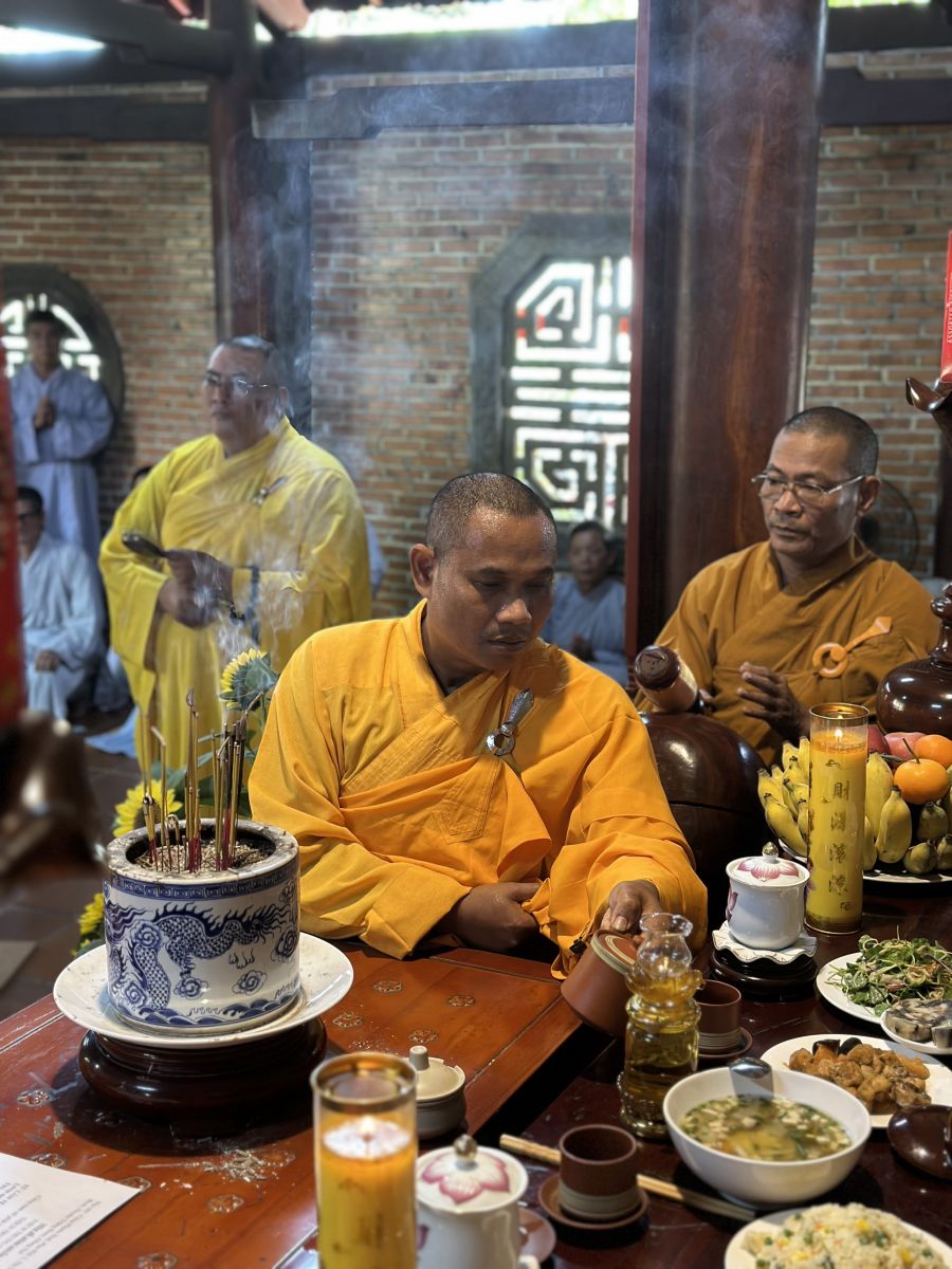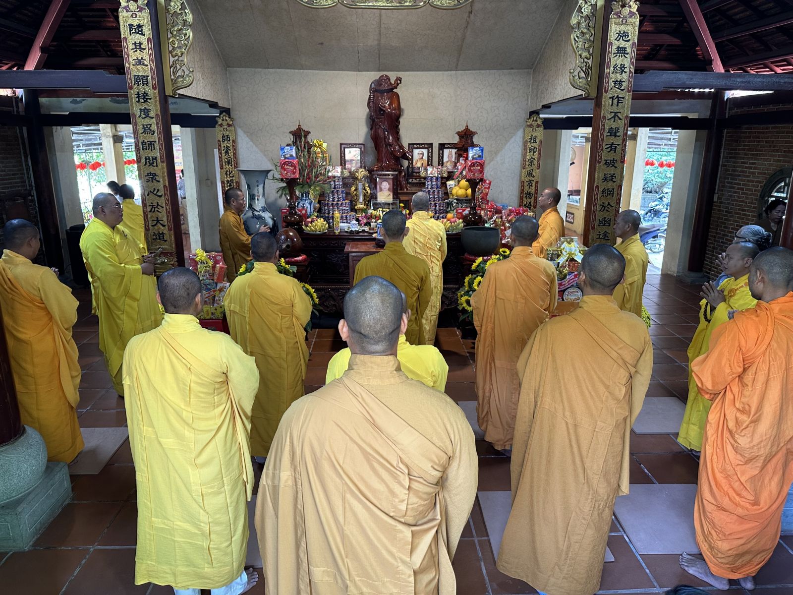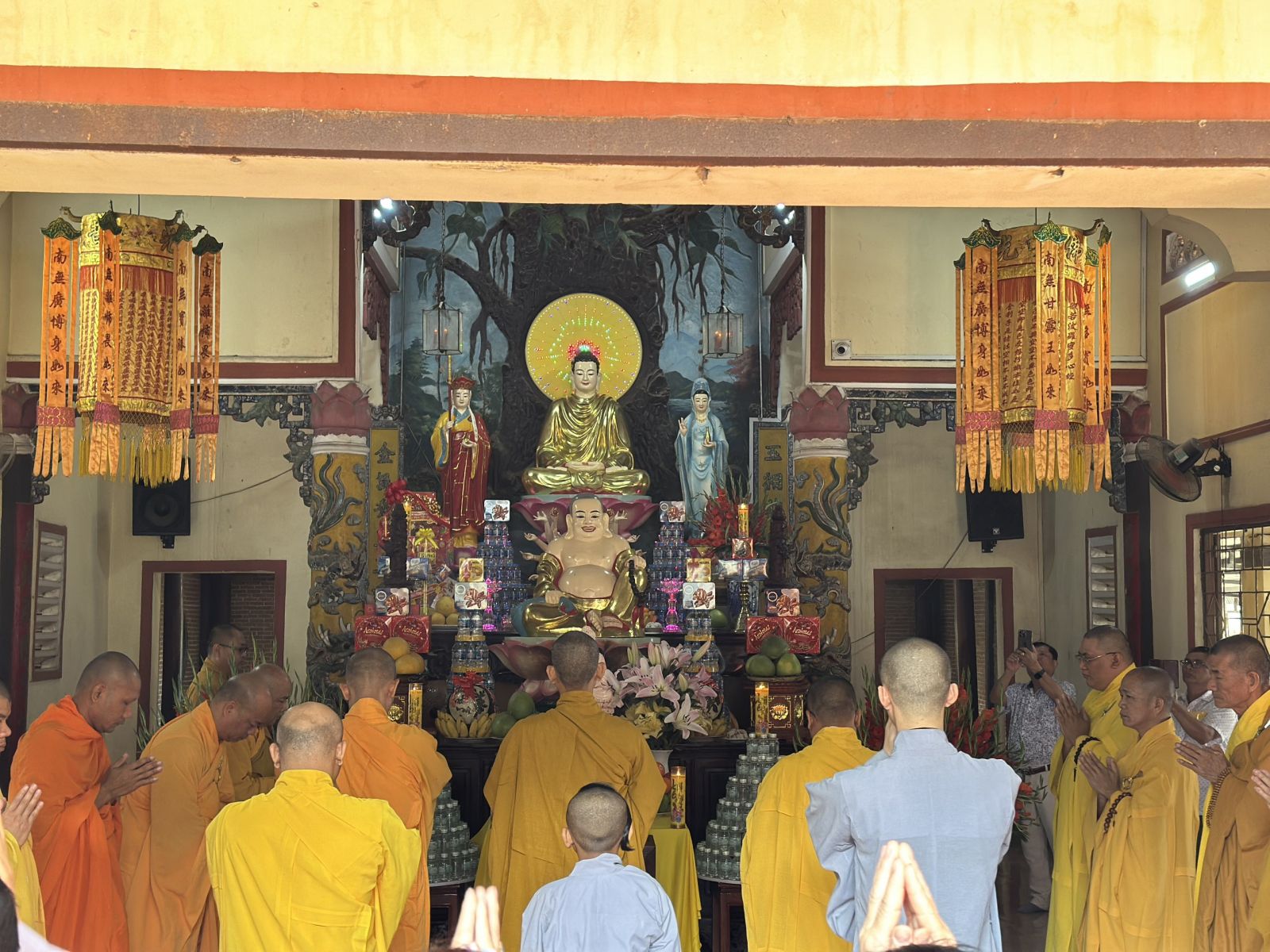 Buổi lễ trang nghiêm với nghi thức truyền thống của thiền môn. Hòa thượng Thích Thiện Hoằng – Chứng minh Ban Trị sự GHPGVN huyện Xuân Lộc, Viện chủ Chùa Linh Hòa; cùng với TT. Thích Minh Trì – Phó Ban Trị sự tỉnh, Trưởng Ban Trị sự GHPGVN huyện Trảng Bom; TT. Thích Chí Vân – Phó trưởng Ban Trị sự GHPGVN huyện Trảng Bom; cùng chư Tôn đức Tăng Ni đã niêm hương đảnh lễ tam bảo chứng minh cho pháp sự được trang nghiêm.