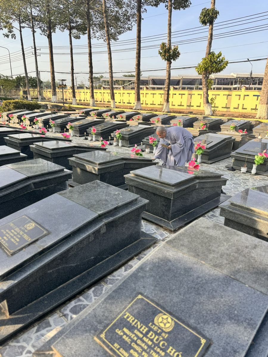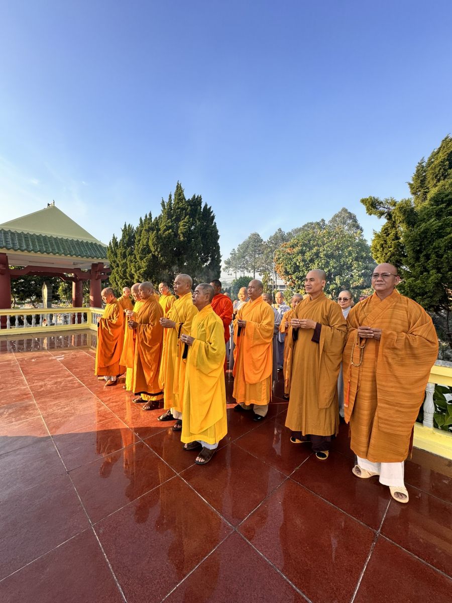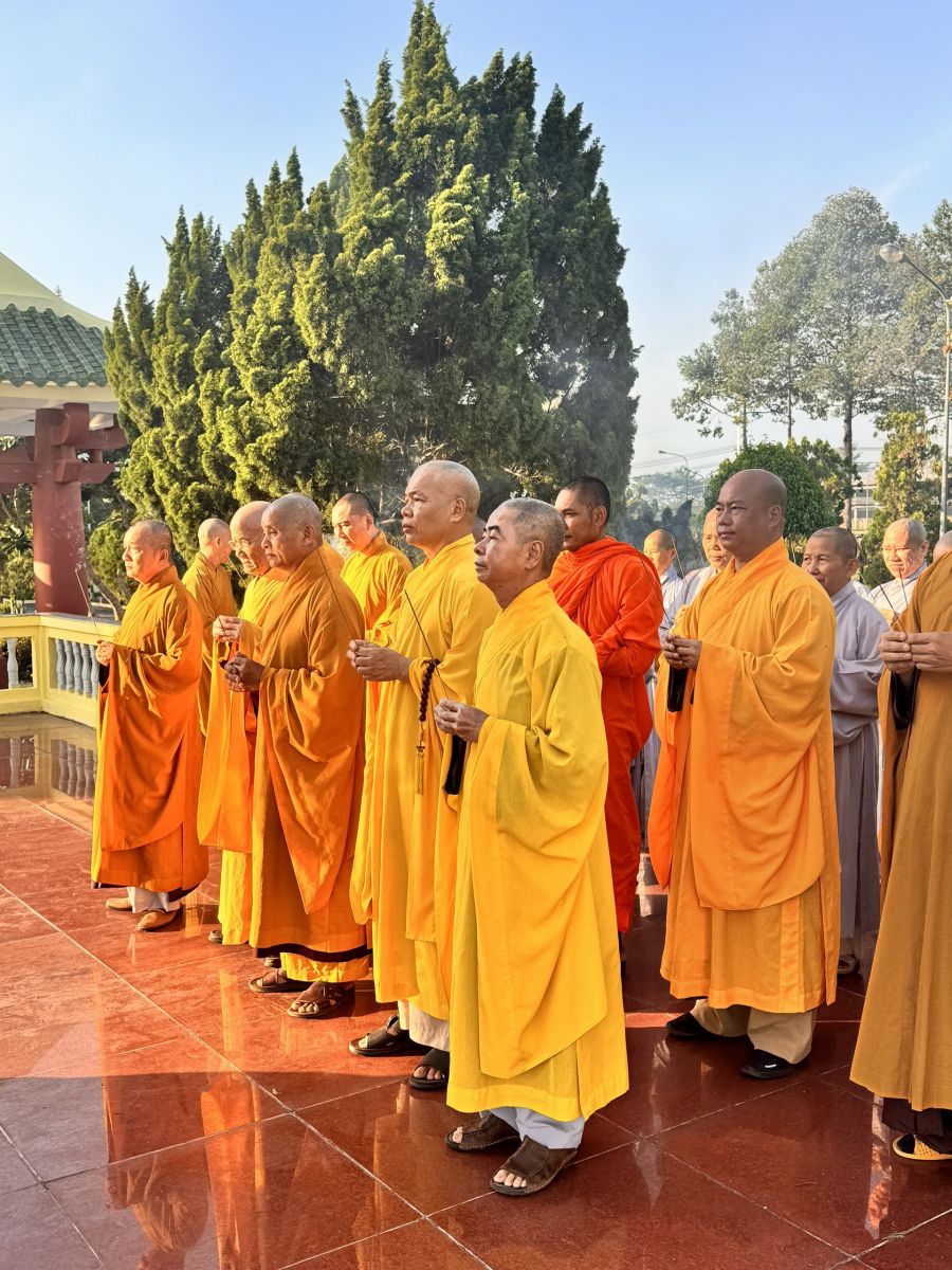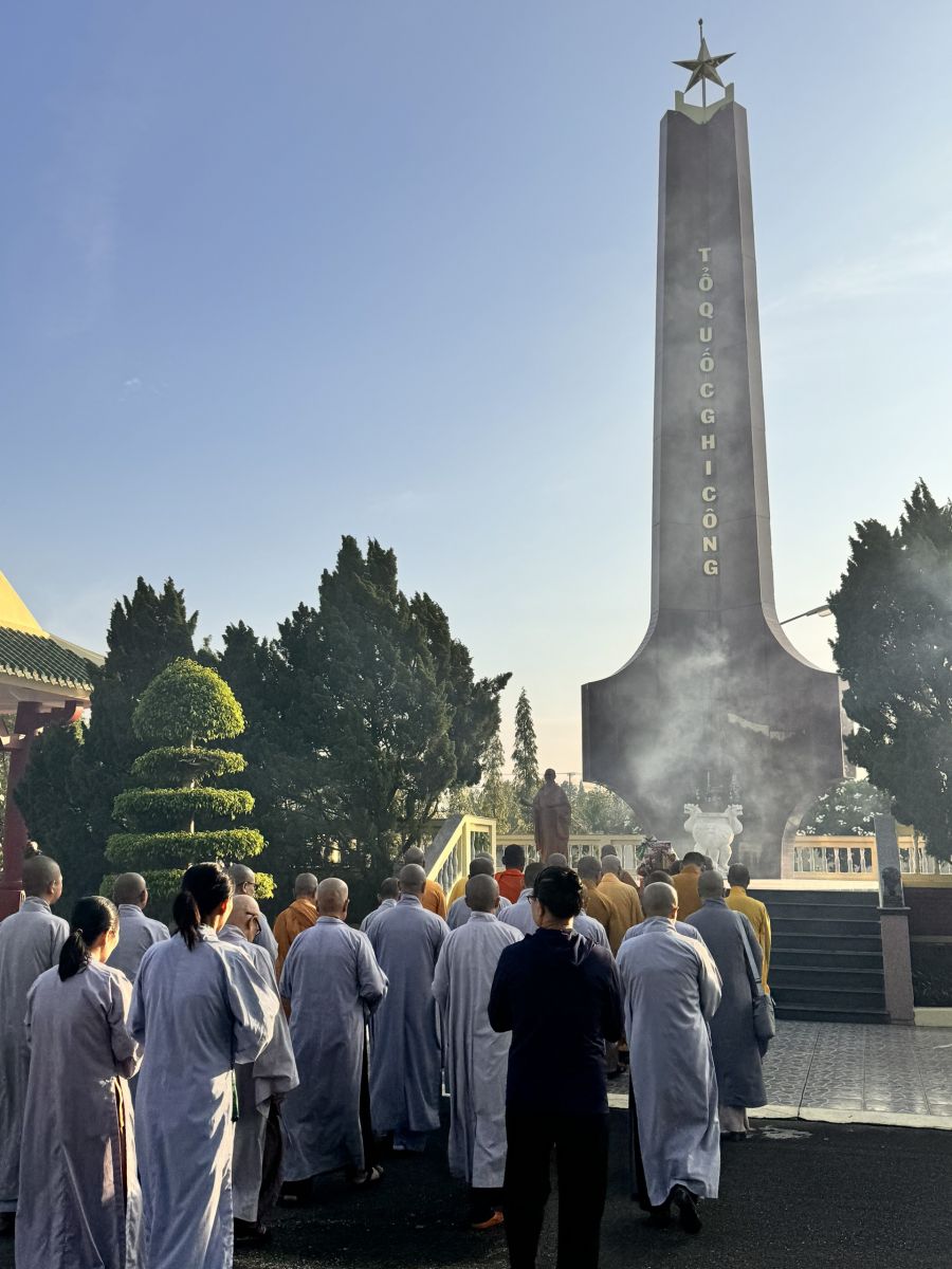 Dẫn đoàn có Thượng toạ Thích Minh Trì – Phó BTS tỉnh, Trưởng Ban trị sự GHPGVN huyện Trảng Bom. Chư tôn đức tăng - ni thành viên Ban trị sự, trụ trì các cơ sở và phật tử trang nghiêm vân tập trước đài liệt sỹ huyện dâng hưởng tưởng niệm chư anh hùng liệt sỹ.