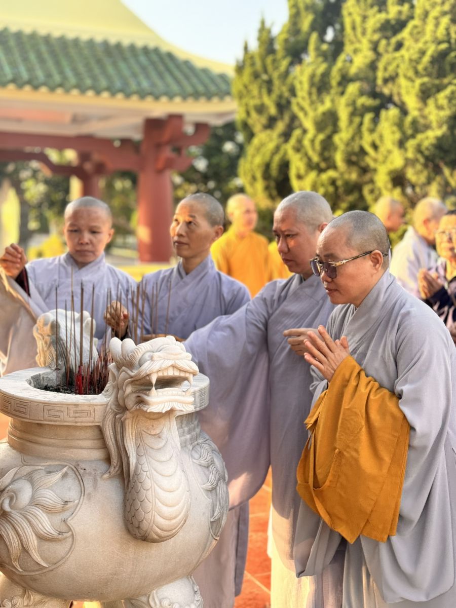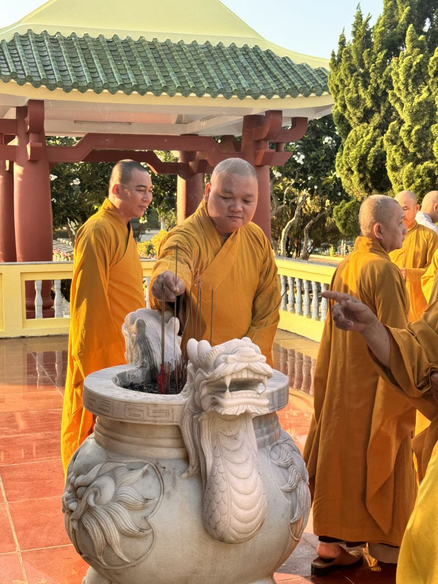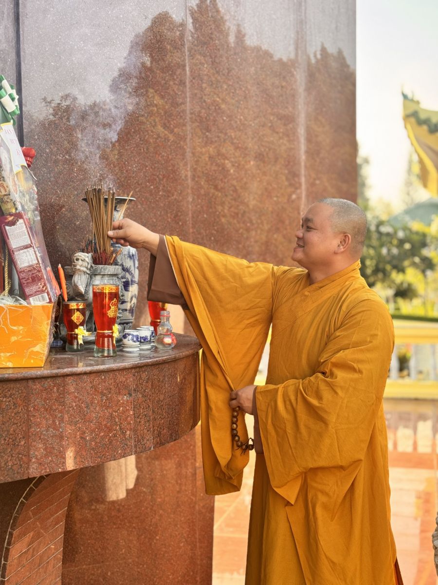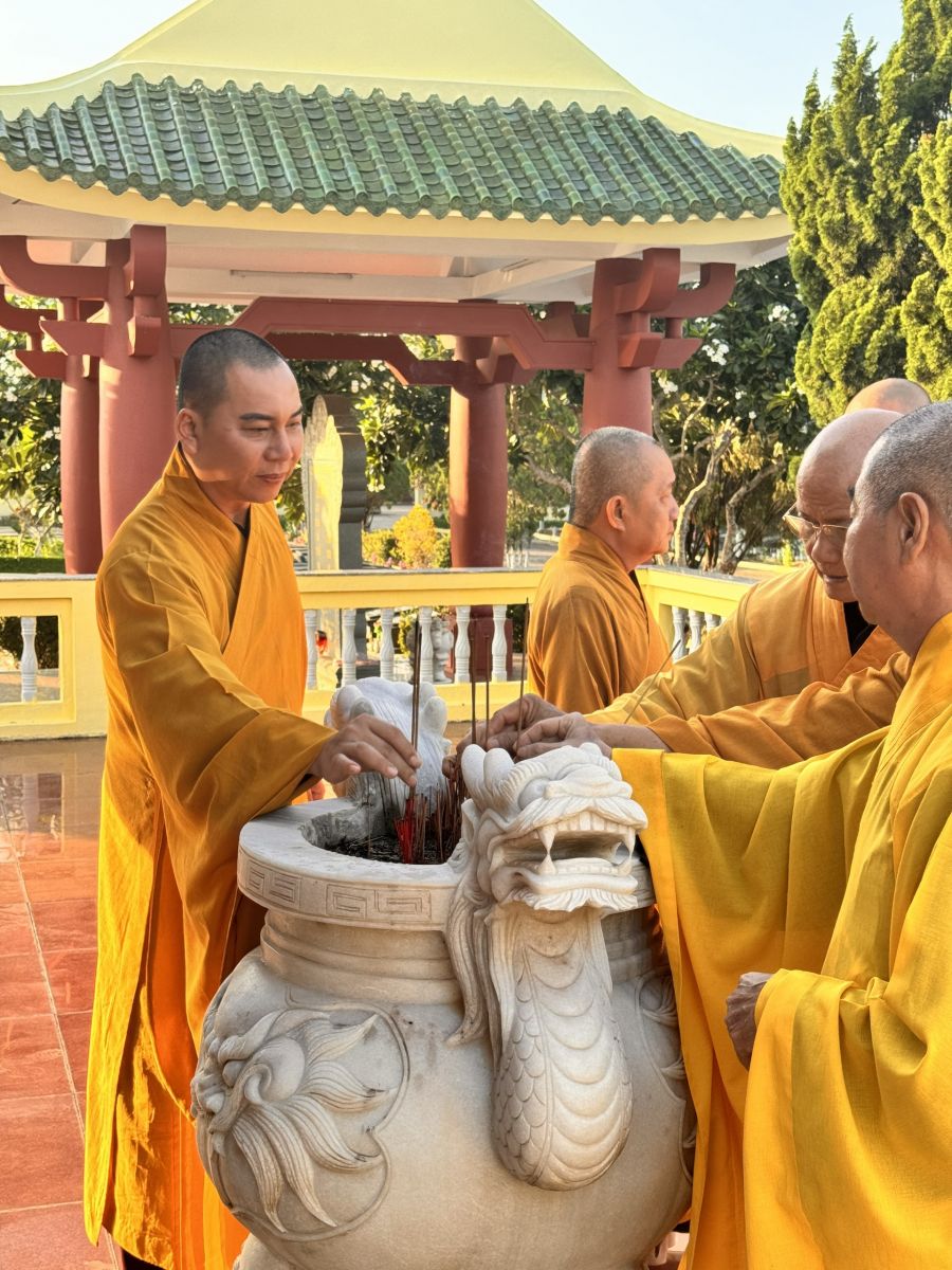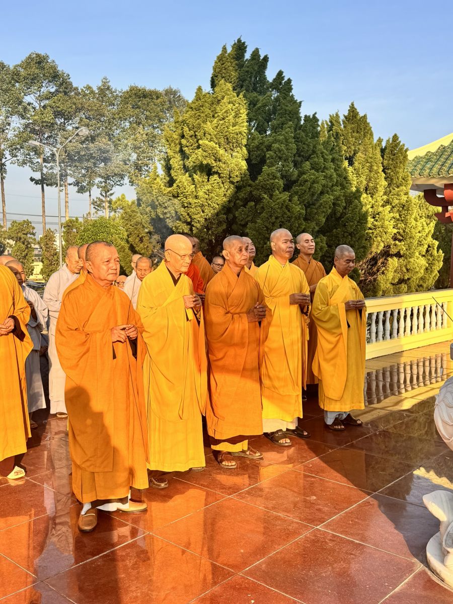Dẫn đoàn có Thượng toạ Thích Minh Trì – Phó BTS tỉnh, Trưởng Ban trị sự GHPGVN huyện Trảng Bom. Chư tôn đức tăng - ni thành viên Ban trị sự, trụ trì các cơ sở và phật tử trang nghiêm vân tập trước đài liệt sỹ huyện dâng hưởng tưởng niệm chư anh hùng liệt sỹ.