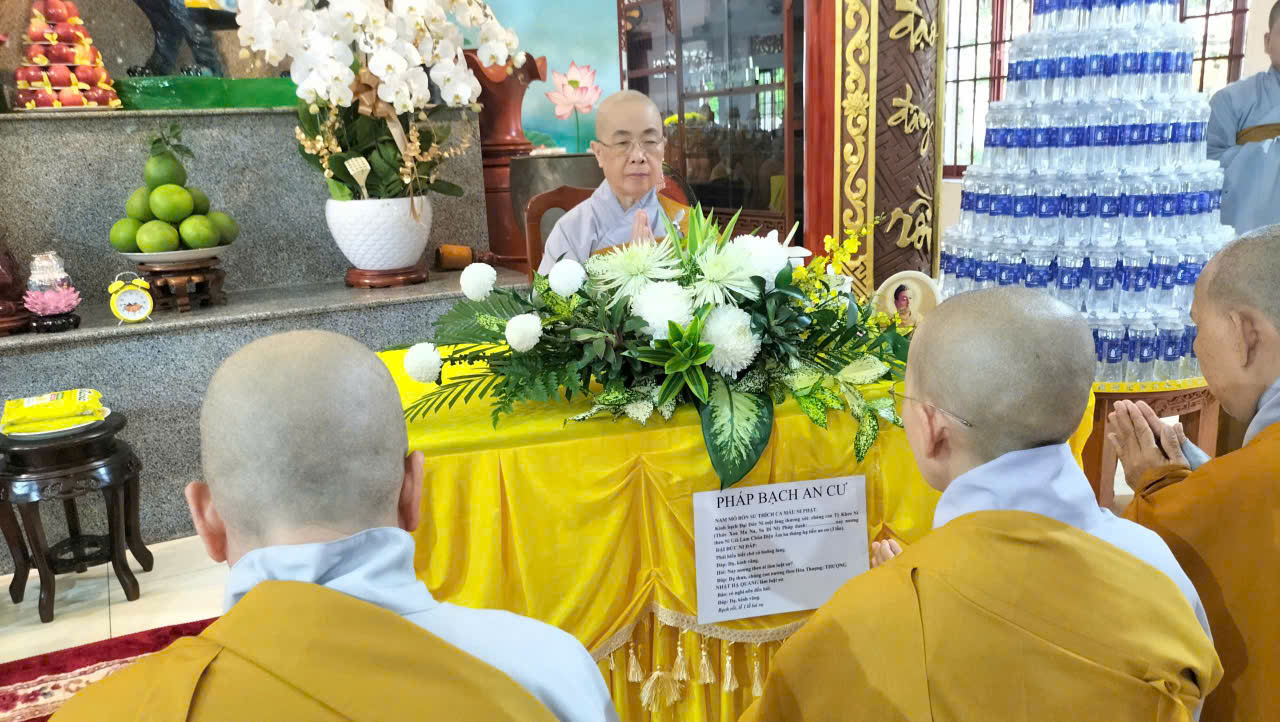 Quang lâm chứng minh trường hạ HT Thích Thiện Pháp, phó ban Trị Sự GHPGVN tỉnh Đồng Nai, Trưởng ban Trị sự GHPGVN Huyện Nhơn Trạch; HT. Thích Thiện Phát, TT Thích Đạo Viên - đồng phó ban; TT Thích Trí Huệ - Trưởng ban Nghi lễ; NS. Thích Nữ Tuệ Minh - Trưởng phân ban Ni Giới Huyện Nhơn Trạch; Cùng chư Tôn Đức Tăng Ni trụ trì các tự viện huyện Nhơn Trạch Đồng tham dự.