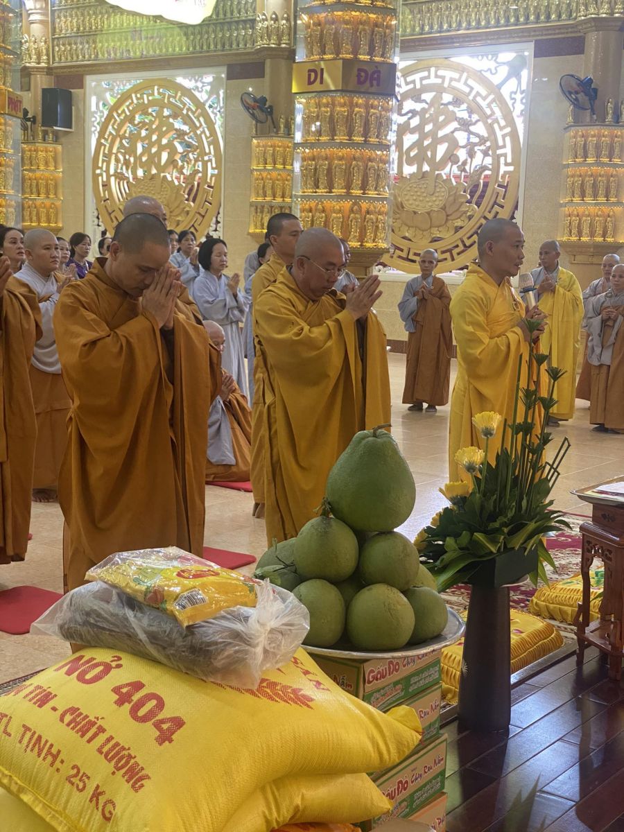 Tại tác điểm Hạ trường, Thượng Tọa trưởng đoàn đã tác bạch Khánh tuế Chư tôn đức trong ban chấp sự hạ trường, đồng thời tác bạch cúng dường tịnh tài, tịnh vật dâng lên cúng dường Chư hành giả An cư tại các điểm.