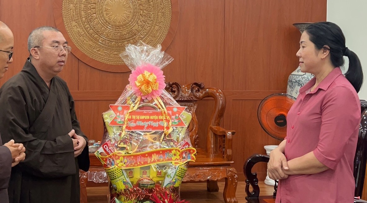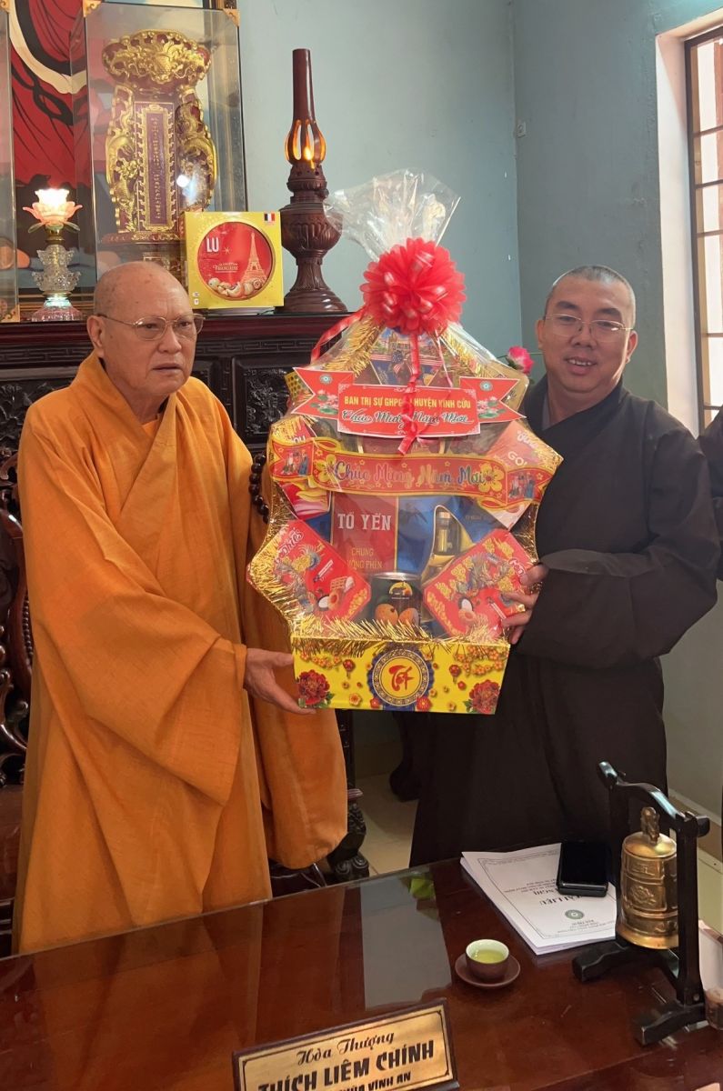 Đoàn đã trang nghiêm đến đảnh lễ và khánh tuế nhị vị Hòa thượng Thích Liêm Chính – Chứng minh Ban Trị sự tỉnh, Chứng minh Ban Trị sự GHPGVN huyện Vĩnh Cửu; Hòa thượng Thích Hải Thành - Chứng minh Ban Trị sự GHPGVN huyện Vĩnh Cửu; và Khánh tuế nhị vị Ni trưởng Chùa Vĩnh Hưng, Chùa Bửu Phước huyện Vĩnh Cửu.