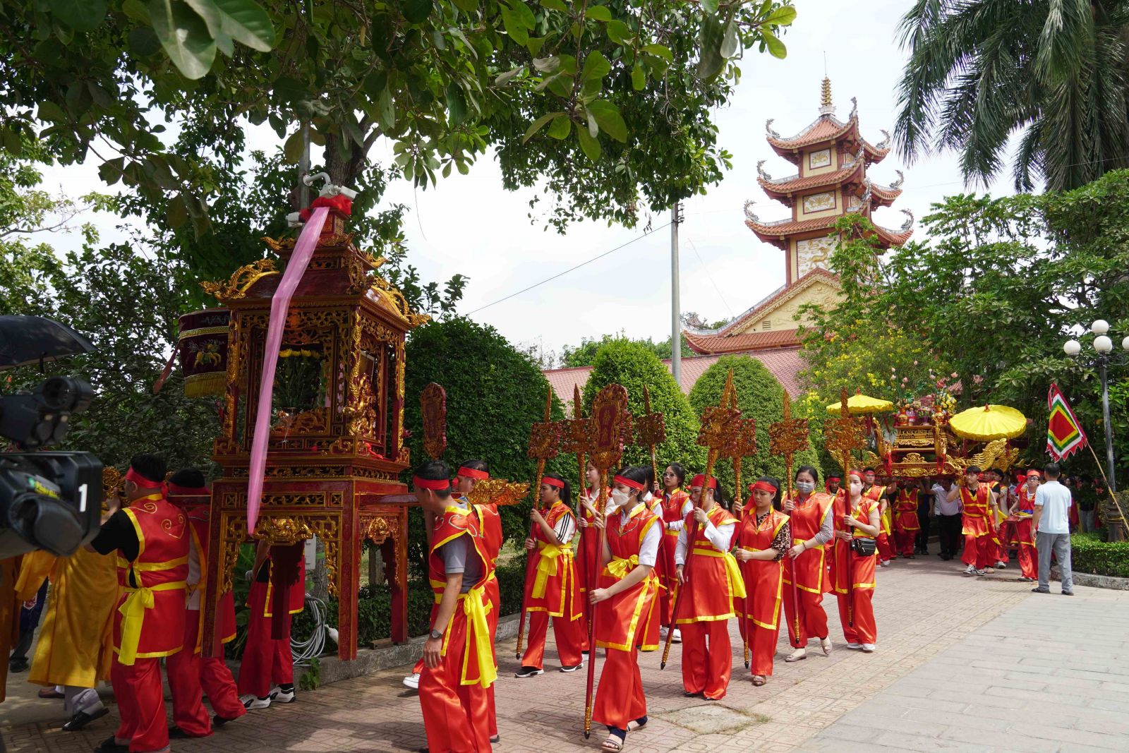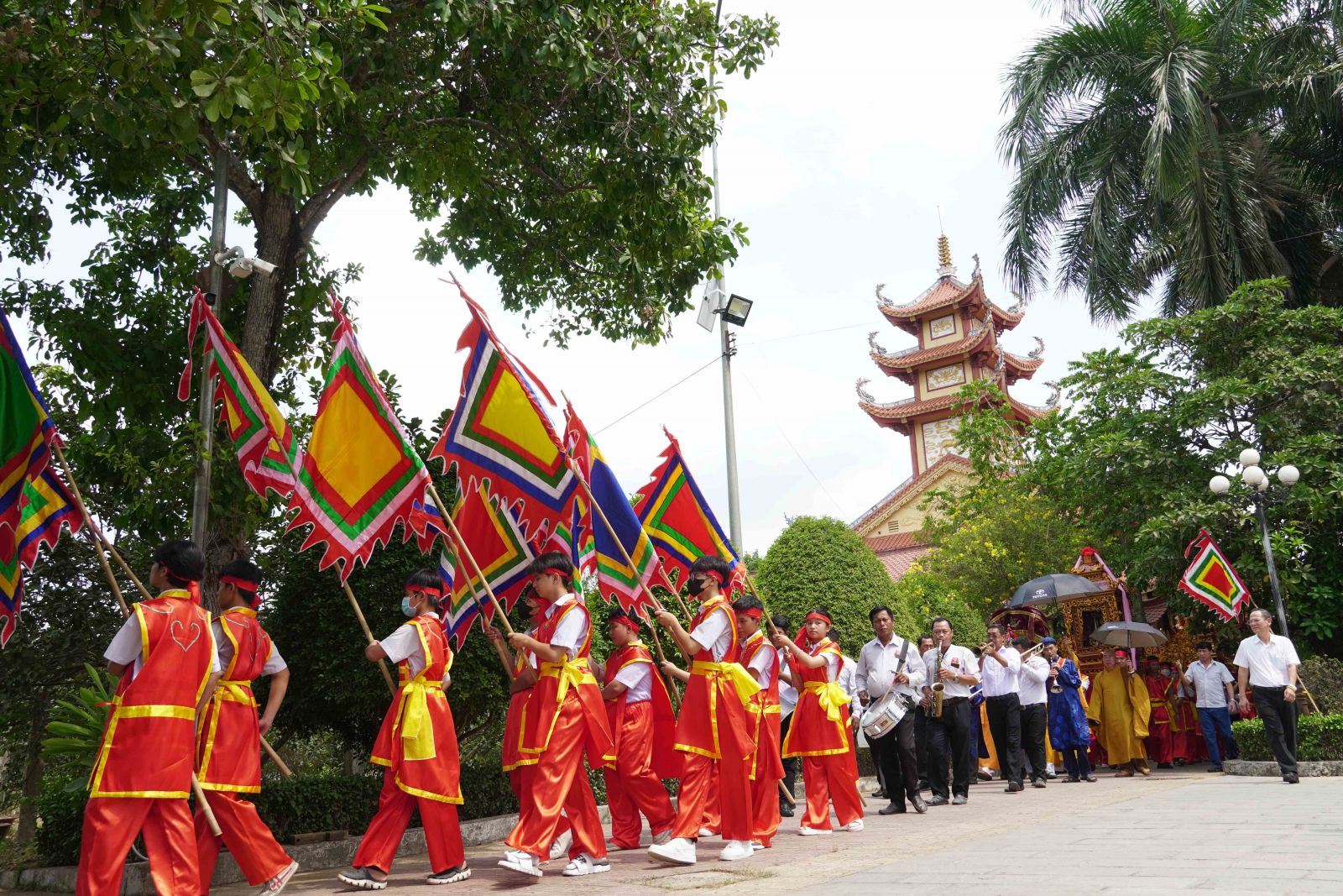 Buổi lễ trang nghiêm đón nhận lẳng hoa của TT. Thích Thiện Thuận – Trưởng Ban Trị sự GHPGVN huyện Vĩnh Cửu cùng Tăng Ni dâng lễ lên đức Vua Hùng.