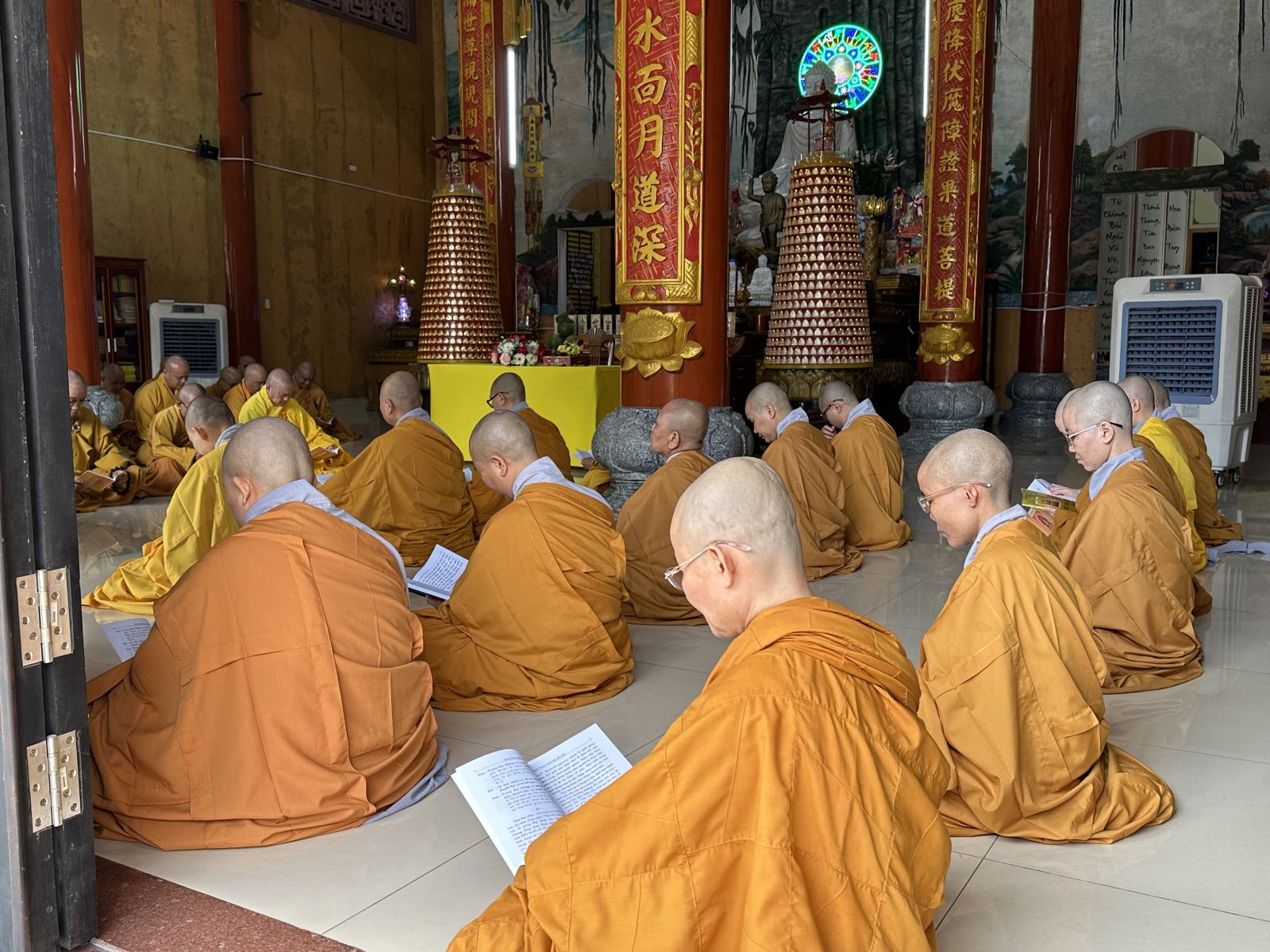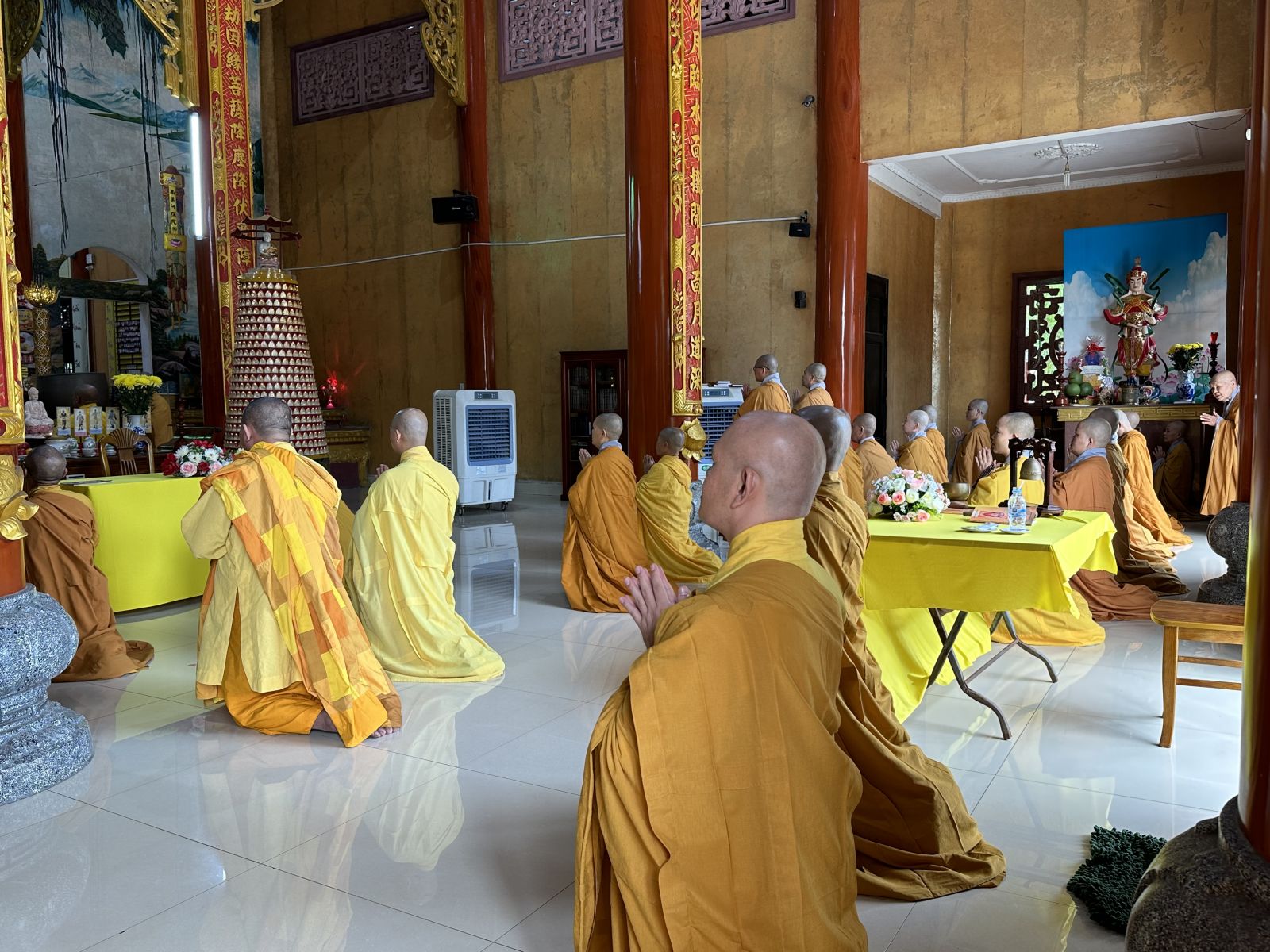 Tại chánh điện, Thượng Tọa Thích Thiện Thuận Trưởng BTS GHPGVN huyện. Đại Đức Thích Kiến Tịnh, phó trưởng ban thường trực BTS GHPGVN huyện. Đại Đức Thích Minh Đạt, Phó ban kiêm trưởng ban Pháp chế GHPGVN huyện. Cùng chư đức Tăng Ni thường trực trong BTS GHPGVN huyện, chư hành giả an cư trong địa bàn huyện Vĩnh Cửu, đã niêm hương bạch Phật, phát lồ sám hối theo pháp.