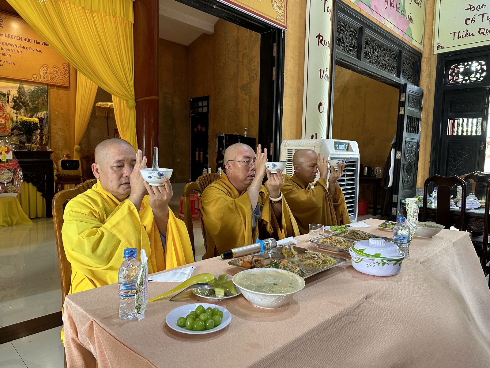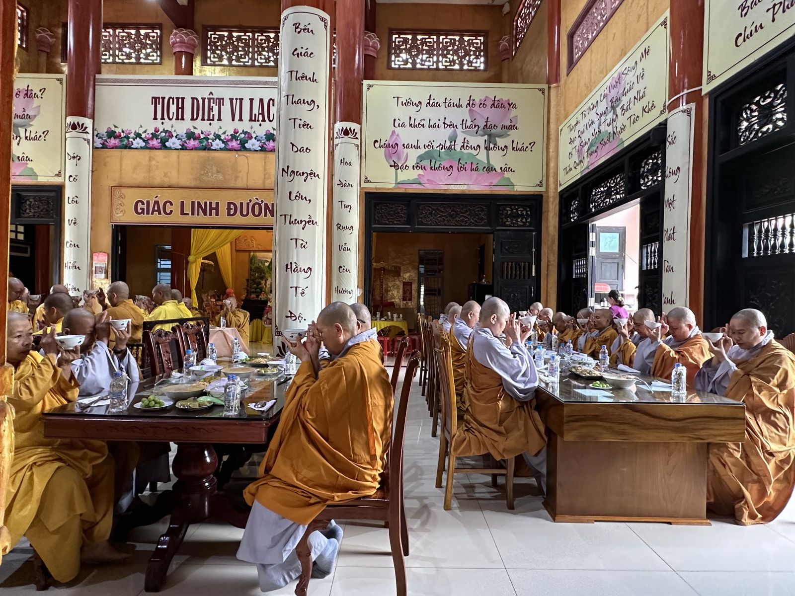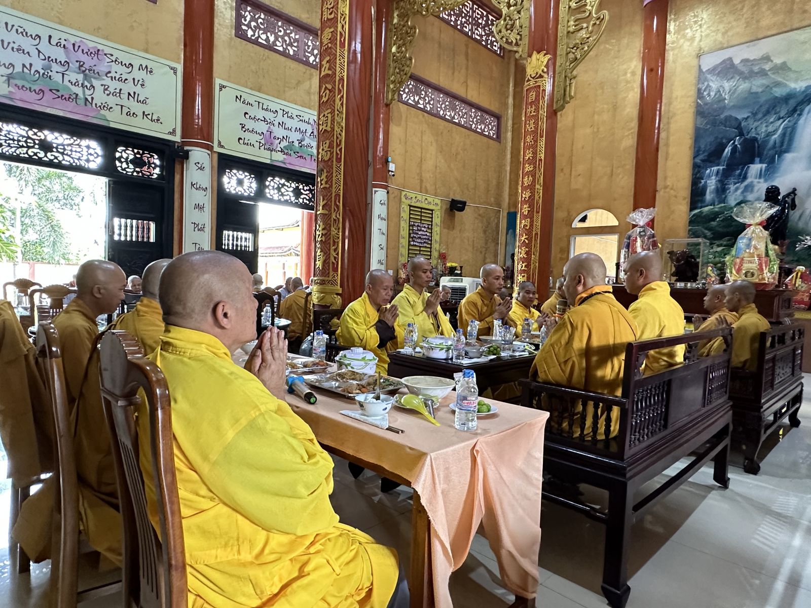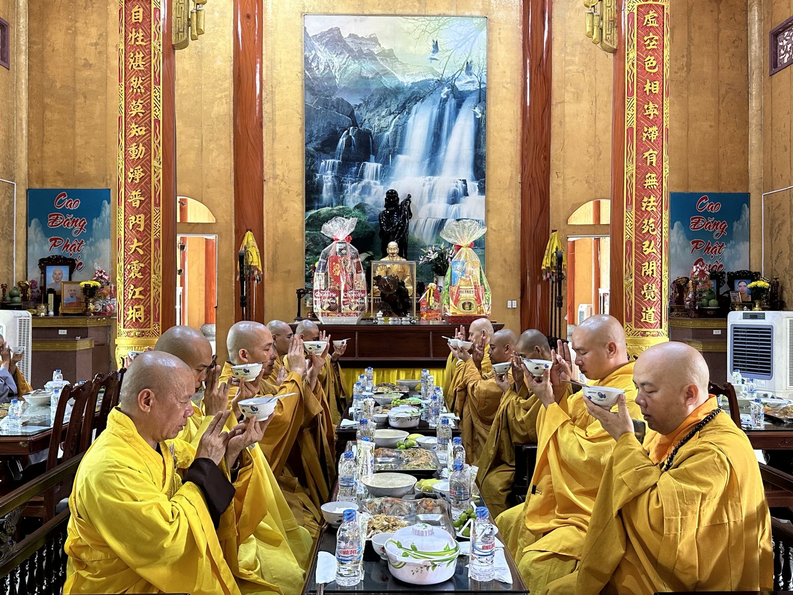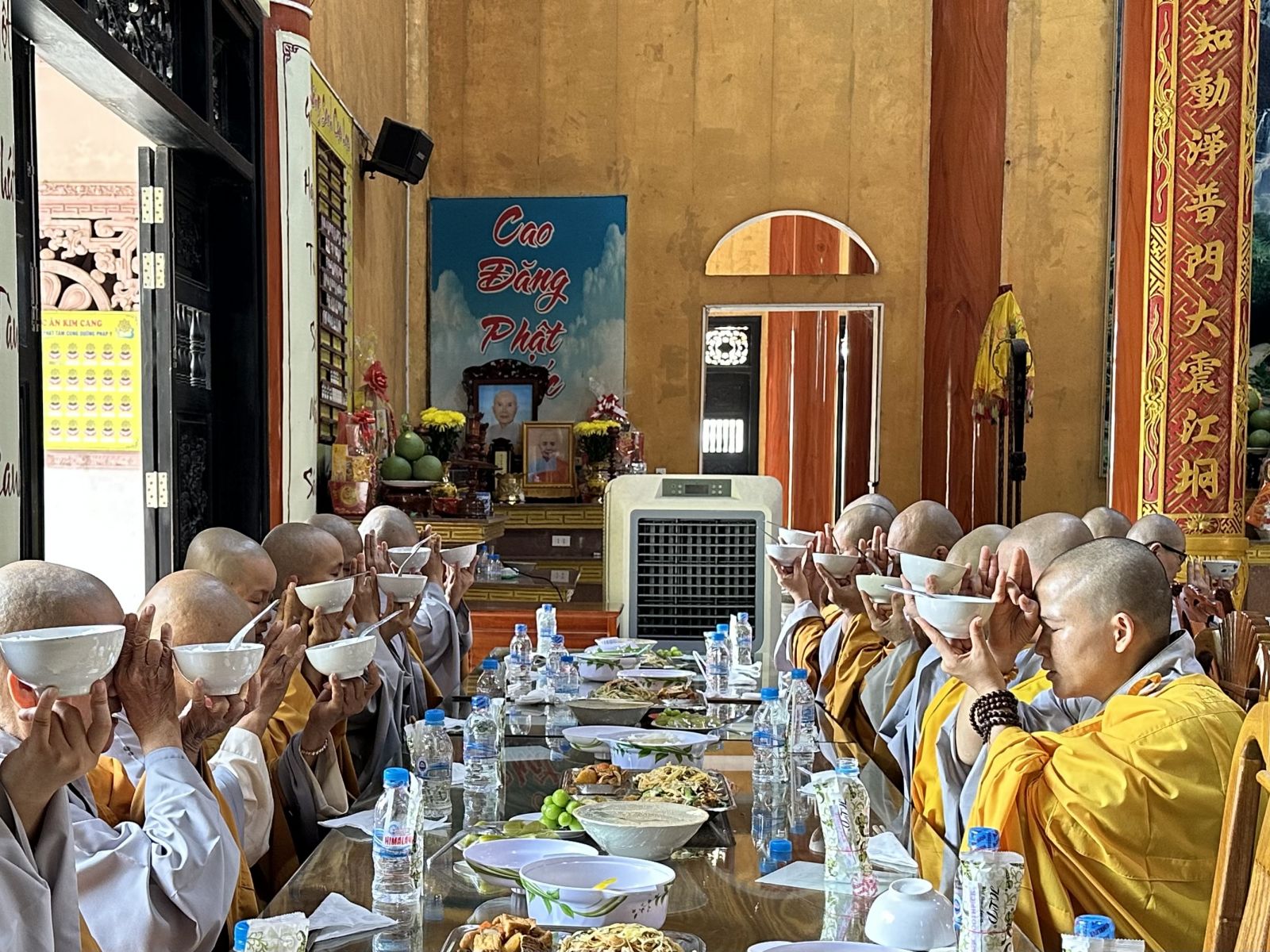 Sau thời khóa thuyết giới. Chư tôn đức đã thực hiện nghi thức cúng ngọ phật và quá đường thọ trai, trong niềm hoan hỷ.