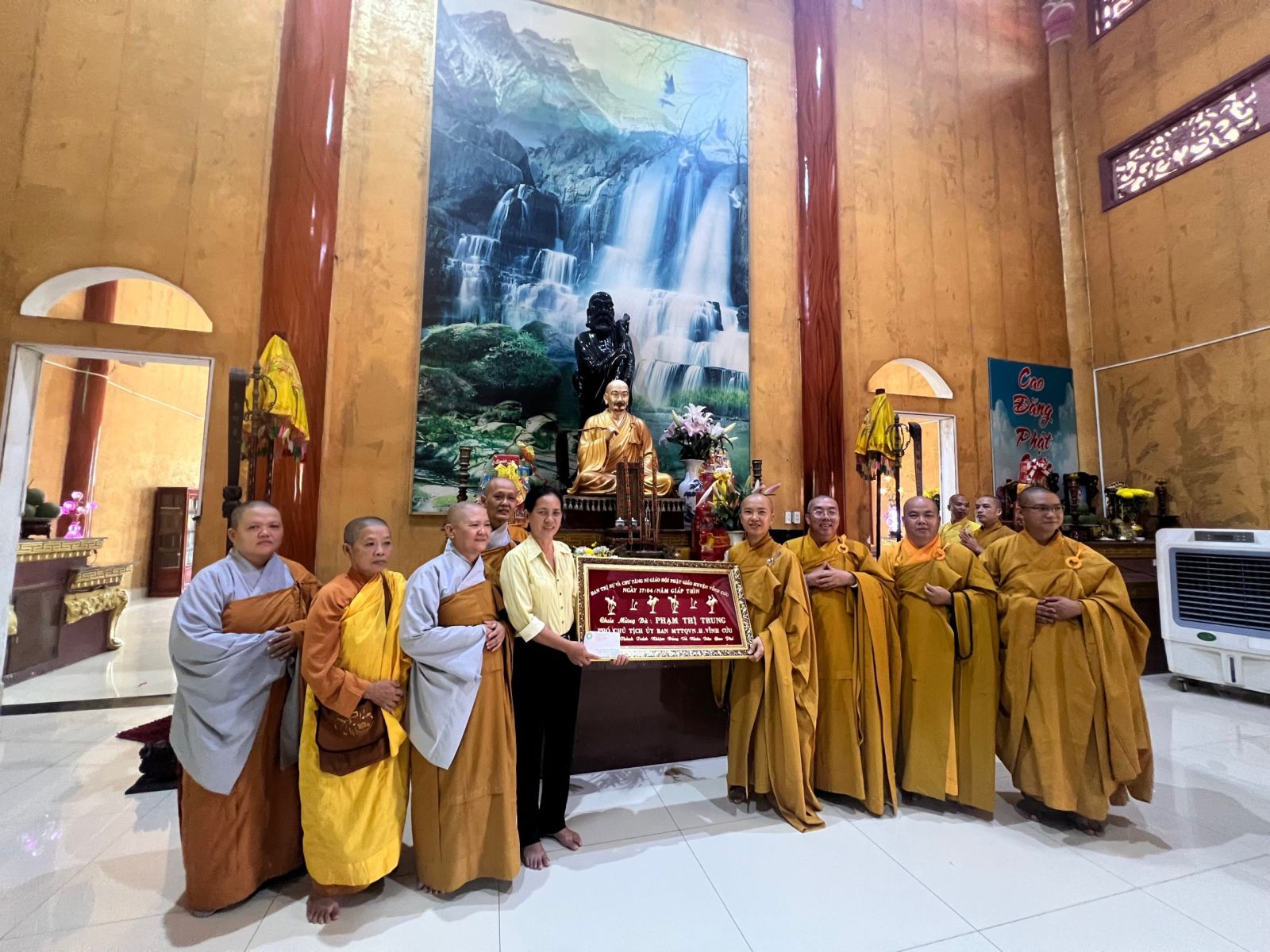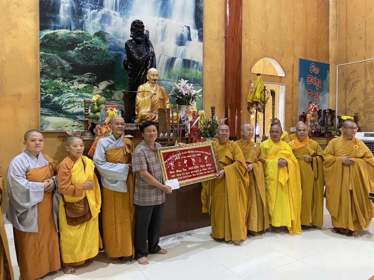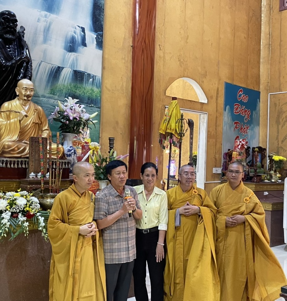 Thượng tọa Thích Thiện Thuận đã trao khánh vàng tri ân đến ông Nguyễn Văn Hóa. Nguyên Chủ tịch ủy Ban Mặt Trận Tổ Quốc Việt Nam huyện. Đại đức Thích Kiến Tịnh đã trao khánh vàng tri ân đến bà Phạm Thị Trung, nguyên phó Chủ tịch ủy Ban Mặt Trận Tổ Quốc Việt Nam huyện.