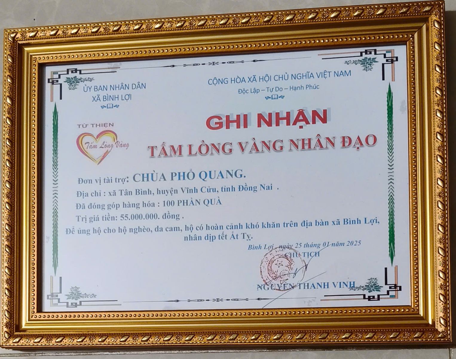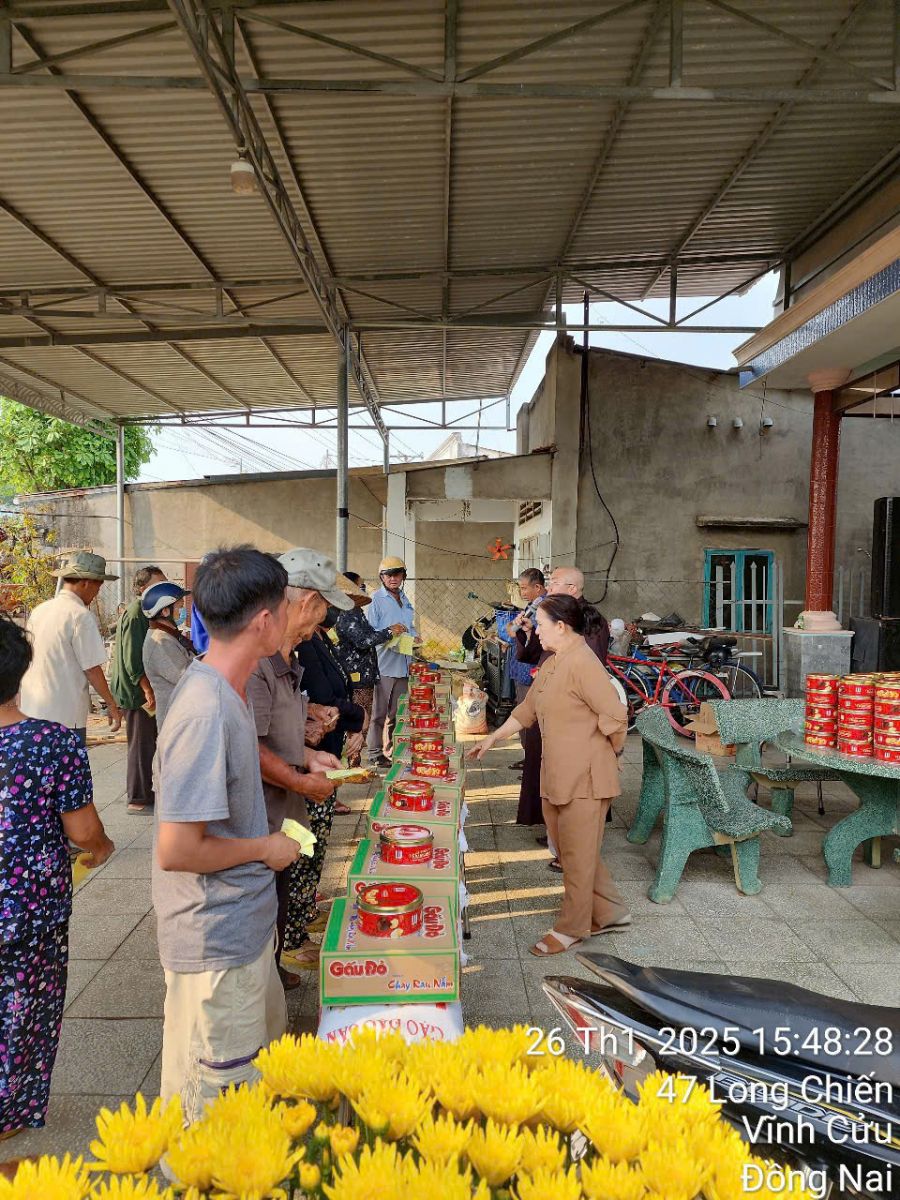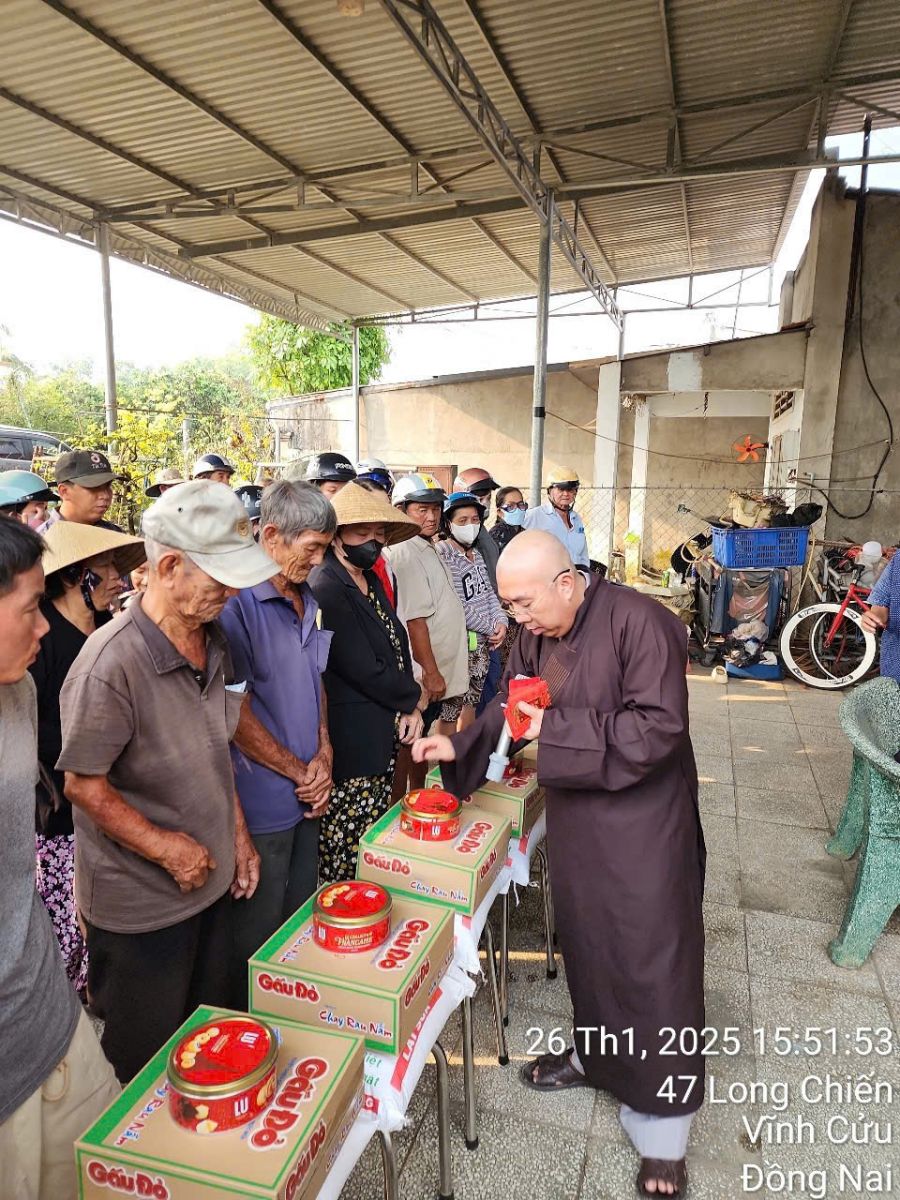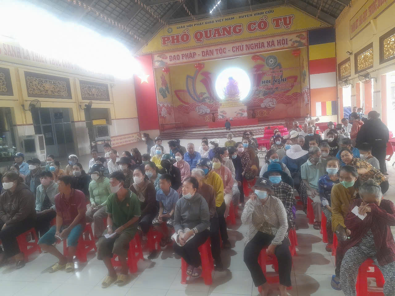 Thực hiện chương trình Thiện nguyện cuối năm Giáp Thìn, TT. Thích Thiện Thuận – Trưởng Ban Trị sự GHPGVN huyện Vĩnh Cửu, Trụ trì Phổ Quang cổ tự đã tổ chức trao tặng 200 phần quà cho bà con khó khăn tại địa phương. Mỗi phần quà bao gồm: 10kg gạo, 01 thùng mì, 01 hộp bánh và bao thư 100 ngàn.