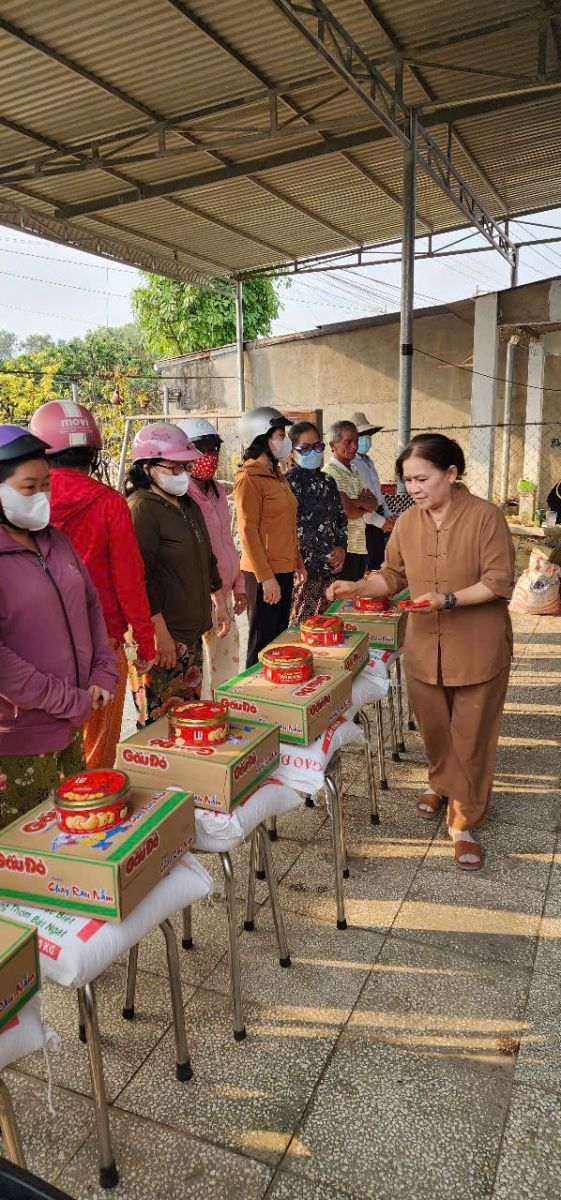 Tiếp tục chương trình, Chiều cùng ngày Thượng tọa đã trao tặng thêm 100 phần quà cho bà con tại quê hương, ấp 2, xã Bình Lợi, huyện Vĩnh Cửu.