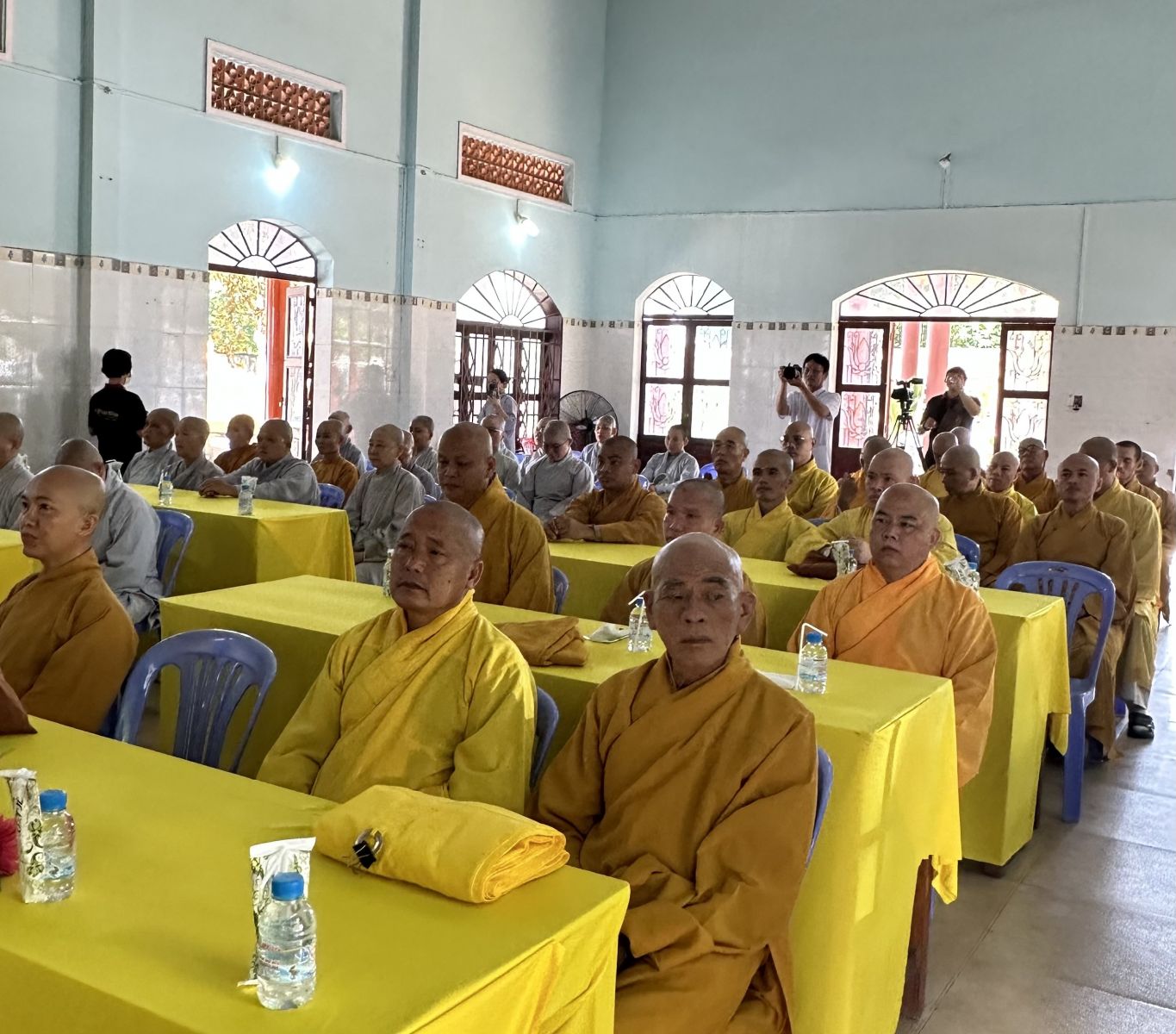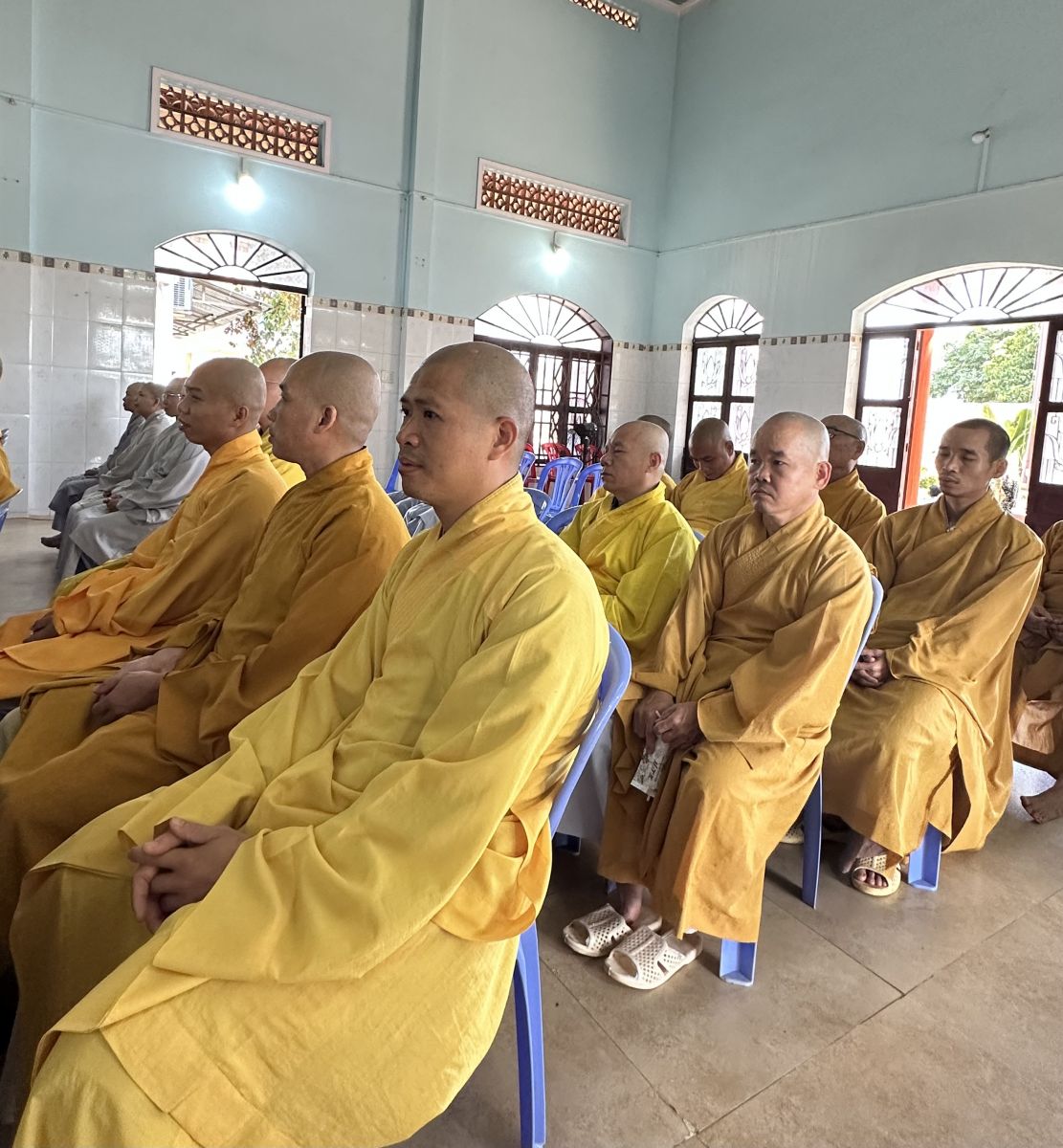 Đón tiếp phái đoàn có: HT Thích Hải Thành – chứng minh BTS PG huyện. TT Thích Thiện Thuận – Trưởng ban BTS PG huyện. ĐĐ Thích Kiến Tịnh – Phó thường trực BTS PG huyện. ĐĐ Thích Minh Đạt – Phó ban kiêm Trưởng ban pháp chế PG huyện. Ni sư Thích Nữ Huệ Xuân – Chánh thư ký BTS PG huyện, cùng chư tôn đức thường trực BTS PG huyện. Chư tôn đức Trụ trì các chùa, tịnh xá, tịnh thất, Niệm phật đường, chư hành giả an cư đồng trở về đón tiếp phái đoàn.