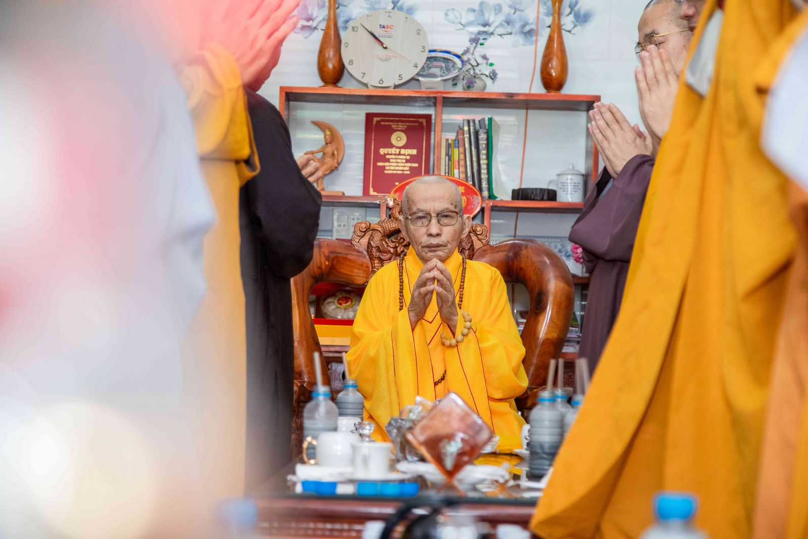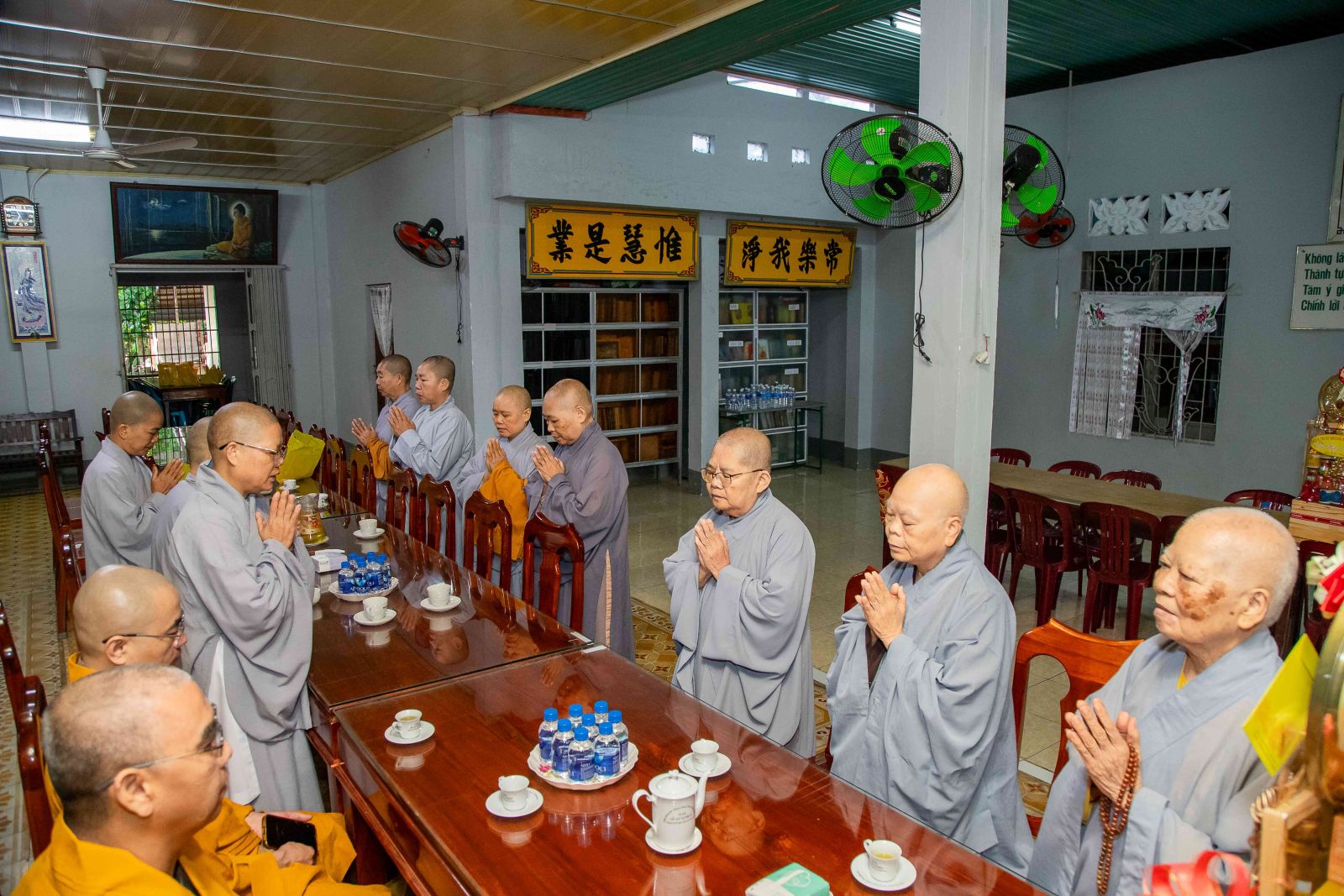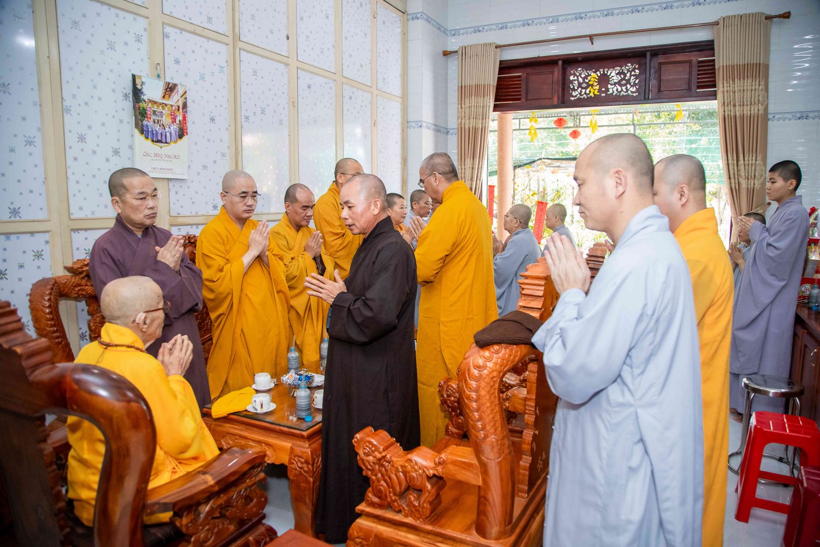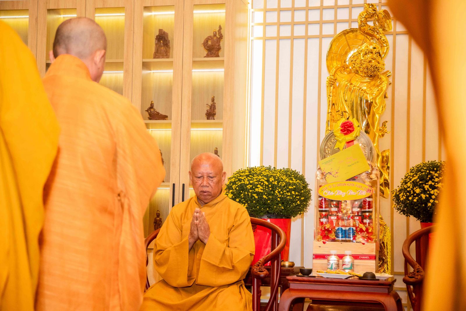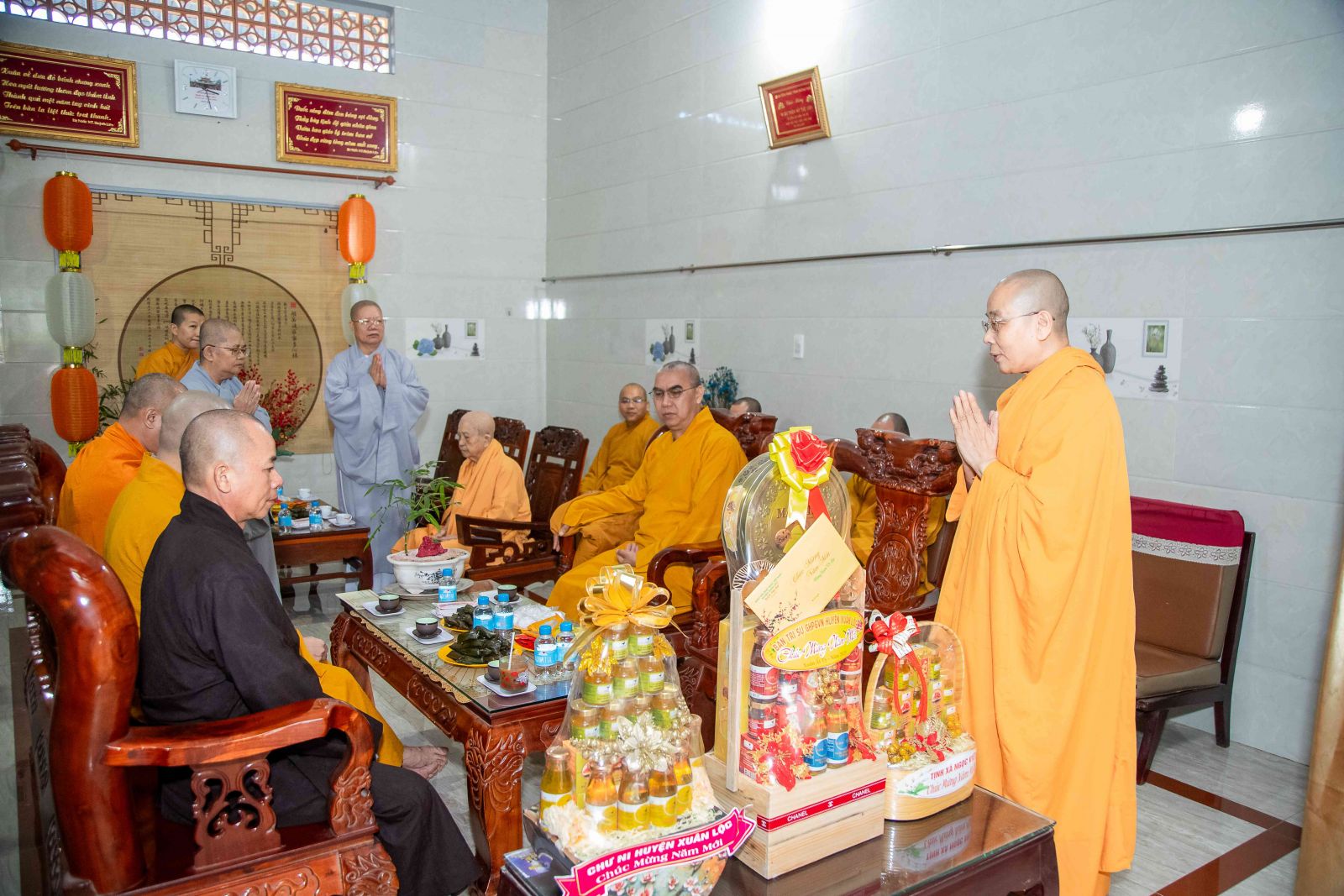 Đối trước các bậc Tôn túc TT. Thích Huệ Quang đã thay mặt chư Tăng Ni dâng lời khánh tuế chúc tết. Thượng tọa chúc nguyện sức khỏe quý Tôn túc để làm chỗ dựa tinh thần cho tập thể Ban Trị sự cùng chư Tăng Ni trong huyện nương tựa tu tập và điều hành Phật sự của Giáo hội. Quý chư Tôn đức Giáo phẩm Chứng minh, quý Ni trưởng Chứng minh Ni giới đã dành lời tán thán tri ân tập thể Ban Trị sự cùng Phân ban Ni giới. Quý Tôn đức Giáo phẩm mong muốn trên tinh thần đoàn kết, hòa hợp, trưởng dưỡng đạo tâm để trang nghiêm GHPGVN huyện. Mong muốn Ban Trị sự phát huy tinh thần phụng sự và thực hiện những kế hoạch Phật sự đã định hướng trong năm 2025 để đạt được những thành tựu Phật sự chung của GHPGVN huyện Xuân Lộc.