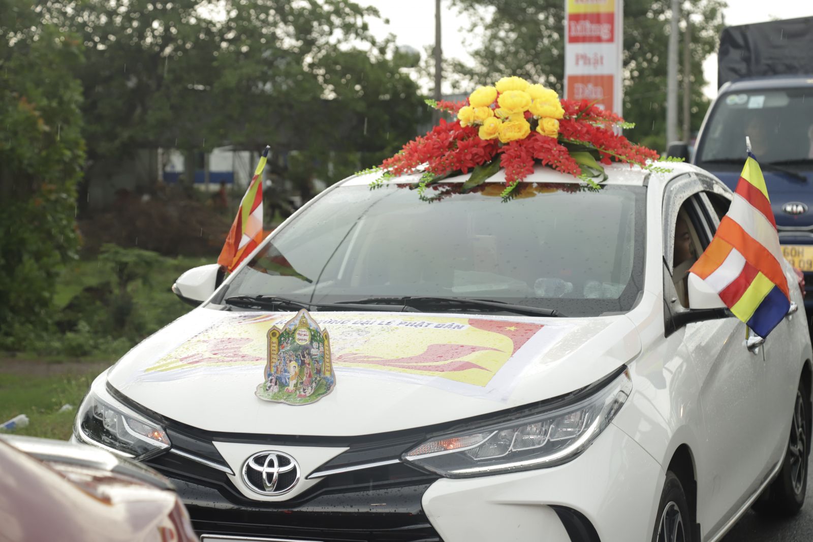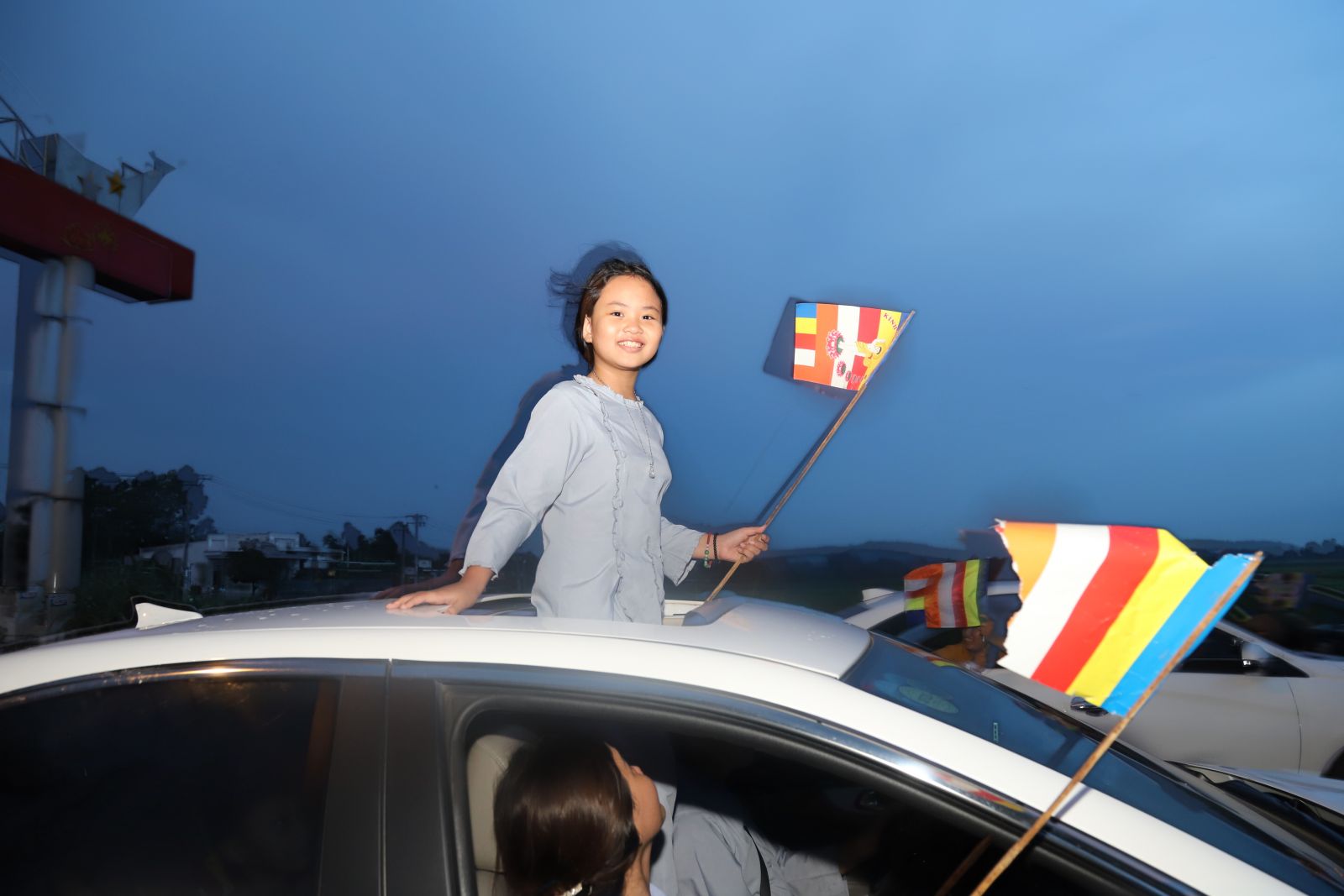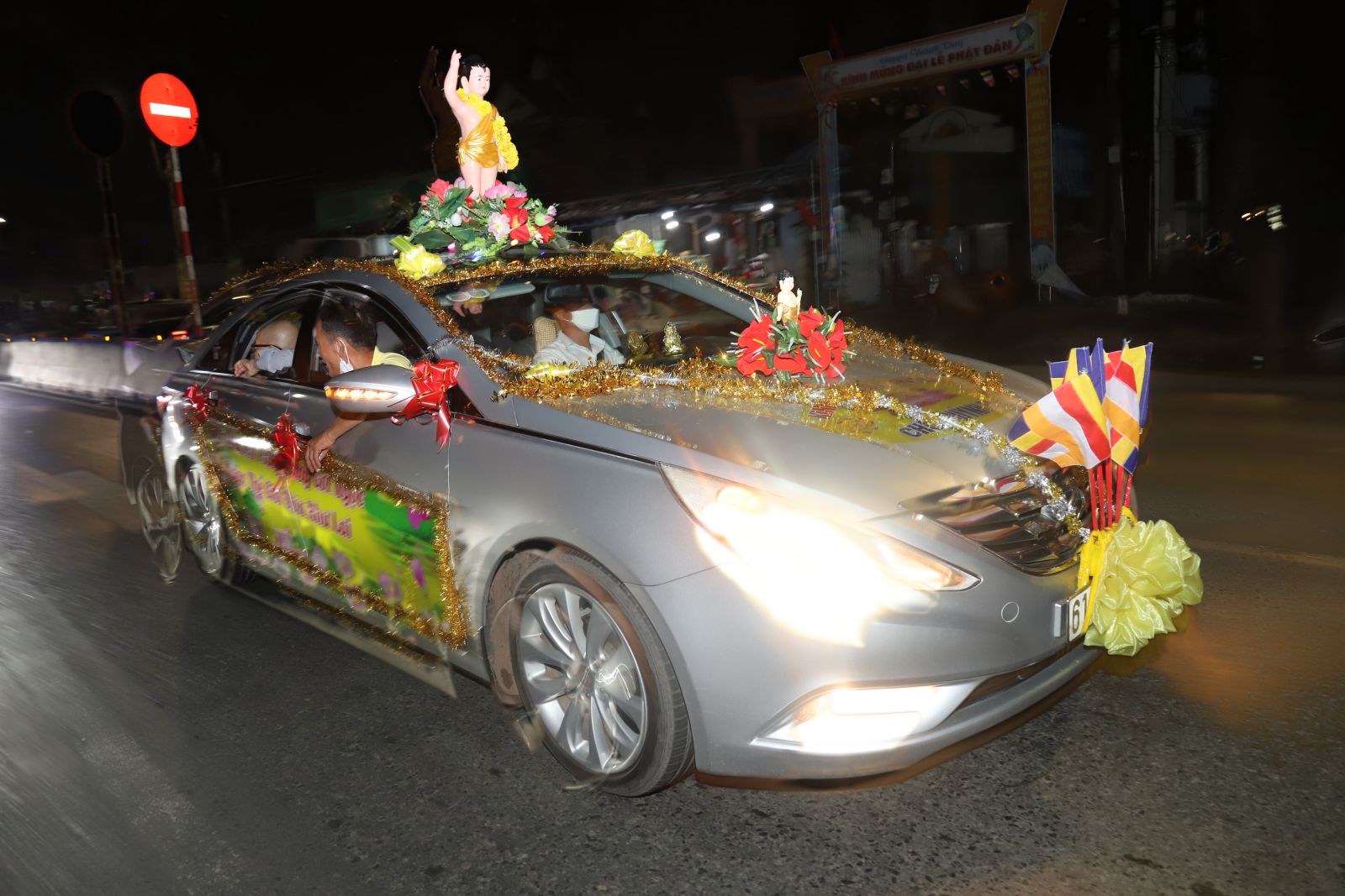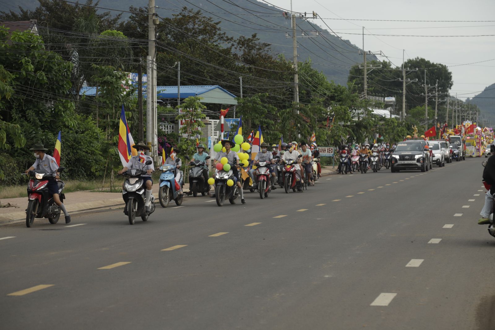 Trong niềm hoan hỷ vô biên đón mừng Phật đản, đoàn diễu hành có sự tham dự của Ban Tổ chức, Ban Điều hành xe hoa, xe chư Tăng Ni. Và sự hưởng ứng nồng nhiệt và thành kính của các GĐPT, các Đạo tràng Phật tử bằng xe mô tô, xe gắn máy, xe đạp được trang trí cờ, hoa,…rực rỡ kéo đài hơn 02km với số lượng gần 1000 người tham dự khiến cho cả đoạn đường dài lung linh tràn ngập hoa đèn, hoà vui theo ca khúc Kính mừng Phật Đản. Trên các tuyến đường các tự viện và các tư gia Phật tử cầm cờ hoa ra đón và chấp tay thành kính trong niềm tôn kính vô biên.