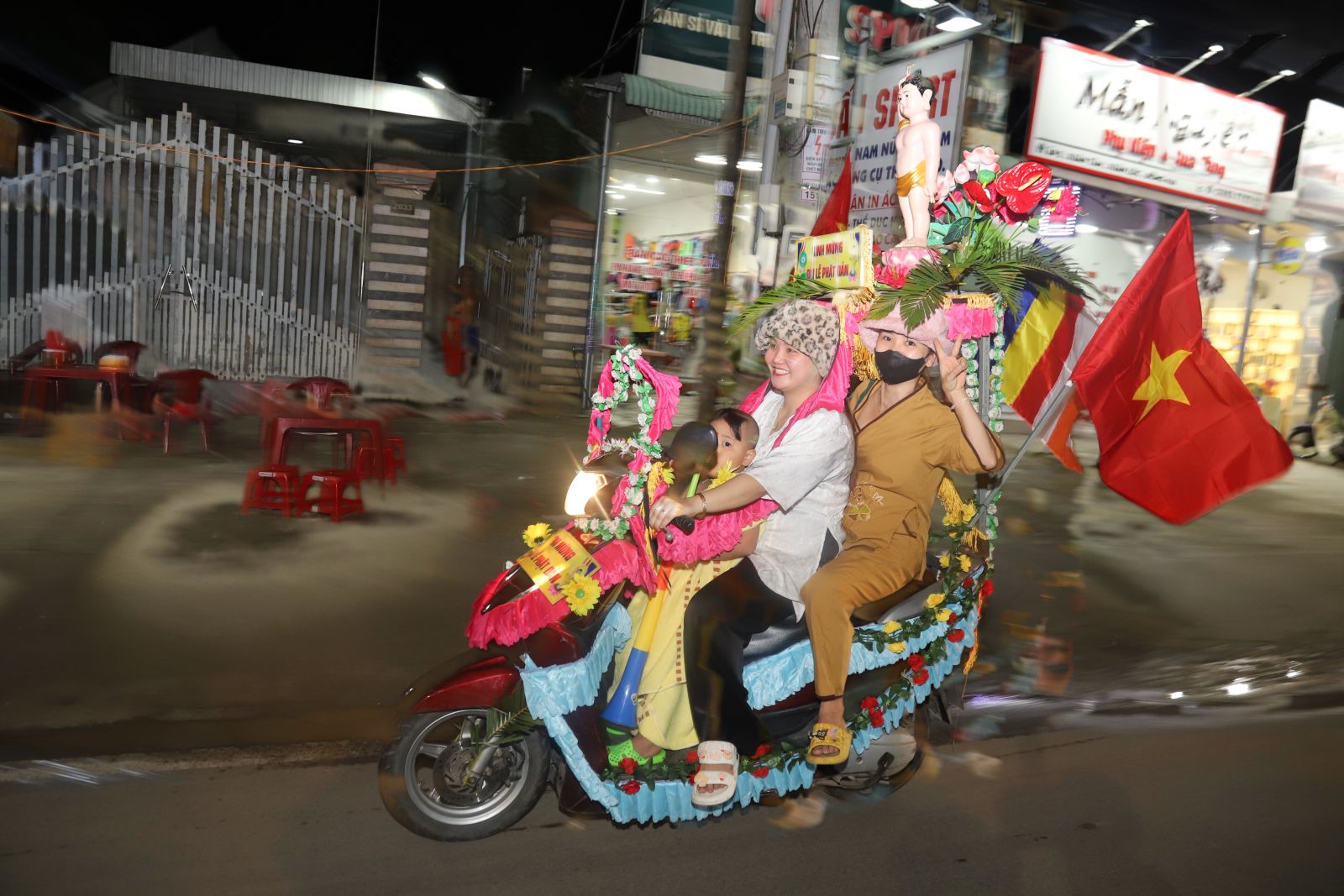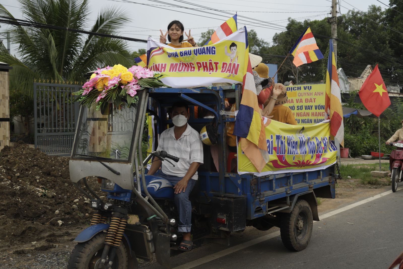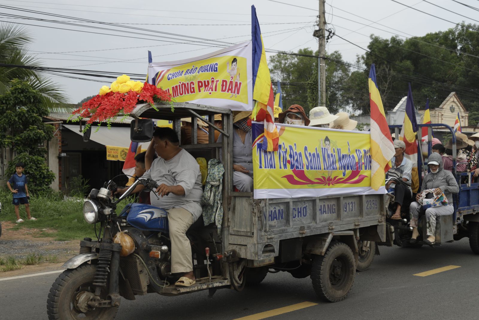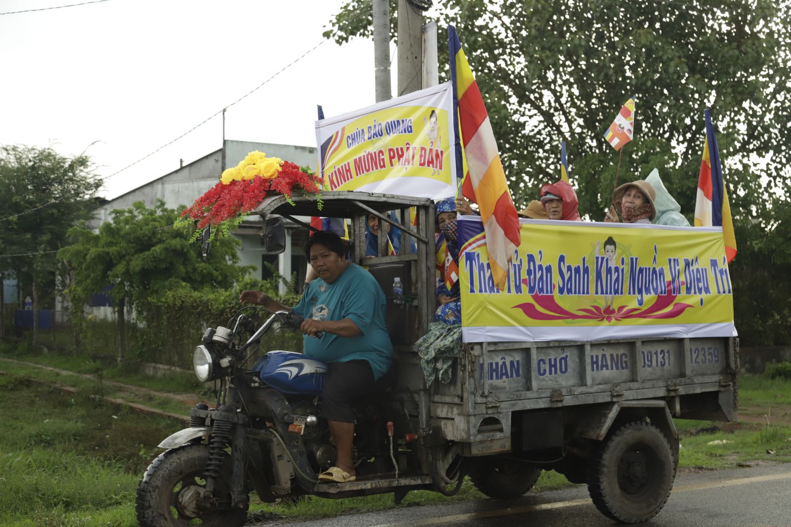 Trong niềm hoan hỷ vô biên đón mừng Phật đản, đoàn diễu hành có sự tham dự của Ban Tổ chức, Ban Điều hành xe hoa, xe chư Tăng Ni. Và sự hưởng ứng nồng nhiệt và thành kính của các GĐPT, các Đạo tràng Phật tử bằng xe mô tô, xe gắn máy, xe đạp được trang trí cờ, hoa,…rực rỡ kéo đài hơn 02km với số lượng gần 1000 người tham dự khiến cho cả đoạn đường dài lung linh tràn ngập hoa đèn, hoà vui theo ca khúc Kính mừng Phật Đản. Trên các tuyến đường các tự viện và các tư gia Phật tử cầm cờ hoa ra đón và chấp tay thành kính trong niềm tôn kính vô biên.
