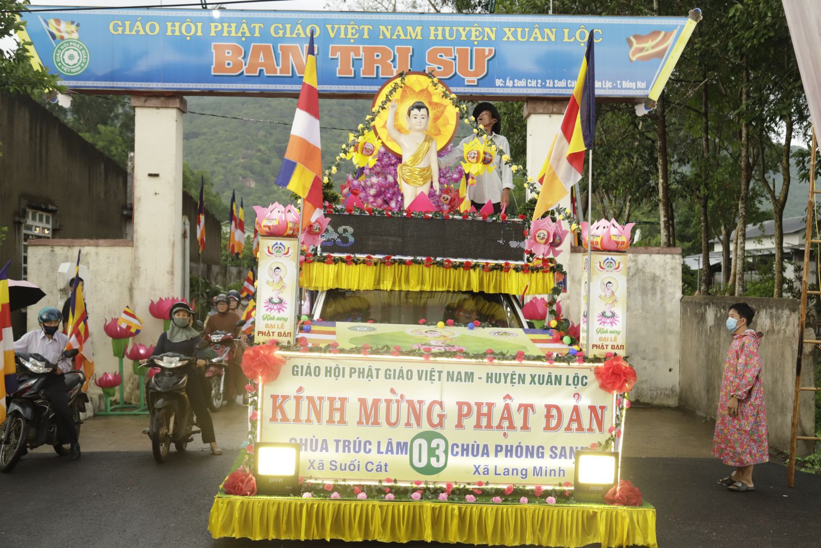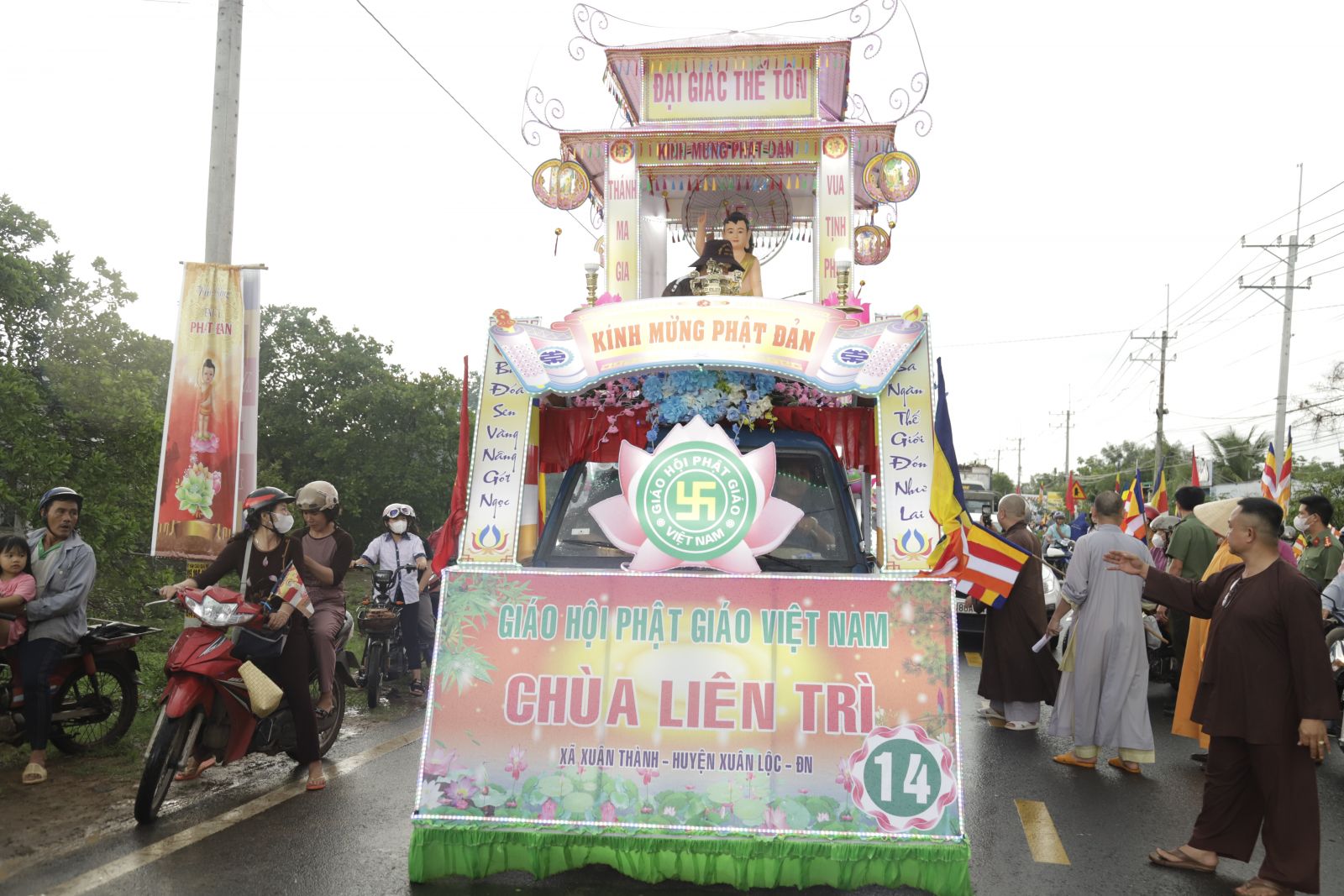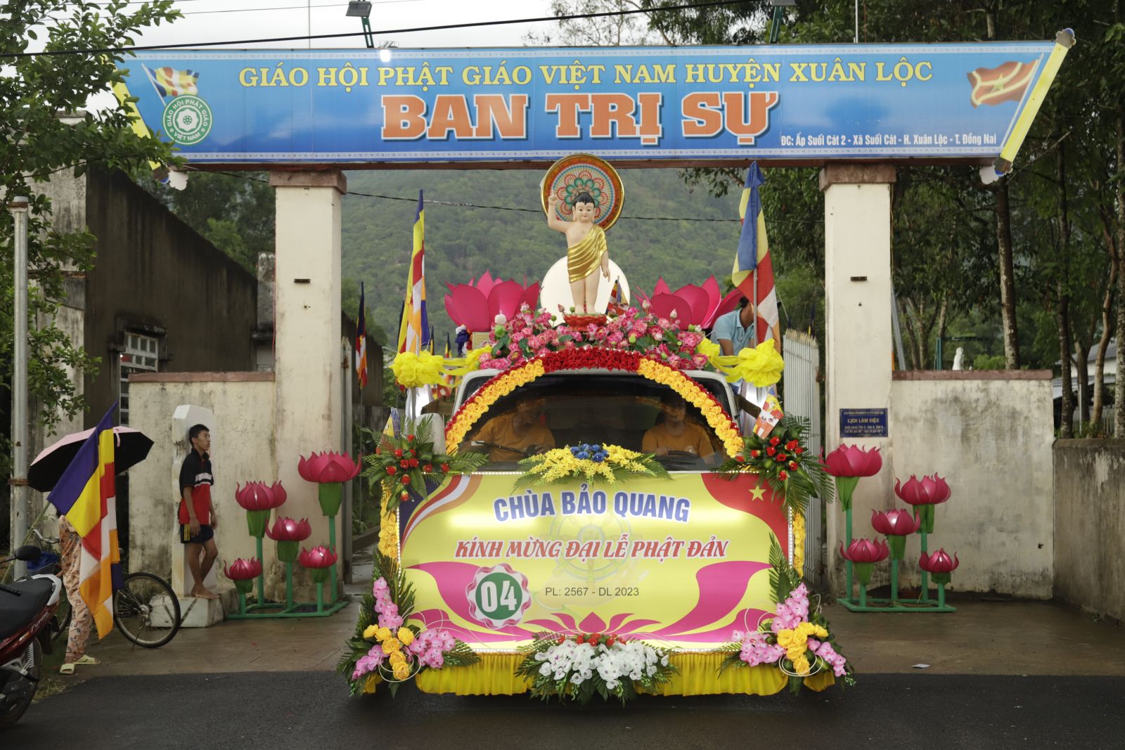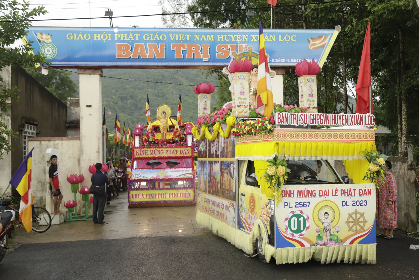 Thay mặt Ban Tổ chức Đại lễ, Thượng tọa Thích Huệ Quang - UV BTS GHPGVN tỉnh Đồng Nai, Trưởng BTS GHPGVN huyện Xuân Lộc đã phát lệnh diễu hành xe hoa. Trước khi Phát lệnh diễu hành Thượng toạ đã cho biết mục đích tổ chức diễu hành xe hoa không những cúng dường Đức Phật mà còn tạo sự lan tỏa thông điệp trí tuệ và từ bi của Đức Phật đến với chư Tăng Ni, Phật tử và những người yêu mến Đạo Phật. Trong suốt 02 năm diễn biến bởi dịch Covid-19 việc diễu hành xe hoa bị gián đoạn, nay hội đủ duyên lành việc diễu hành xe hoa được thực hiện trong niềm hoan hỷ và thành kính dâng lên cúng dường bậc Đạo sư xuất thế.