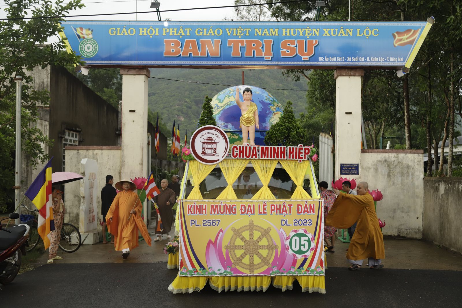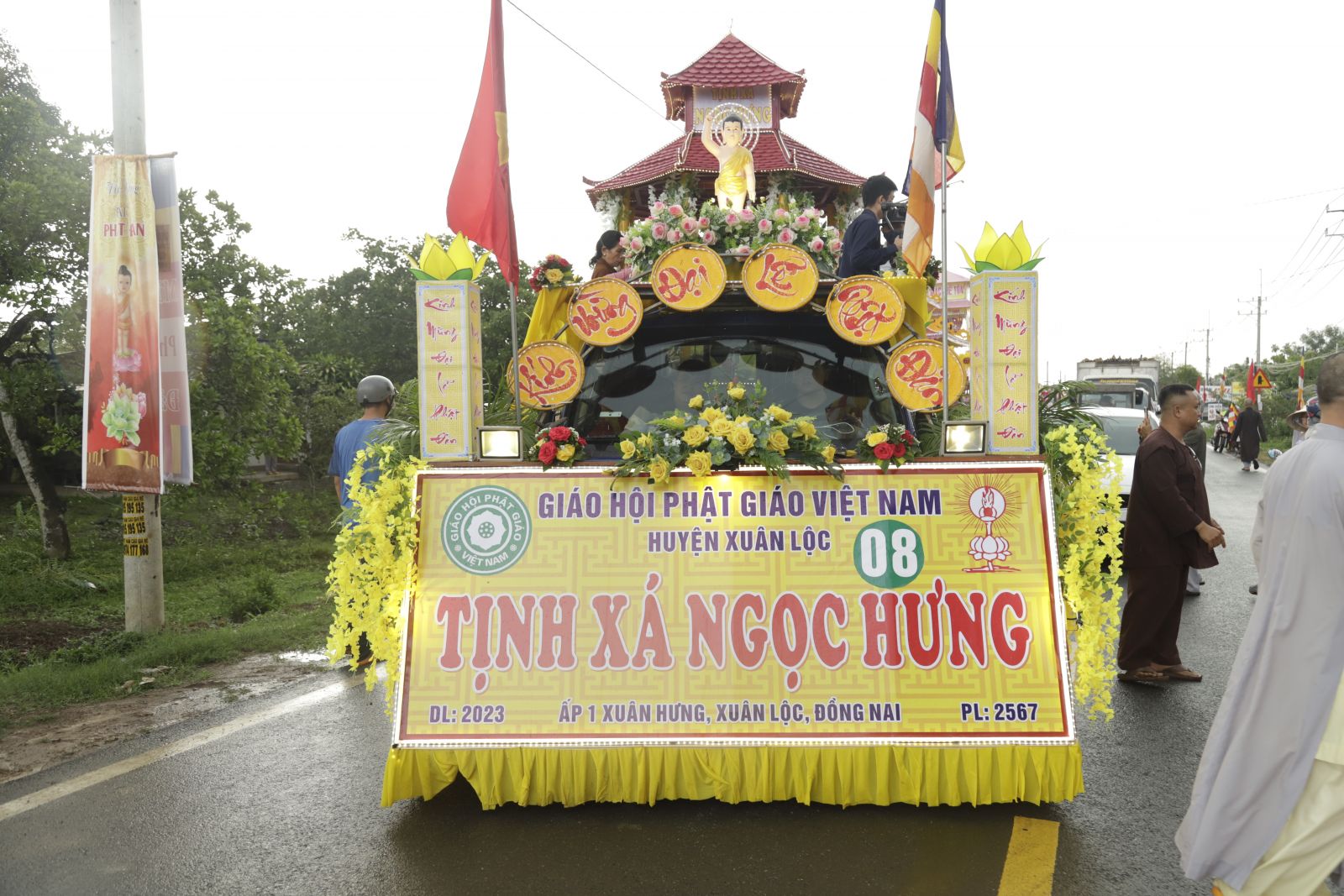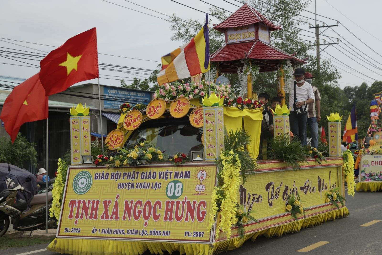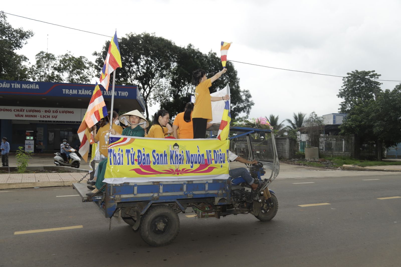 Thay mặt Ban Tổ chức Đại lễ, Thượng tọa Thích Huệ Quang - UV BTS GHPGVN tỉnh Đồng Nai, Trưởng BTS GHPGVN huyện Xuân Lộc đã phát lệnh diễu hành xe hoa. Trước khi Phát lệnh diễu hành Thượng toạ đã cho biết mục đích tổ chức diễu hành xe hoa không những cúng dường Đức Phật mà còn tạo sự lan tỏa thông điệp trí tuệ và từ bi của Đức Phật đến với chư Tăng Ni, Phật tử và những người yêu mến Đạo Phật. Trong suốt 02 năm diễn biến bởi dịch Covid-19 việc diễu hành xe hoa bị gián đoạn, nay hội đủ duyên lành việc diễu hành xe hoa được thực hiện trong niềm hoan hỷ và thành kính dâng lên cúng dường bậc Đạo sư xuất thế.
