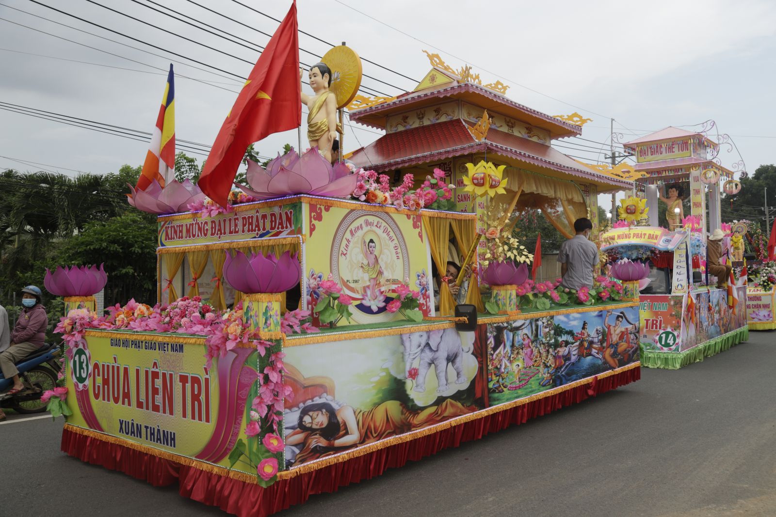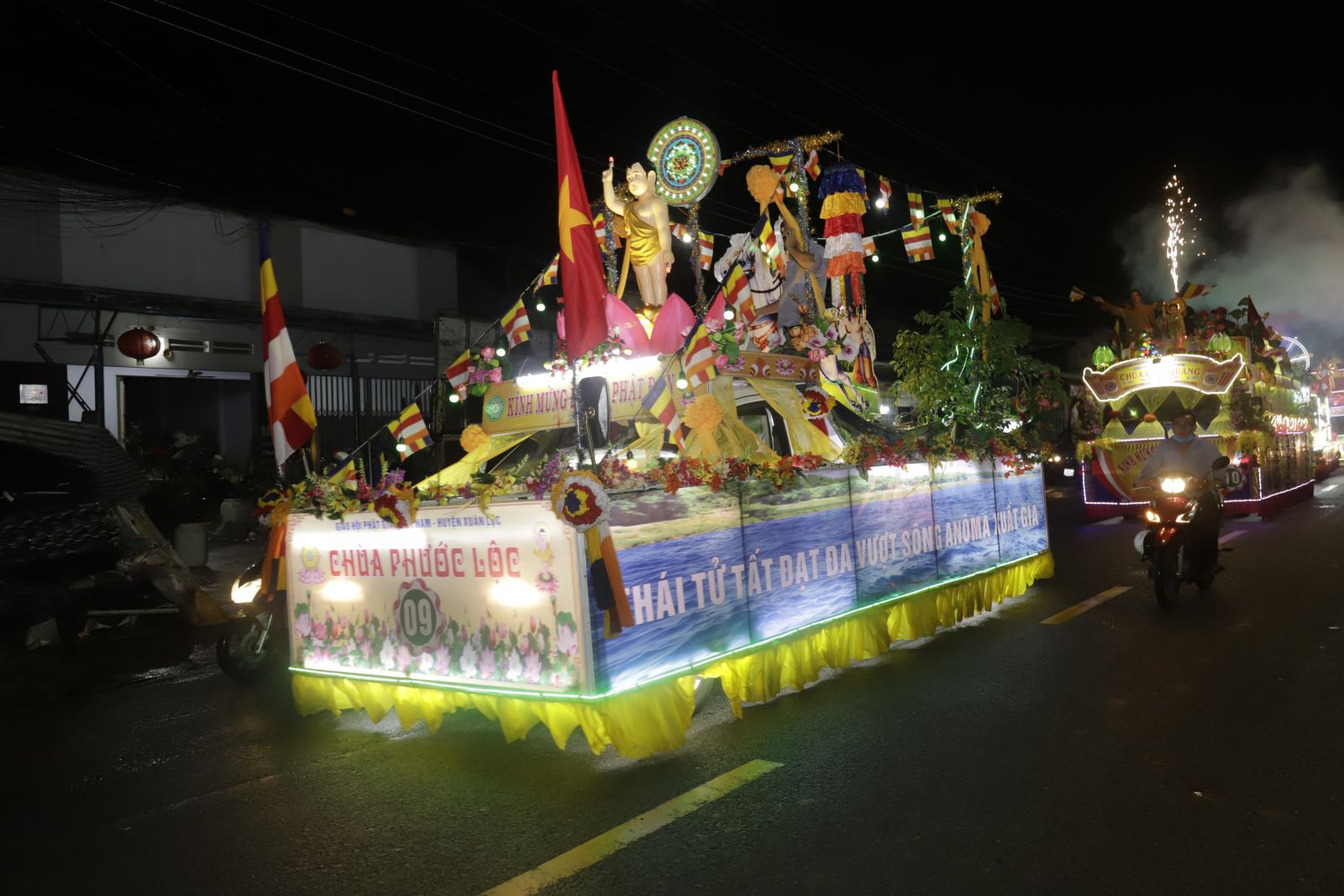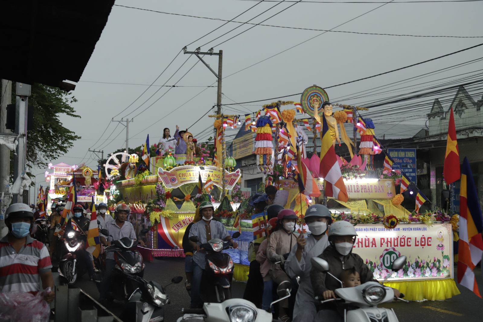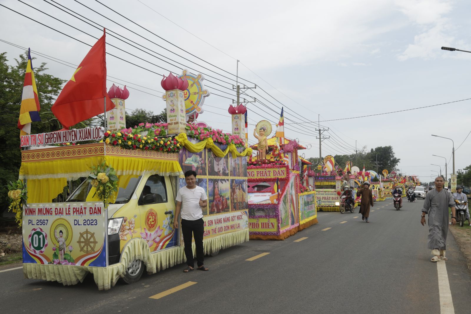 Được biết năm nay, Ban Trị sự và các tự viện trong huyện trang nghiêm thiết trí 25 chiếc xe hoa lớn nhỏ với nhiều chủ đề khác nhau, nội dung phong phú. Được sự hỗ trợ của Chính quyền và các cơ quan của huyện Xuân Lộc, Công an huyện Xuân Lộc đã cử lực lượng Cảnh sát giao thông huyện tham gia hộ tống, bảo vệ an ninh trật tự cho đoàn diễu hành xe hoa của Phật giáo huyện trong suốt 02 ngày diễu hành.
