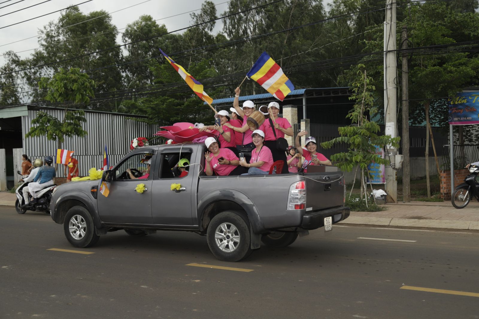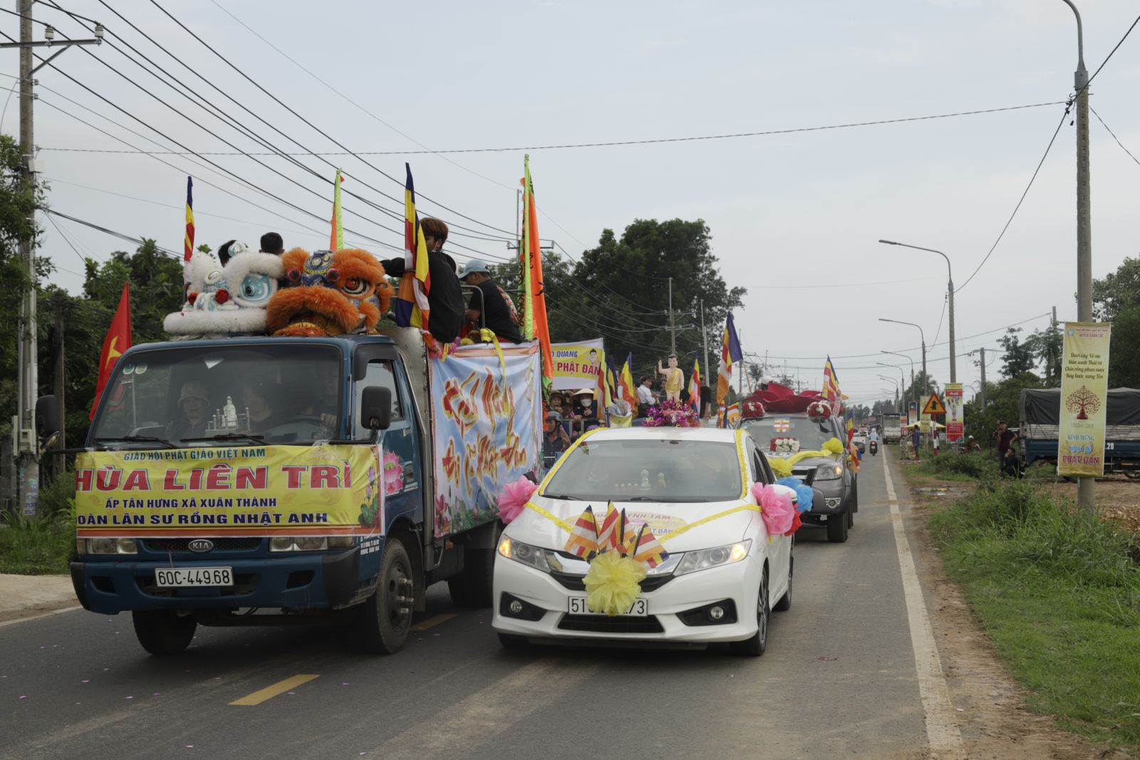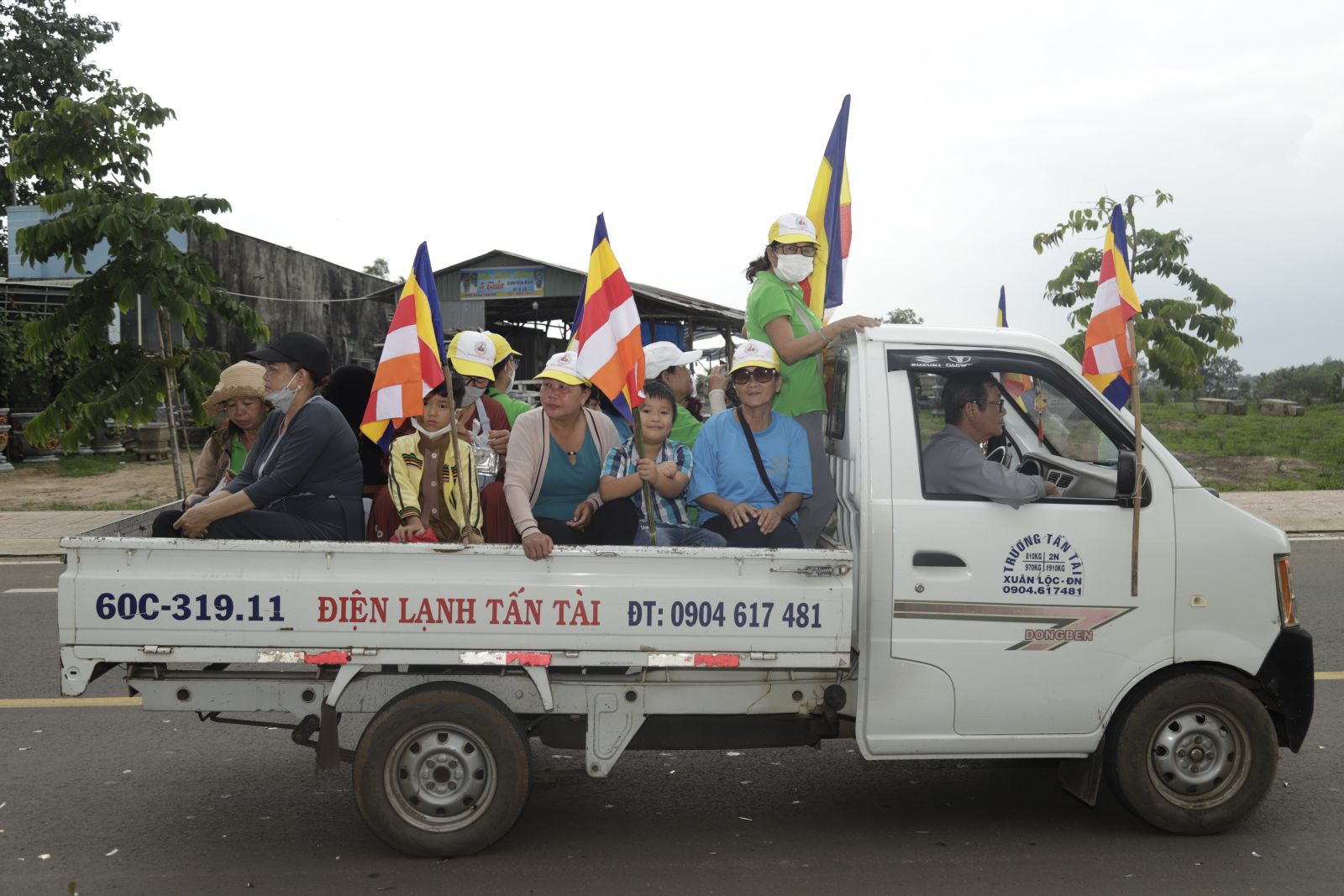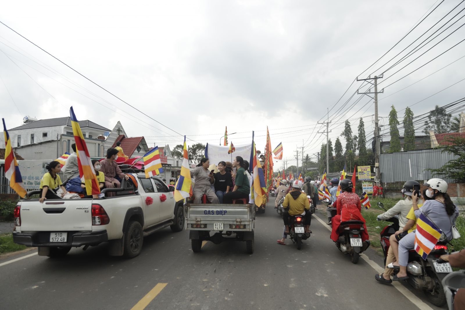 Vào chiều ngày 13/04/Quý Mão, đúng 14h30, xe hoa các Chùa, Tịnh xá, Tịnh thất tập trung tại trụ sở Văn phòng Ban Trị sự, ấp Suối Cát 2, xã Suối Cát, huyện Xuân Lộc theo thứ tự Ban Tổ chức đã bố trí, đợi giờ khai mạc, khởi hành.