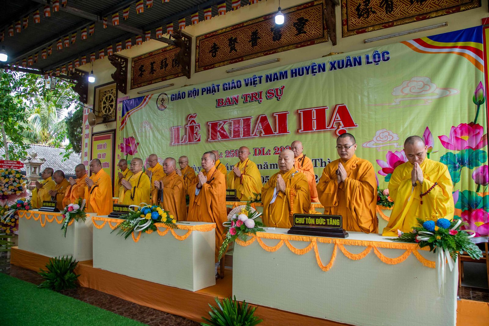 ĐĐ. Thích Thiện Trí - Phó Thư ký, Chánh Văn phòng BTS GHPGVN tỉnh thay mặt Thường trực BTS GHPGVN tỉnh thông qua giấy phép tổ chức An cư kiết hạ của Ban tôn giáo tỉnh và Ban Trị sự tỉnh đối với BTS GHPGVN huyện Xuân Lộc tại 02 điểm an cư: Chư Tăng tại chùa Linh Phú Phổ Hiền, xã Xuân Phú và chư Ni tại chùa Bảo Quang, xã Suối Cát.