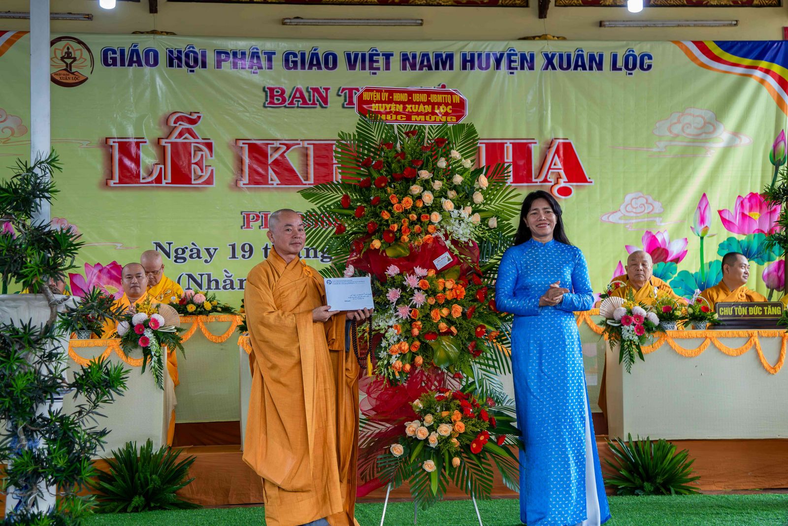 Về phía lãnh đạo Chính quyền có bà Huỳnh Thị Lành - UVTT Huyện ủy, Phó Chủ tịch UBND huyện; bà Lê Thị Hiệp - HUV, Chủ tịch UBMTTQVN huyện; ông Nguyễn Ngọc Bê - Phó Ban Dân vận Huyện ủy; ông Bùi Ngọc Thân - Phó trưởng Phòng Nội vụ huyện; Đại úy Đỗ Đình Thắng - Đội trưởng Đội An ninh Công an huyện Xuân Lộc; ông Huỳnh Tấn Hậu - Phó Bí thư Đảng ủy, Chủ tịch UBND xã Xuân Phú; ông Hoàng Mỹ Đức - Chủ tịch UBMTTQVN xã Xuân Phú; ông Nguyễn Tấn Lộc - Phó Chủ tịch UBND xã Suối Cát cùng chư vị đại diện các cơ quan chuyên môn trực thuộc huyện Xuân Lộc, xã Xuân Phú, xã Suối Cát và đông đảo quý nam nữ Phật tử trong huyện đồng về tham dự.