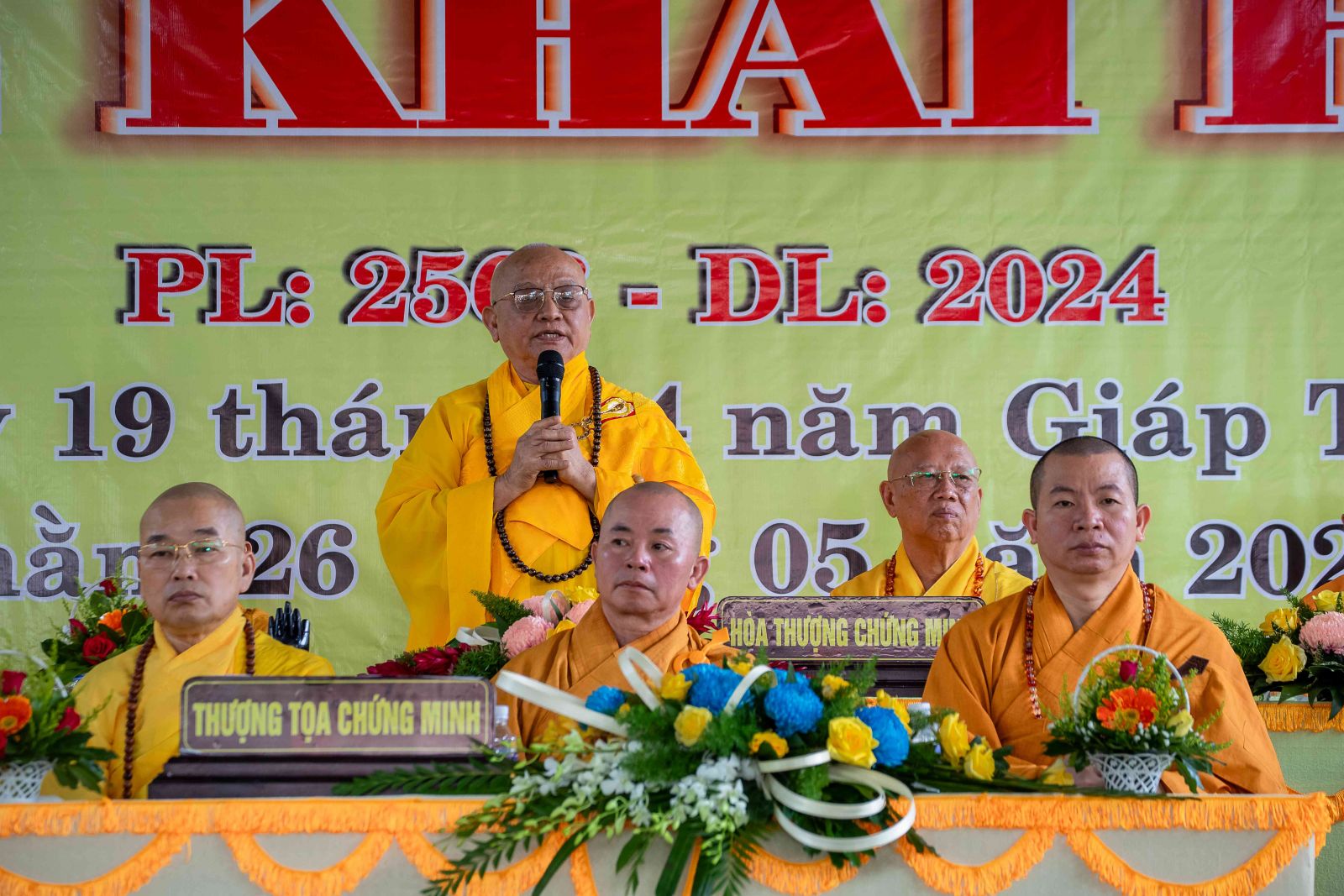Phát biểu khai mạc TT. Thích Huệ Quang - Trưởng Ban Tổ chức An cư kiết hạ nhấn mạnh: “ Y cứ Tỳ-ni Luật tạng, hàng năm vào 03 tháng mùa mưa, Tăng Ni phải tập trung về một trú xứ nhất định để kiết giới an cư nhằm thúc liễm thân tâm, tu tập và trau dồi Giới - Định - Tuệ, gìn giữ quy củ tòng lâm, trang nghiêm Giáo hội, lợi lạc tự thân và lợi ích xã hội. Mỗi hành giả Tăng Ni an cư phải ý thức rằng ngày nào giới luật của Phật dạy còn được duy trì gìn giữ một cách nghiêm mật bởi chúng Tăng. Ngày nào đời sống luôn khởi sắc, hòa hợp tin yêu giữa cá nhân Tăng đối với cộng đồng Tăng chân thật, quí kính, hòa ái trong tinh thần thượng tôn giới luật. Thì ngày đó, Phật pháp được xương minh, chánh pháp được trường lưu, giữa cuộc đời vô thường, sinh diệt.”