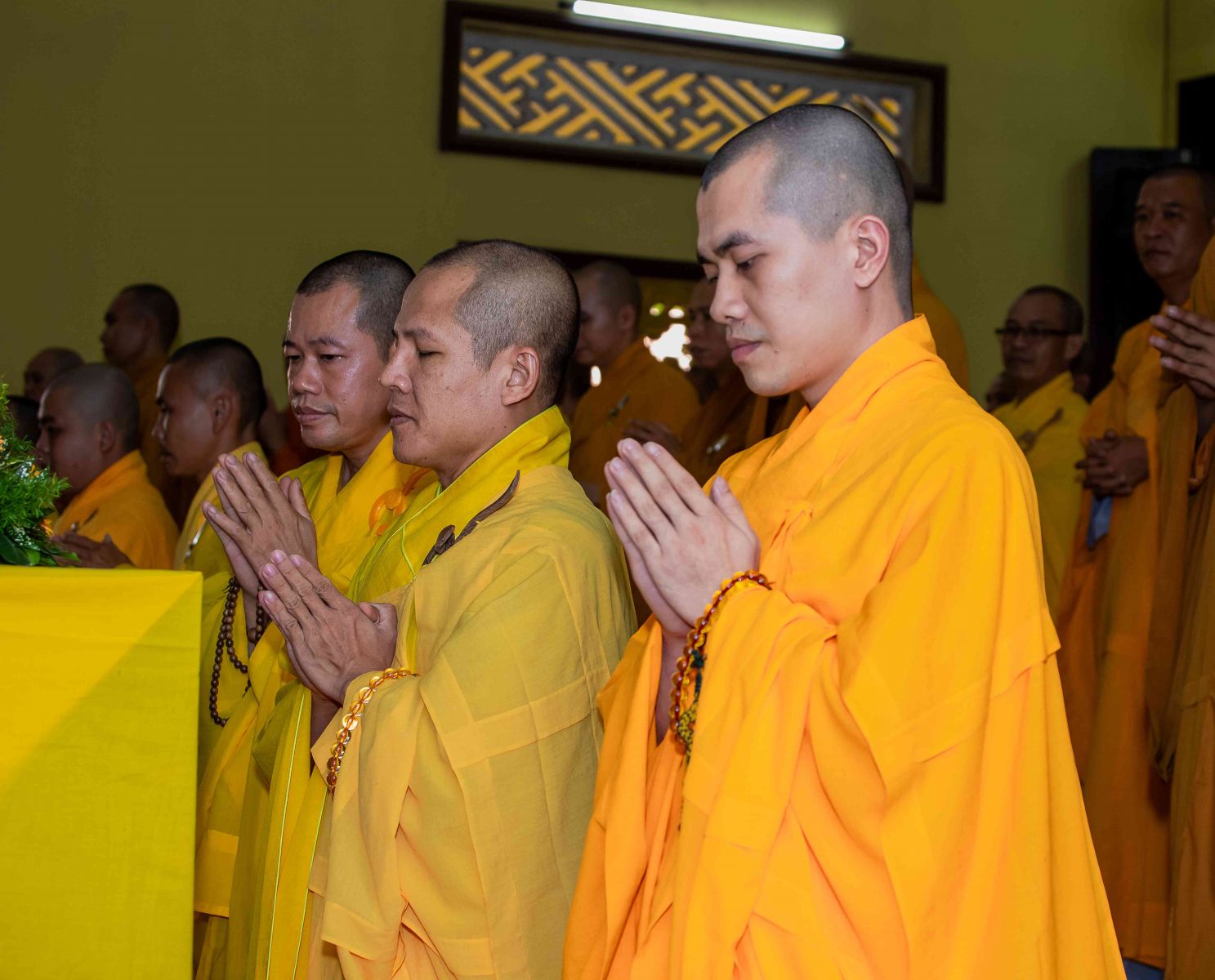 Đại diện cho gần 300 hành giả Tăng Ni an cư ĐĐ. Thích Đồng Đạt đã đối trước chư Tôn đức giáo phẩm để Cung an chức sự và phát nguyện nỗ lực tu học trong 03 tháng an cư để không phụ lòng mong mỏi của quý Ngài.