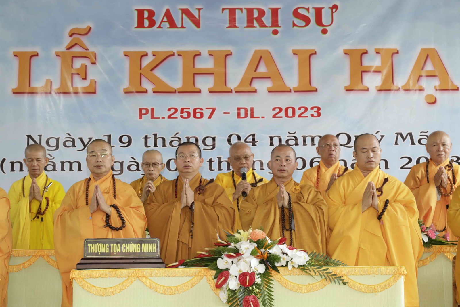 Phát biểu khai mạc TT. Thích Huệ Quang nhấn mạnh: “An cư Kiết hạ là một pháp môn tu tập cho hàng đệ tử xuất gia thể hiện lòng từ bi hộ mạng sinh linh, giữ gìn giới luật và làm tăng trưởng giá trị sống hòa hợp như nước với sữa của hàng Chúng Trung Tôn. Đồng thời, An cư kiết hạ cũng là thời gian, nhơn duyên cho hàng đệ tử tại gia phát tâm hộ pháp, tạo lấy phước lạc cho chính mình. Để thắp sáng hình ảnh đức Thế Tôn và hàng Thánh chúng còn tại thế, cũng như bảo tồn và phát huy tinh thần câu hội và hòa hợp Tăng-già. Đây là thời gian quý báu để chư Tôn đức Tăng Ni vân tập về một trú xứ cùng tiến tu đạo nghiệp, vun bồi giới đức làm hành trang, tư lương trên bước tu tập giải thoát, giác ngộ”.