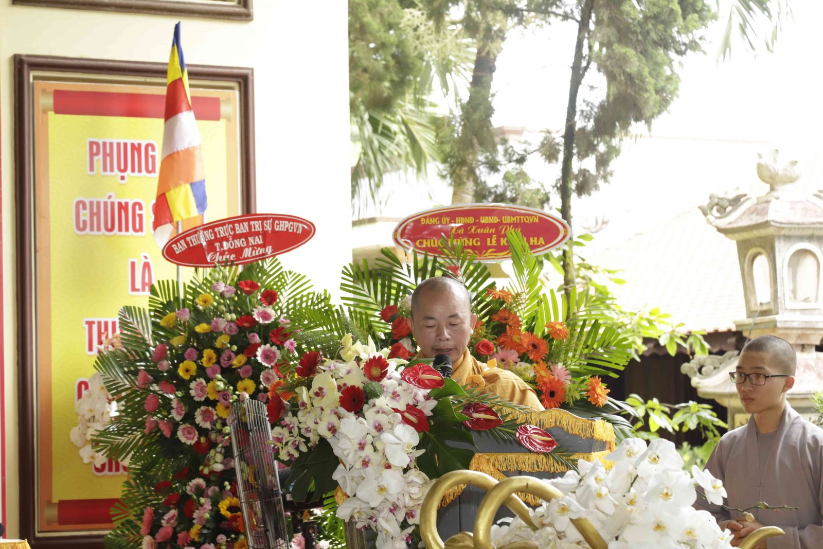 Trước khi kết thúc buổi lễ hành chánh ĐĐ. Thích Quảng Vinh - Phó BTS, Trưởng Ban Pháp chế GHPGVN huyện Xuân Lộc dâng lời cảm tạ đến chư Tôn đức giáo phẩm đã quang lâm chứng minh, quý quan khách, quý nam nữ Phật tử đã dành thời gian quý báu tham dự buổi lễ.