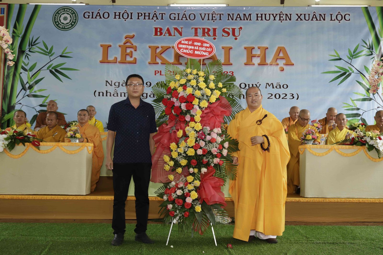 Về phía lãnh đạo Chính quyền có bà Huỳnh Thị Lành - UVTT Huyện ủy, Phó Chủ tịch UBND huyện Xuân Lộc; bà Lê Thị Hiệp - HUV, Chủ tịch UBMTTQVN huyện Xuân Lộc; ông Nguyễn Ngọc Bê - Phó BDV Huyện ủy huyện Xuân Lộc; ông Bùi Ngọc Thân - Phó trưởng Phòng Nội vụ huyện Xuân Lộc; Lê Viết Anh Hùng - Phó Chủ tịch UBND xã Xuân Phú, ông Nguyễn Tấn Lộc - Phó Chủ tịch UBND xã Suối Cát cùng chư vị đại diện các cơ quan chuyên môn trực thuộc huyện Xuân Lộc, xã Xuân Phú, xã Suối Cát và đông đảo quý nam nữ Phật tử trong huyện đồng về tham dự.