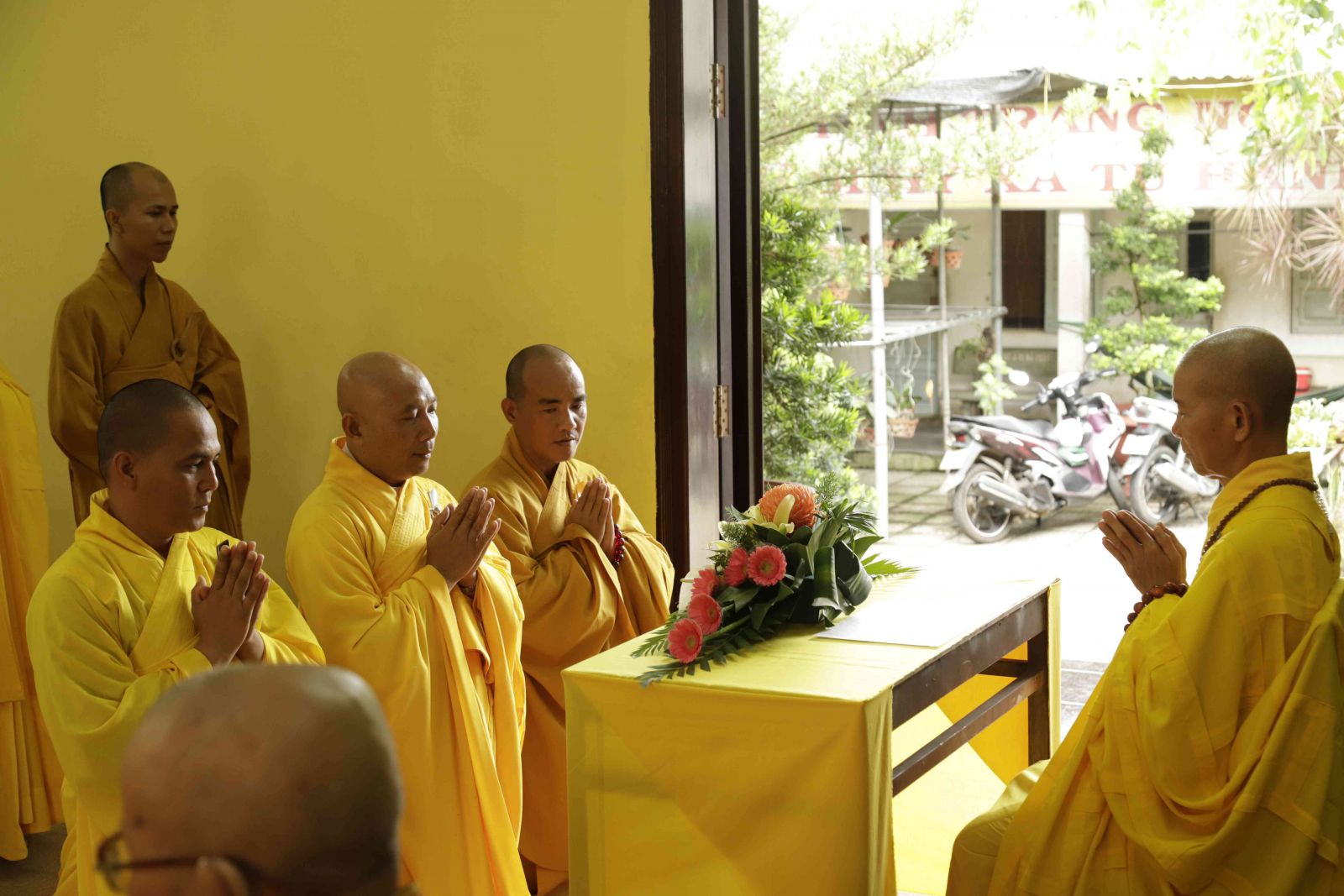 Đại diện gần 300 hành giả Tăng Ni an cư ĐĐ. Thích Nguyên Khả đã đối trước chư Tôn đức giáo phẩm để Cung an chức sự, cũng như sự phát nguyện nỗ lực tu học trong 03 tháng an cư để không phụ lòng mong mỏi của quý Ngài.