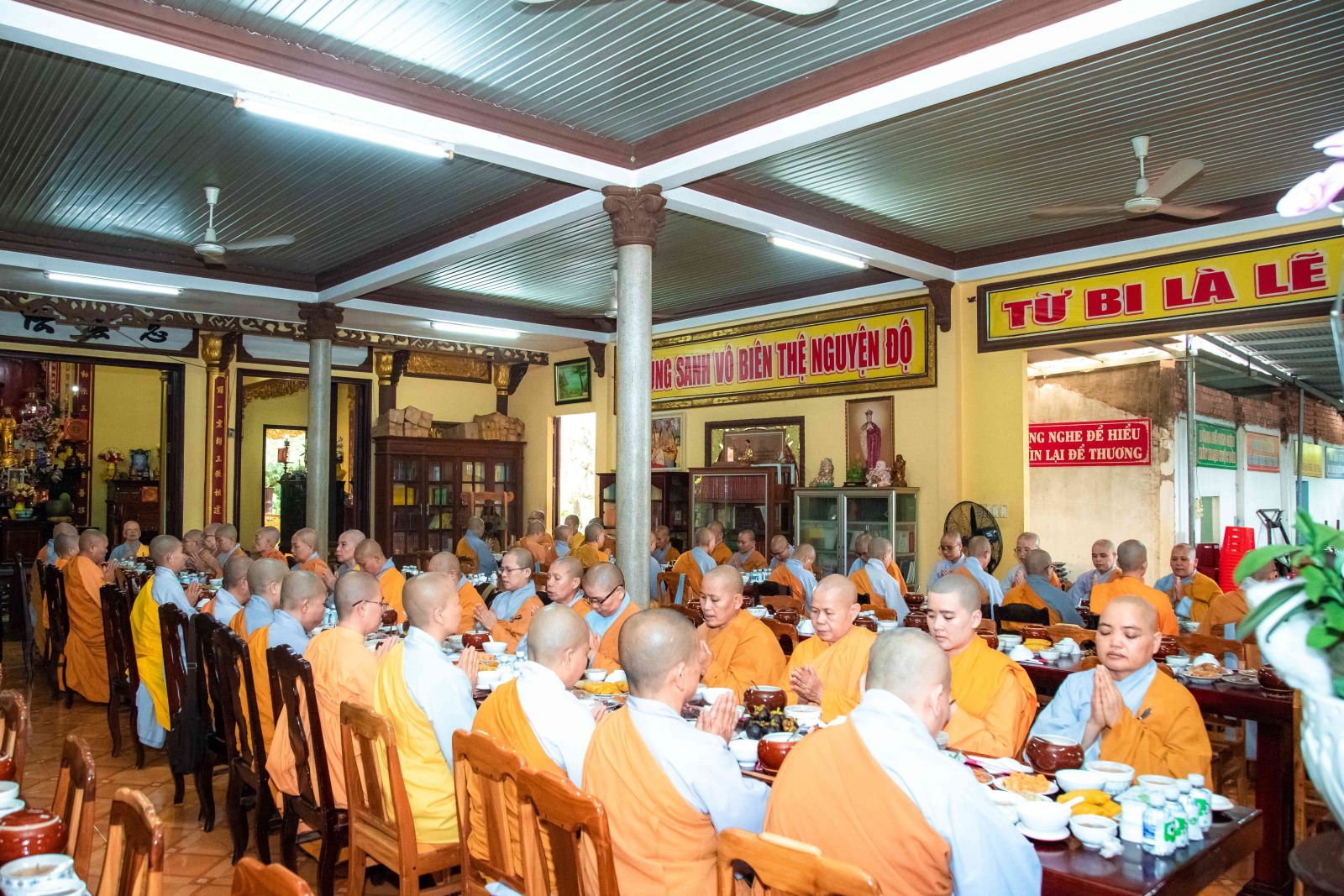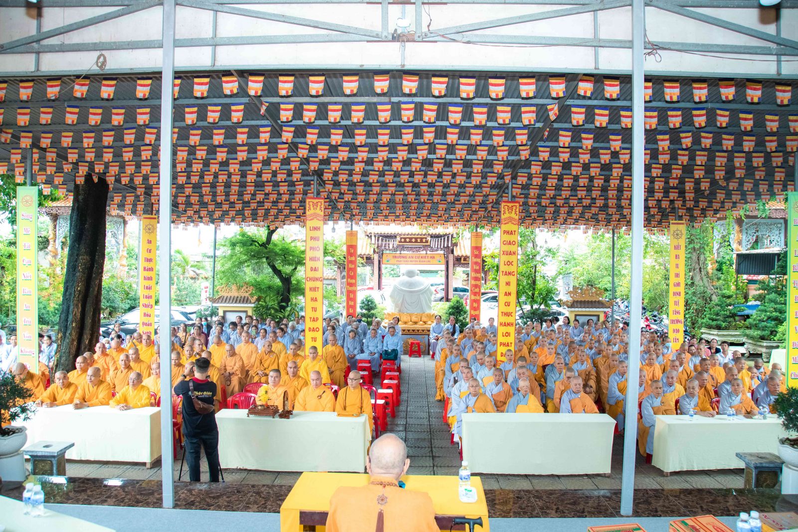 Tiếp đón đoàn BTS GHPGVN tỉnh có HT. Thích Giác Quang - chứng minh BTS GHPGVN huyện, Chứng minh kiêm Thiền chủ Trường hạ; HT. Thích Thiện Hoằng, HT. Thích Như Thanh, HT. Thích Huệ Nhẫn - đồng Chứng minh BTS GHPGVN huyện, Chứng minh kiêm Phó Thiền chủ Trường hạ; TT. Thích Huệ Quang - UV BTS GHPGVN tỉnh, Trưởng BTS GHPGVN huyện, Trưởng Ban Tổ chức An cư kiết hạ kiêm Giám luật Trường hạ; TT. Thích Chánh Huệ - Phó BTS, Trưởng Ban Nghi lễ GHPGVN huyện, Phó Ban Tổ chức An cư kiết hạ kiêm Hóa chủ Trường hạ Tăng; ĐĐ. Thích Quảng Vinh – Phó BTS, Trưởng Ban Pháp chế GHPGVN huyện, Phó Ban Tổ chức An cư kiết hạ kiêm Tri sự Trường hạ; ĐĐ. Thích An Quang - UV BTS GHPGVN tỉnh Đồng Nai, Chánh Thư Ký BTS GHPGVN huyện, Thư ký Trường hạ kiêm Thủ quỹ Trường hạ Tăng; ĐĐ. Thích Huệ Trường - Phó Thư Ký BTS, Chánh Văn phòng GHPGVN huyện; NT. Thích nữ Minh Ấn - Chứng minh Phân ban Ni giới GHPGVN huyện, Hóa chủ trường hạ Ni; NS. Thích nữ Huệ Ngọc - Trưởng Phân ban Ni giới GHPGVN huyện; cùng chư Tôn đức Thường trực BTS, chư Tôn đức BTS, chư Tôn đức Trụ trì các Tự viện và hành giả An cư tại Trường hạ huyện Xuân Lộc.