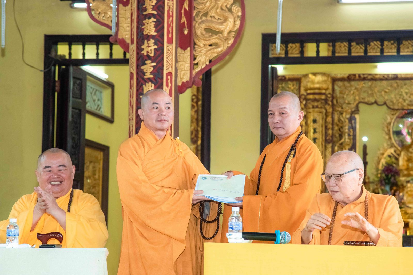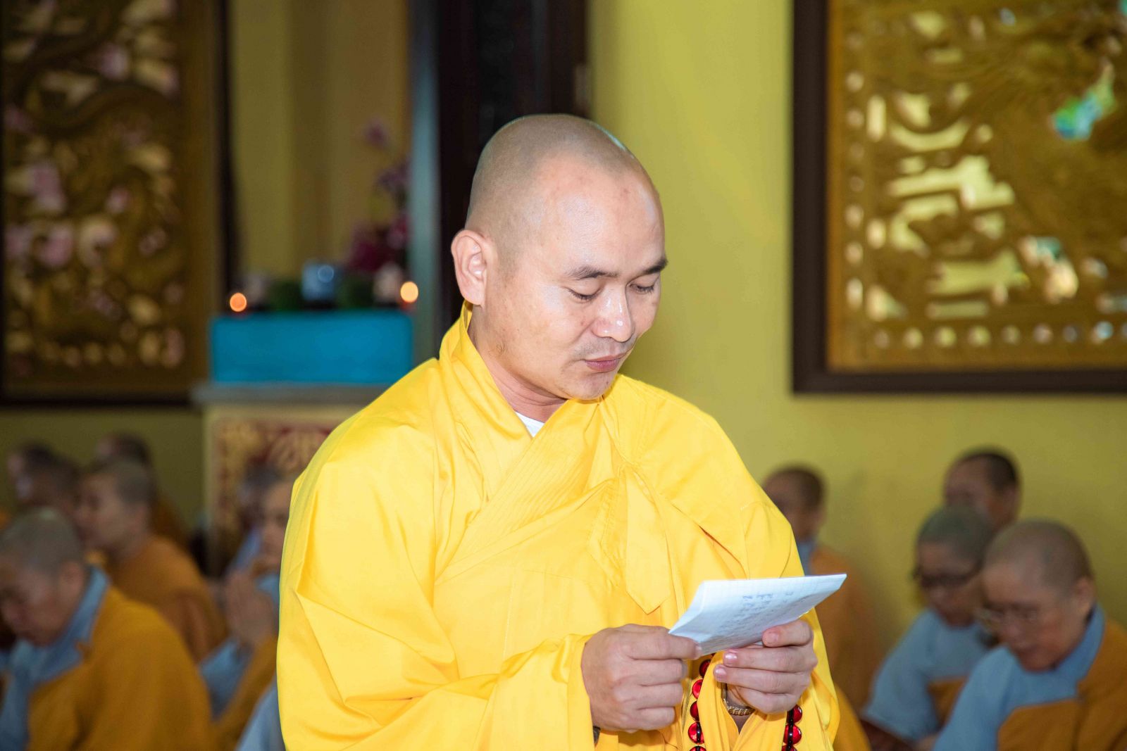 ĐĐ. Thích Phước Chơn đại diện BTS GHPGVN tỉnh dâng lời tác bạch cúng dường Trường hạ. TT. Thích Minh Trì - Phó BTS GHPGVN tỉnh đã thay mặt Thường trực BTS GHPGVN tỉnh Đồng Nai dâng tịnh tài, tịnh vật cúng dường đến Trường hạ GHPGVN huyện Xuân Lộc.