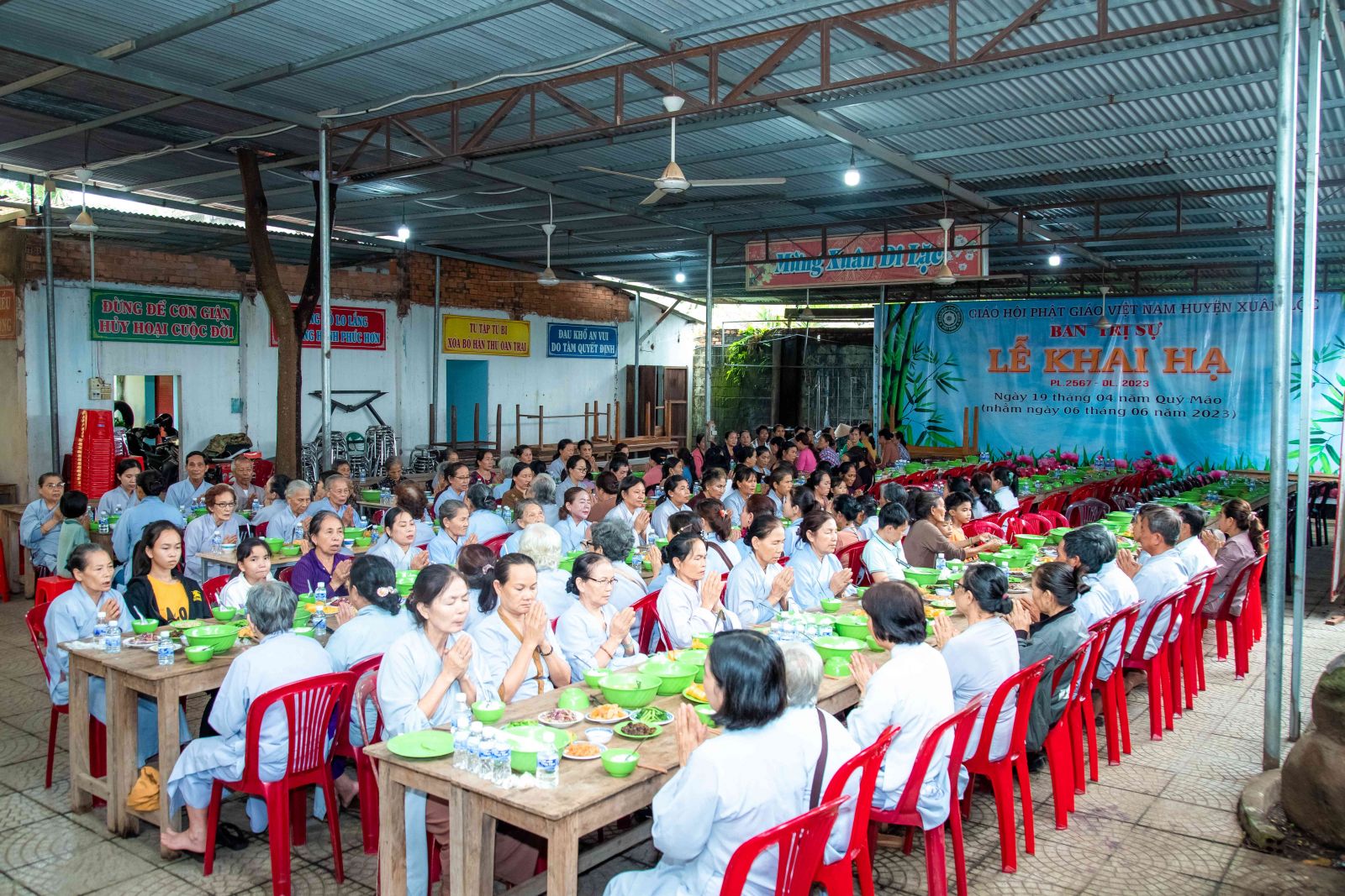ĐĐ. Thích An Quang - UV BTS GHPGVN tỉnh Đồng Nai, Chánh Thư Ký BTS GHPGVN huyện, Thư ký Trường hạ kiêm Thủ quỹ Trường hạ Tăng đã thay mặt Ban Tổ chức An cư kiết hạ báo cáo sơ lược về công tác tổ chức An cư kiết hạ PL. 2567 - DL. 2023 của BTS GHPGVN huyện. Theo đó tại Trường hạ GHPGVN huyện Xuân Lộc được tổ chức tại 02 điểm an cư, chư Tăng tại chùa Linh Phú (xã Xuân Phú) với tổng số 145 vị; chư Ni tại chùa Bảo Quang (xã Suối Cát) với tổng số 141 vị tham dự An cư kiết hạ. Lễ khai hạ được diễn ra vào ngày 19 tháng 04 năm Quý Mão và dự kiến lễ tự tứ mãn hạ sẽ được tổ chức vào ngày 09 tháng 07 năm Quý Mão.