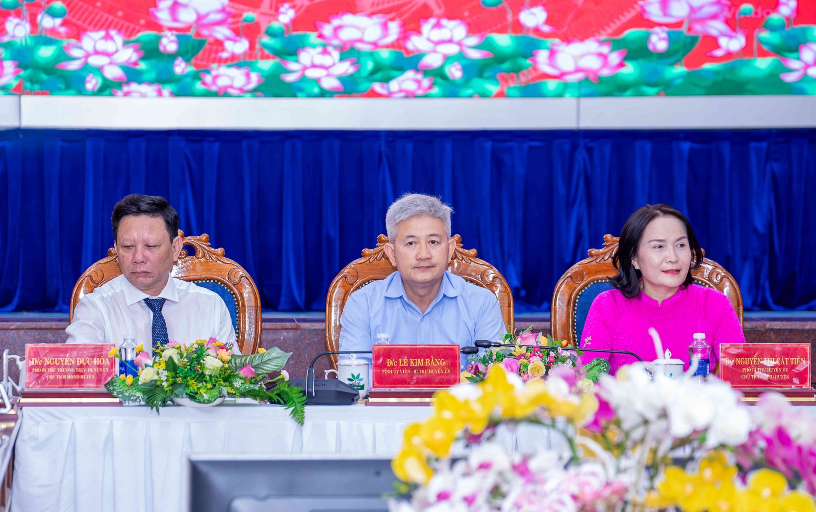Ông Lê Kim Bằng phát biểu tại buổi họp mặt, ông ghi nhận và biểu dương các vị chức sắc các tôn giáo tích cực tham gia vận động bà con tín đồ thực hiện tốt các phong trào thi đua yêu nước, nhân đạo từ thiện tại địa phương; mong muốn thắt chặt mối gắn kết giữa chính quyền, các ban, ngành, đoàn thể với các tôn giáo. Ông cũng khẳng định rằng sự phát triển của huyện luôn có sự đóng góp to lớn của các tôn giáo. Ông cũng rất vui mừng nhân dịp những ngày cuối năm này lãnh đạo huyện có dịp gặp gỡ các chức sắc tôn giáo để cùng trao đổi tâm tình trong sự gắn kết giữa Đảng, Chính quyền huyện và các tôn giáo.