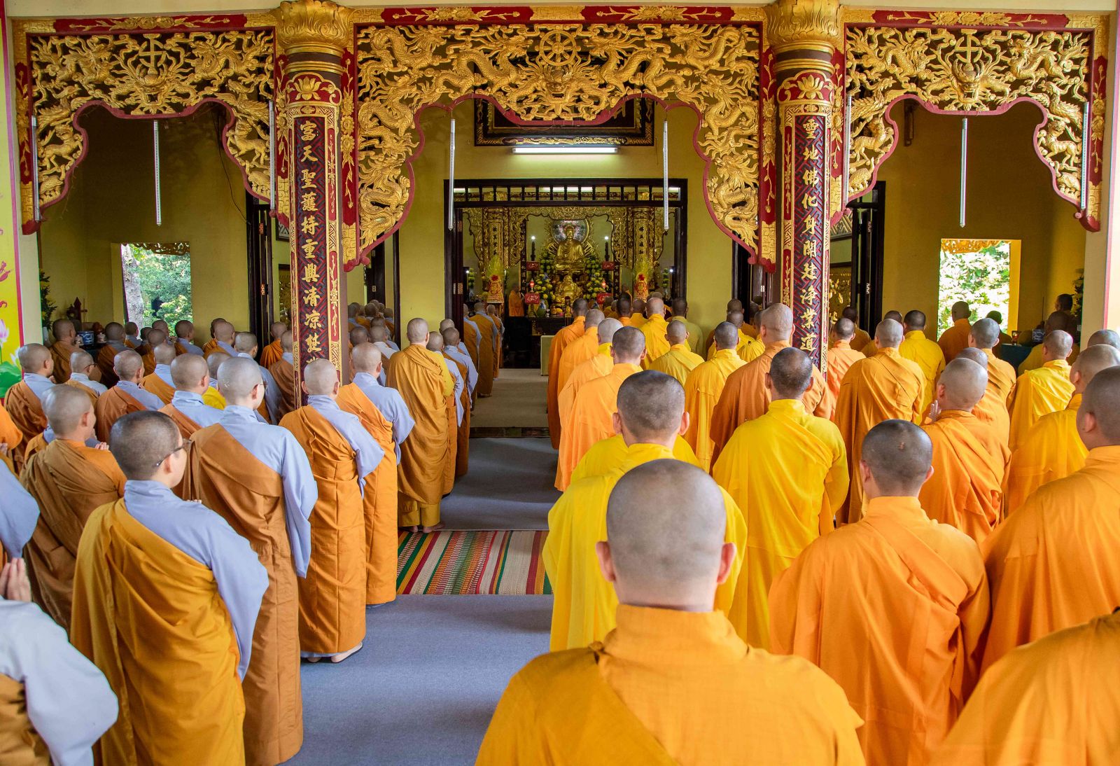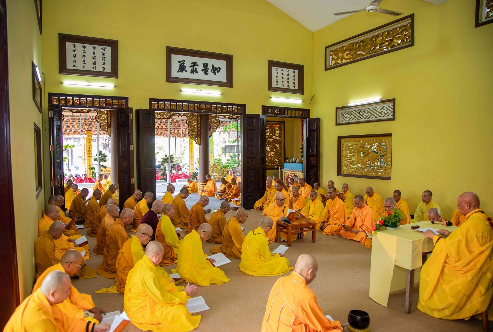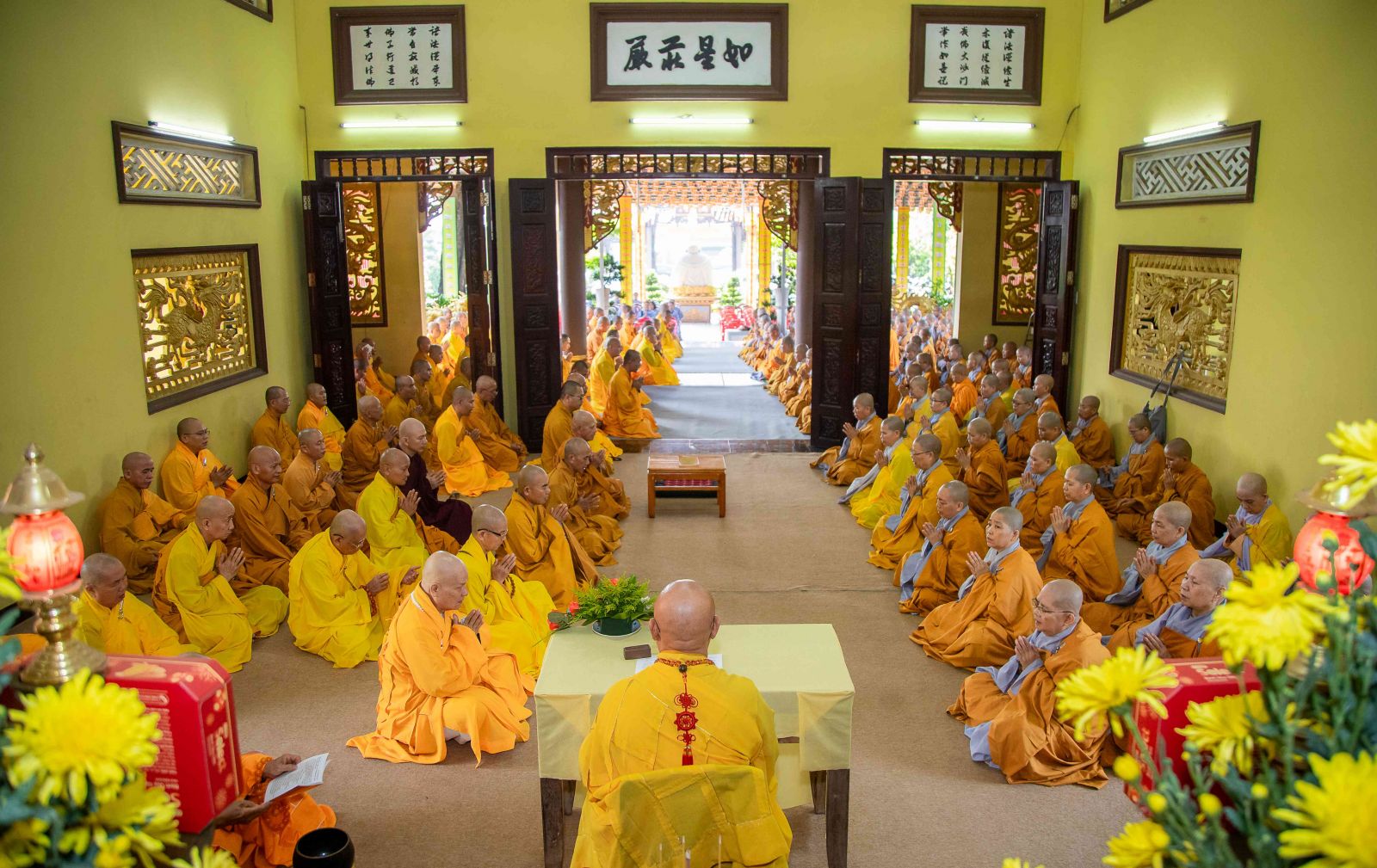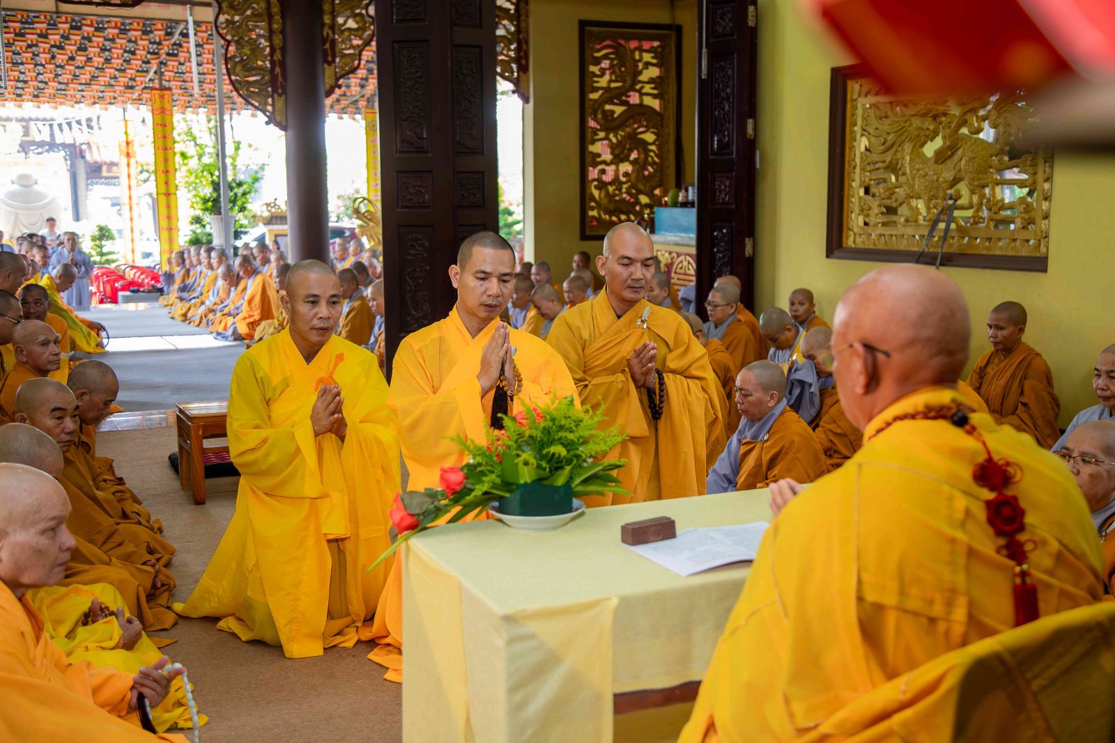 Chư Tôn giáo phẩm Ban chứng minh niêm hương bạch Phật, sau đó toàn thể đại chúng thành kính đảnh lễ Tam bảo, thực hiện nghi thức Yết-ma.