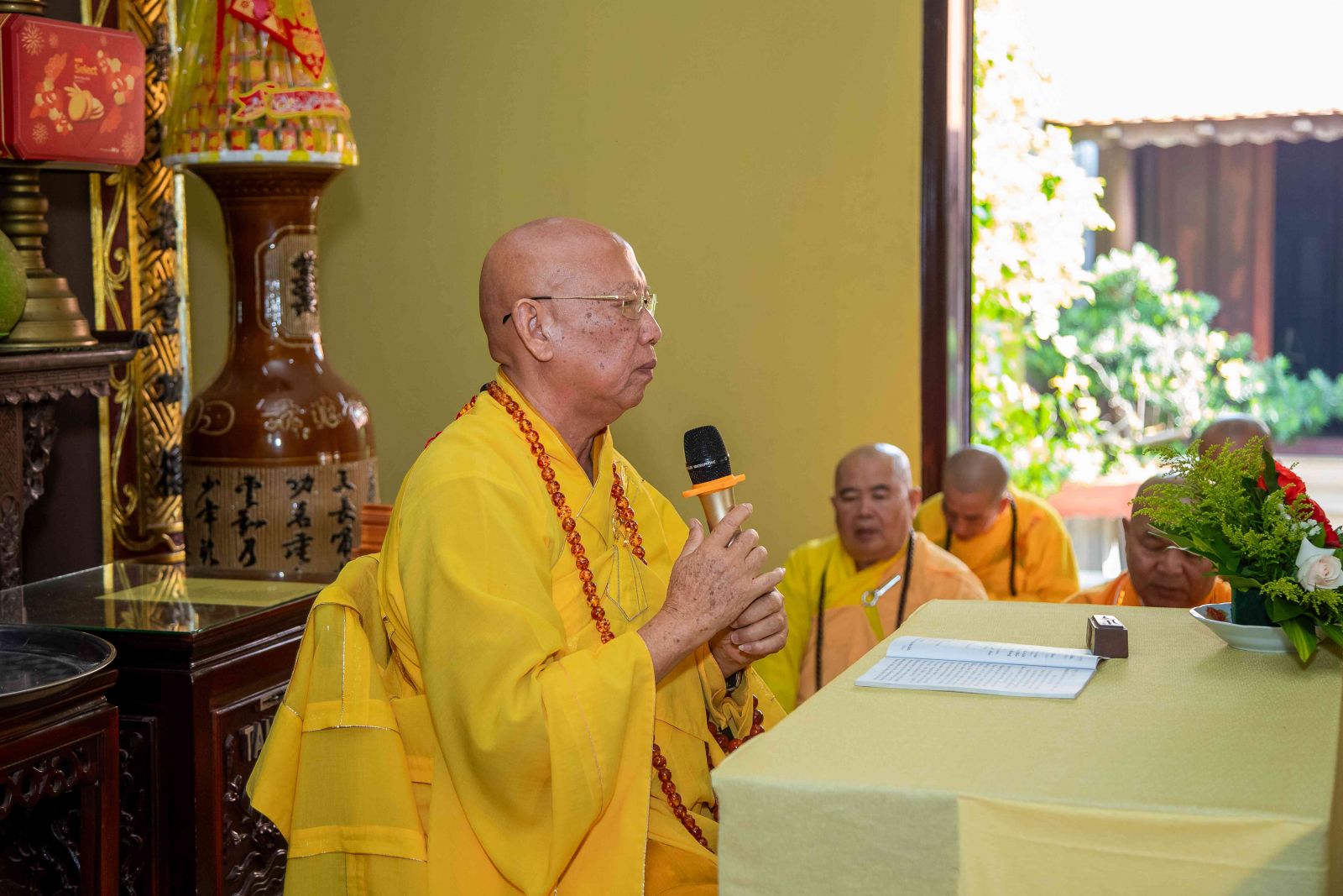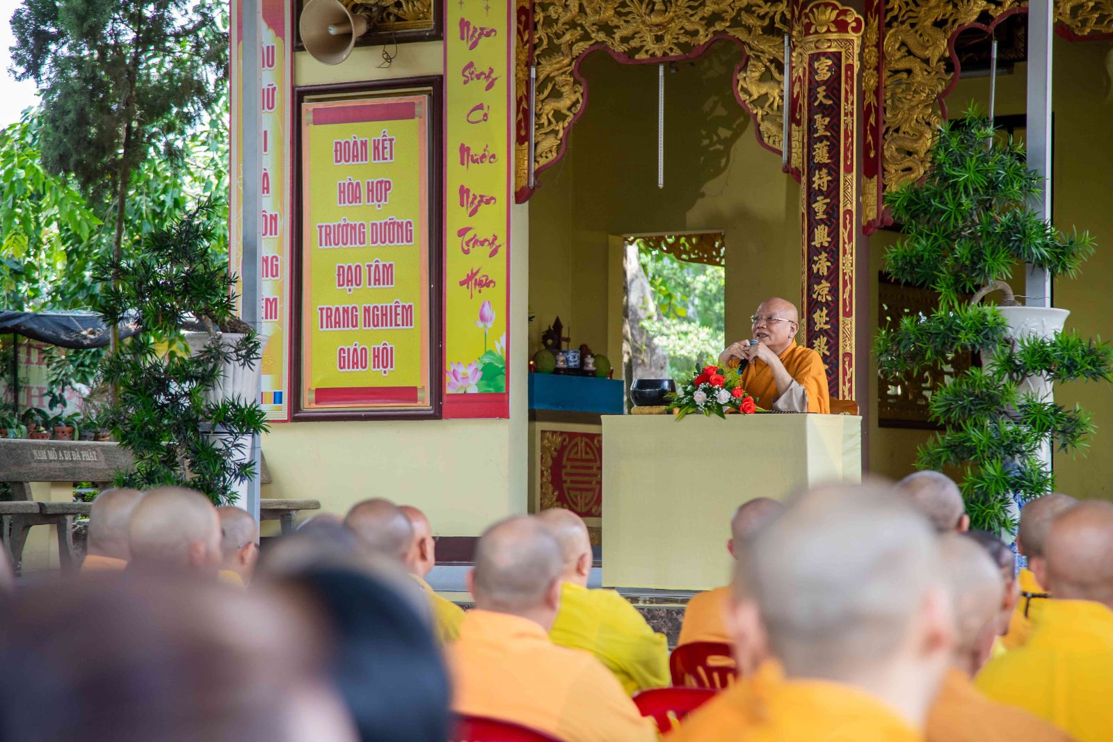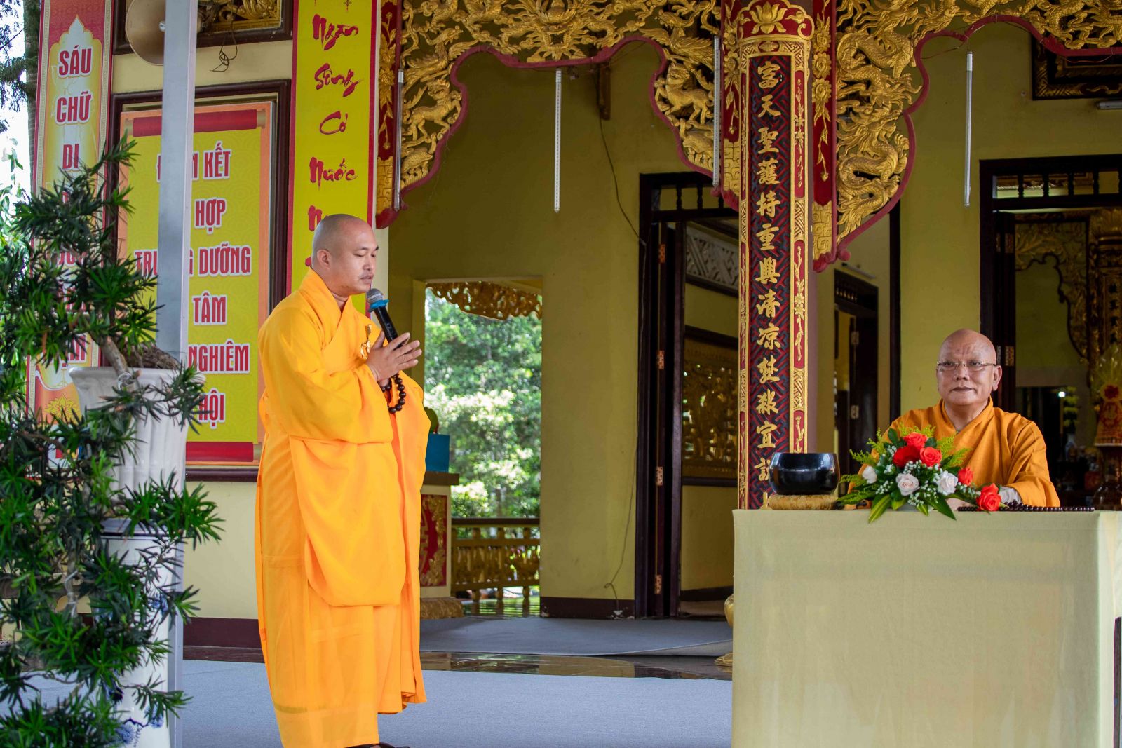 Sau lễ Bố-tát toàn thể chư Tăng Ni vân tập cung thỉnh TT. Thích Huệ Sanh - Ủy Viên HĐTS, Phó BTS, Trưởng Ban Hoằng pháp GHPGVN tỉnh Đồng Nai, Pháp sư trường hạ quang lâm chia sẻ, sách tấn chư Tăng Ni hành giả An cư. Trong bài pháp thoại Thượng tọa nhấn mạnh: “An cư là dịp Tăng đoàn tập trung thành cộng đồng theo từng trú xứ nhất định, sinh hoạt trong tinh thần thanh tịnh và hòa hợp ngõ hầu tăng trưởng giới thân huệ mạng xứng đáng để cho hàng Phật tử tại gia cung kính tôn trọng. Muốn chánh pháp trường tồn, trong mùa an cư kiết hạ mỗi hành giả cần phải tinh tấn nỗ lực hết mình để hành trì hành trì giáo pháp của Thế Tôn, ngõ hầu đem năng lượng an lành đó ban rải đến mọi người và mọi loài. Cầu nguyện cho thế giới chấm dứt chiến tranh, đất nước thanh bình, chúng sanh an lạc”.