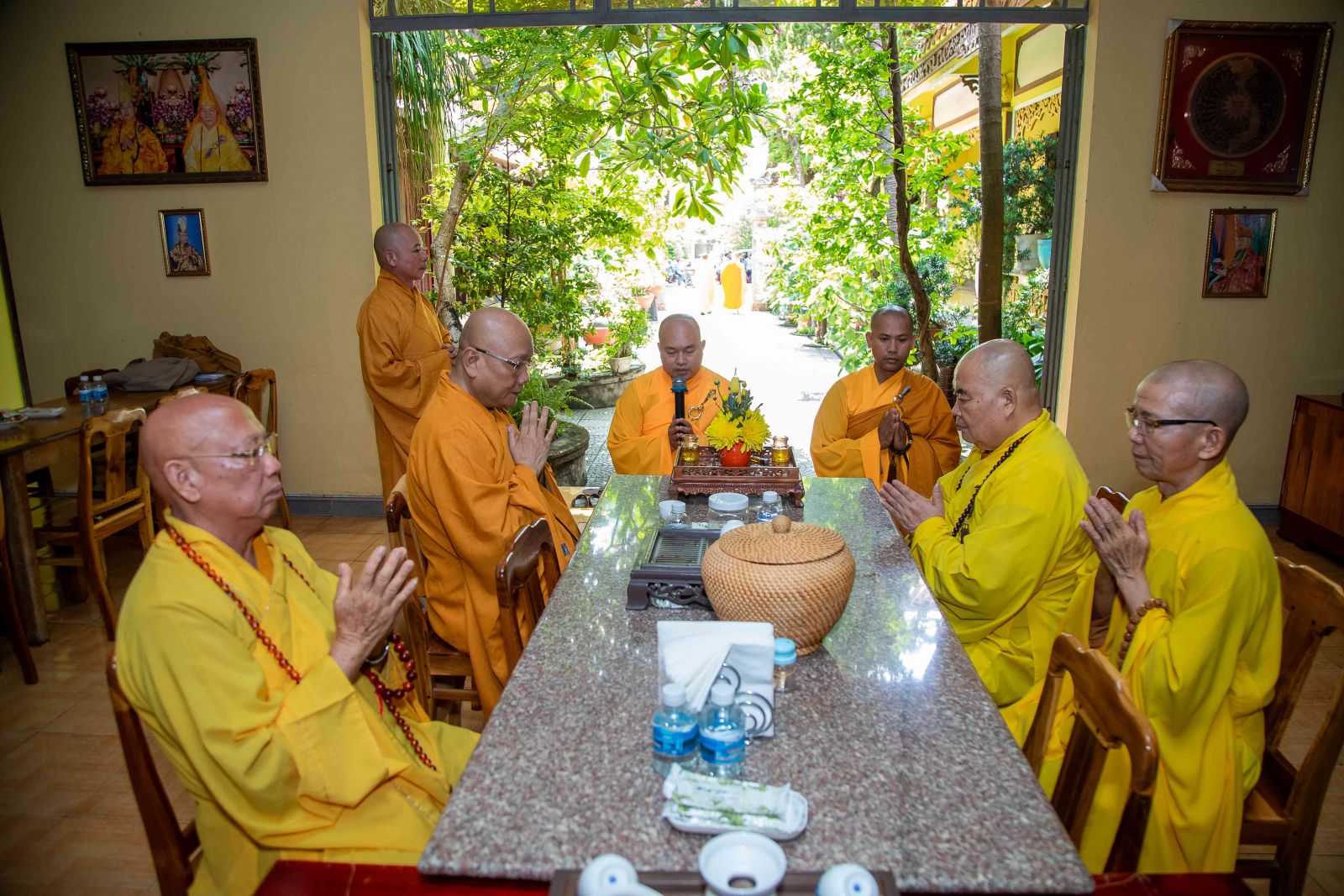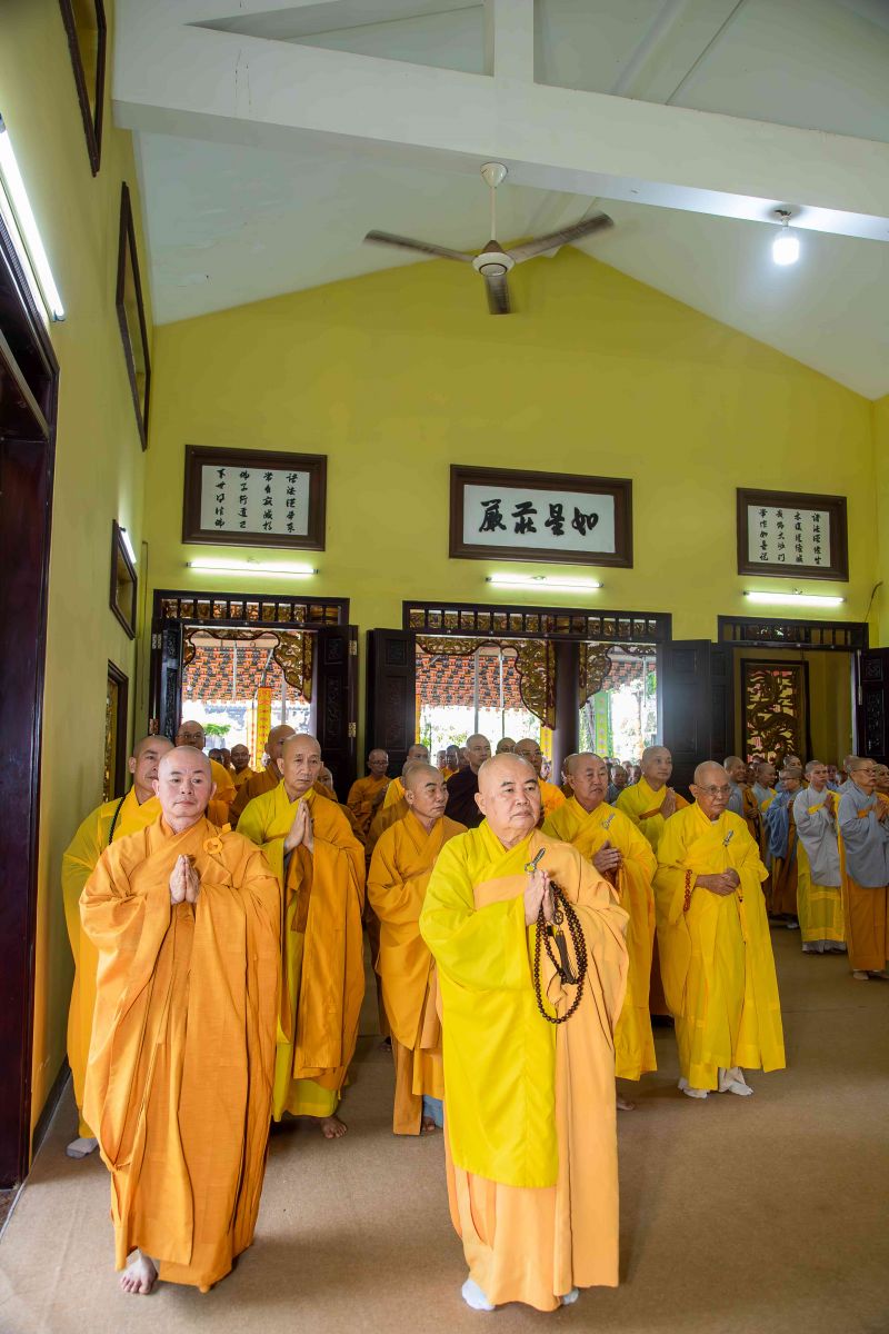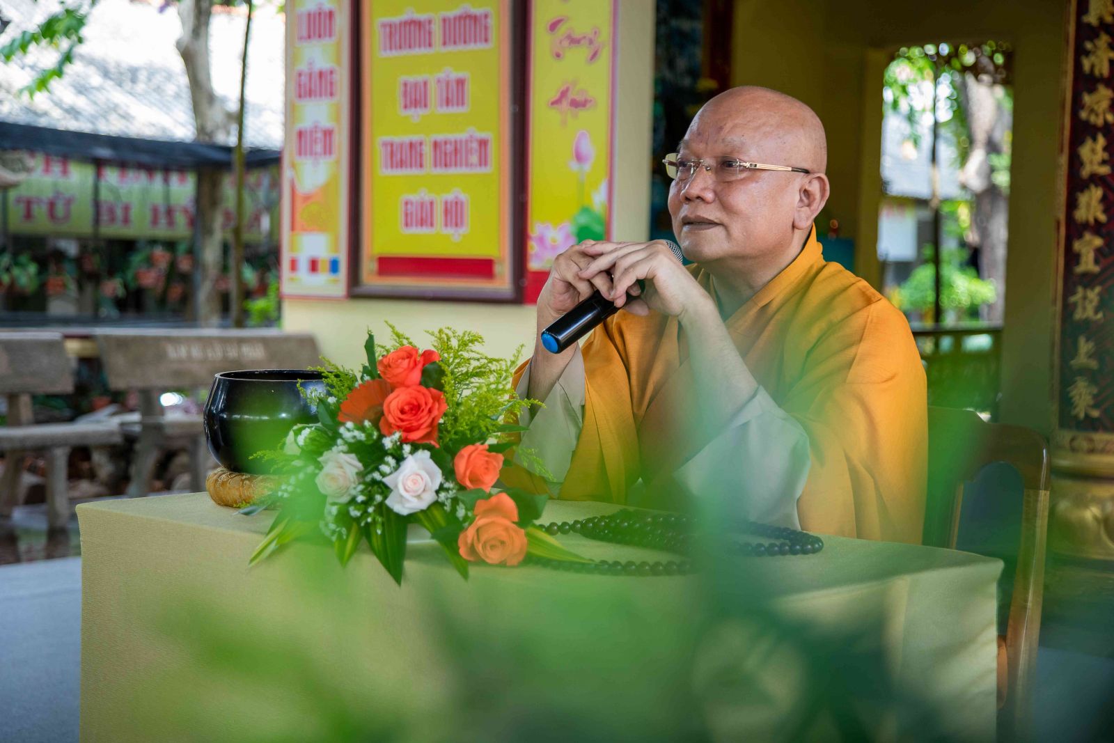 Sau lễ Bố-tát toàn thể chư Tăng Ni vân tập cung thỉnh TT. Thích Huệ Sanh - Ủy Viên HĐTS, Phó BTS, Trưởng Ban Hoằng pháp GHPGVN tỉnh Đồng Nai, Pháp sư trường hạ quang lâm chia sẻ, sách tấn chư Tăng Ni hành giả An cư. Trong bài pháp thoại Thượng tọa nhấn mạnh: “An cư là dịp Tăng đoàn tập trung thành cộng đồng theo từng trú xứ nhất định, sinh hoạt trong tinh thần thanh tịnh và hòa hợp ngõ hầu tăng trưởng giới thân huệ mạng xứng đáng để cho hàng Phật tử tại gia cung kính tôn trọng. Muốn chánh pháp trường tồn, trong mùa an cư kiết hạ mỗi hành giả cần phải tinh tấn nỗ lực hết mình để hành trì hành trì giáo pháp của Thế Tôn, ngõ hầu đem năng lượng an lành đó ban rải đến mọi người và mọi loài. Cầu nguyện cho thế giới chấm dứt chiến tranh, đất nước thanh bình, chúng sanh an lạc”.