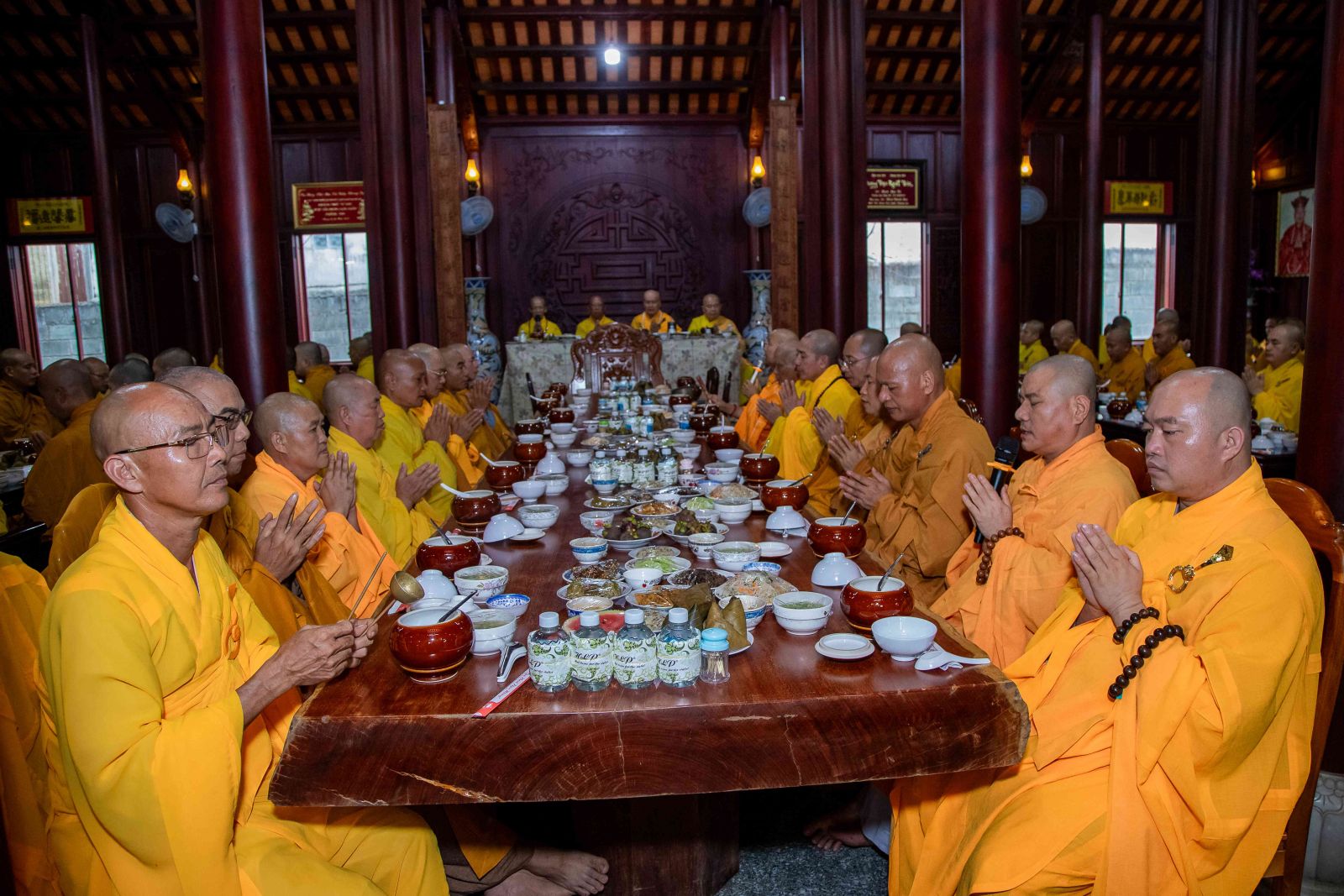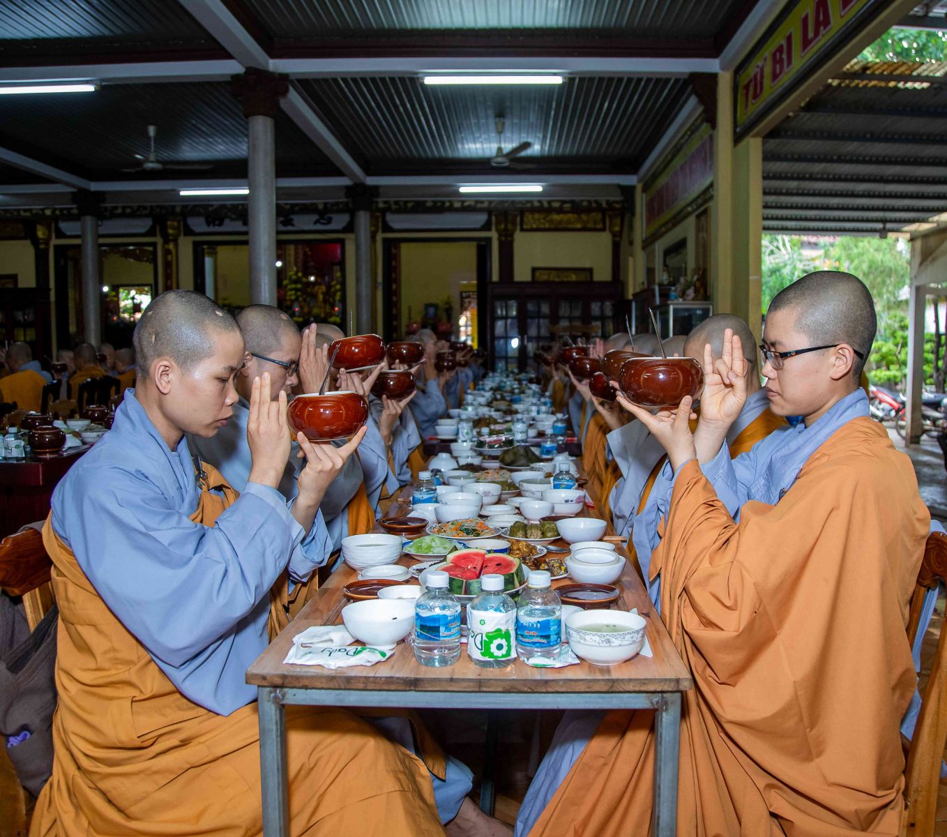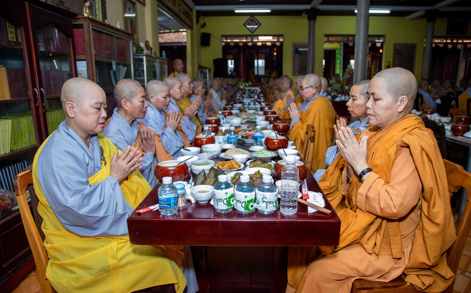 Sau đó toàn thể Chư Tăng Ni, quý nam nữ Phật tử đồng vân tập về tại trai đường để thực hiện nghi thức quá đường và thọ trai.