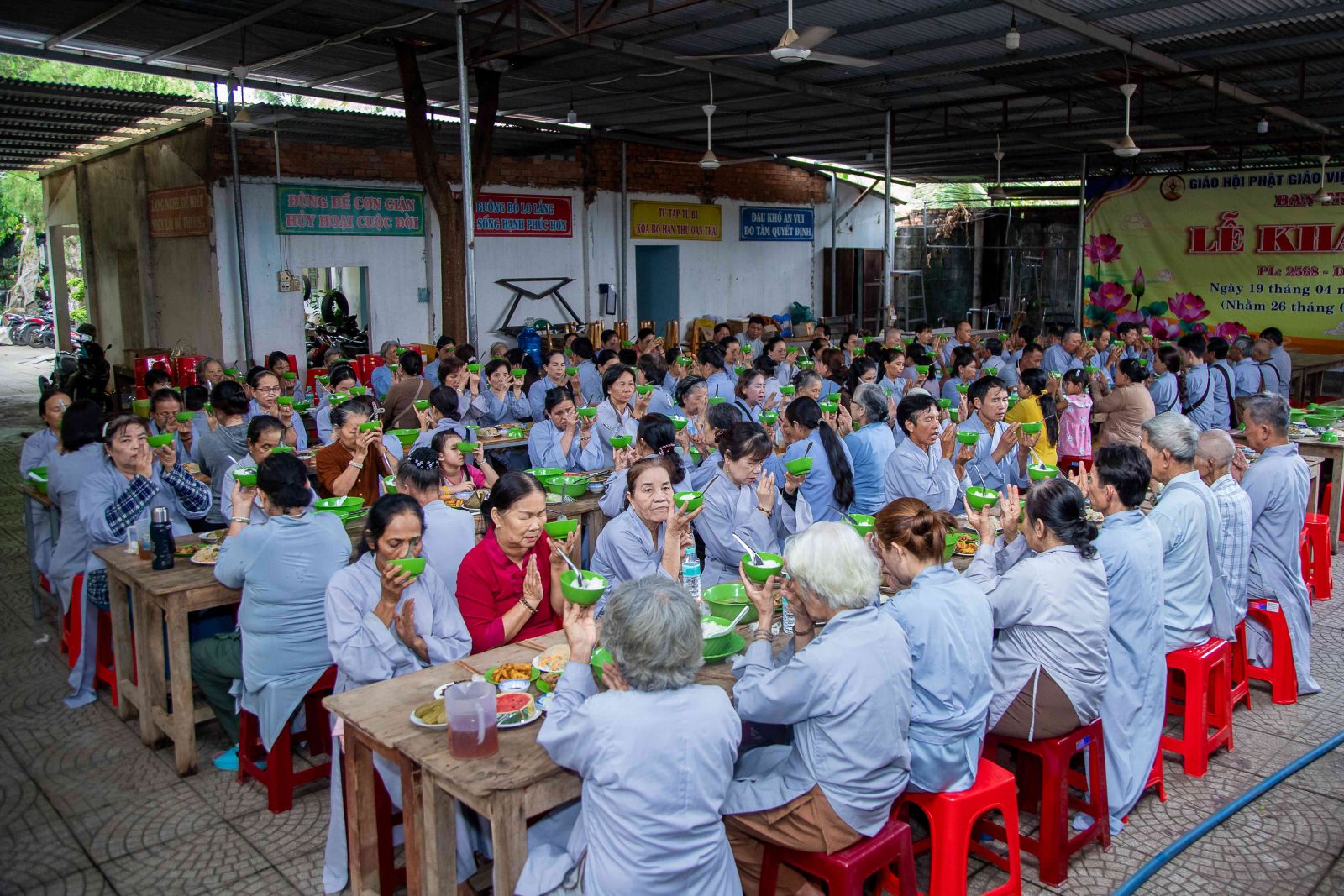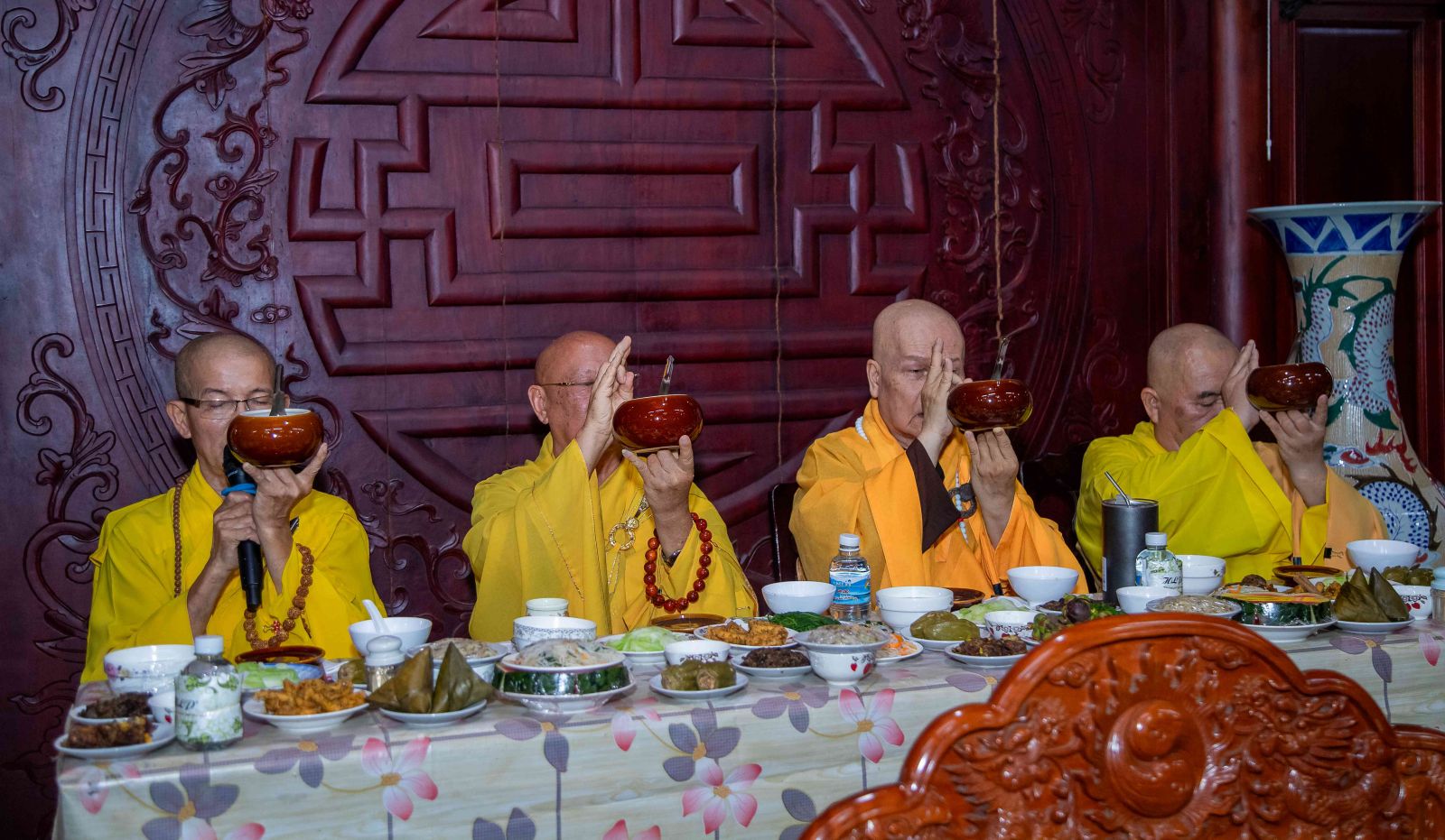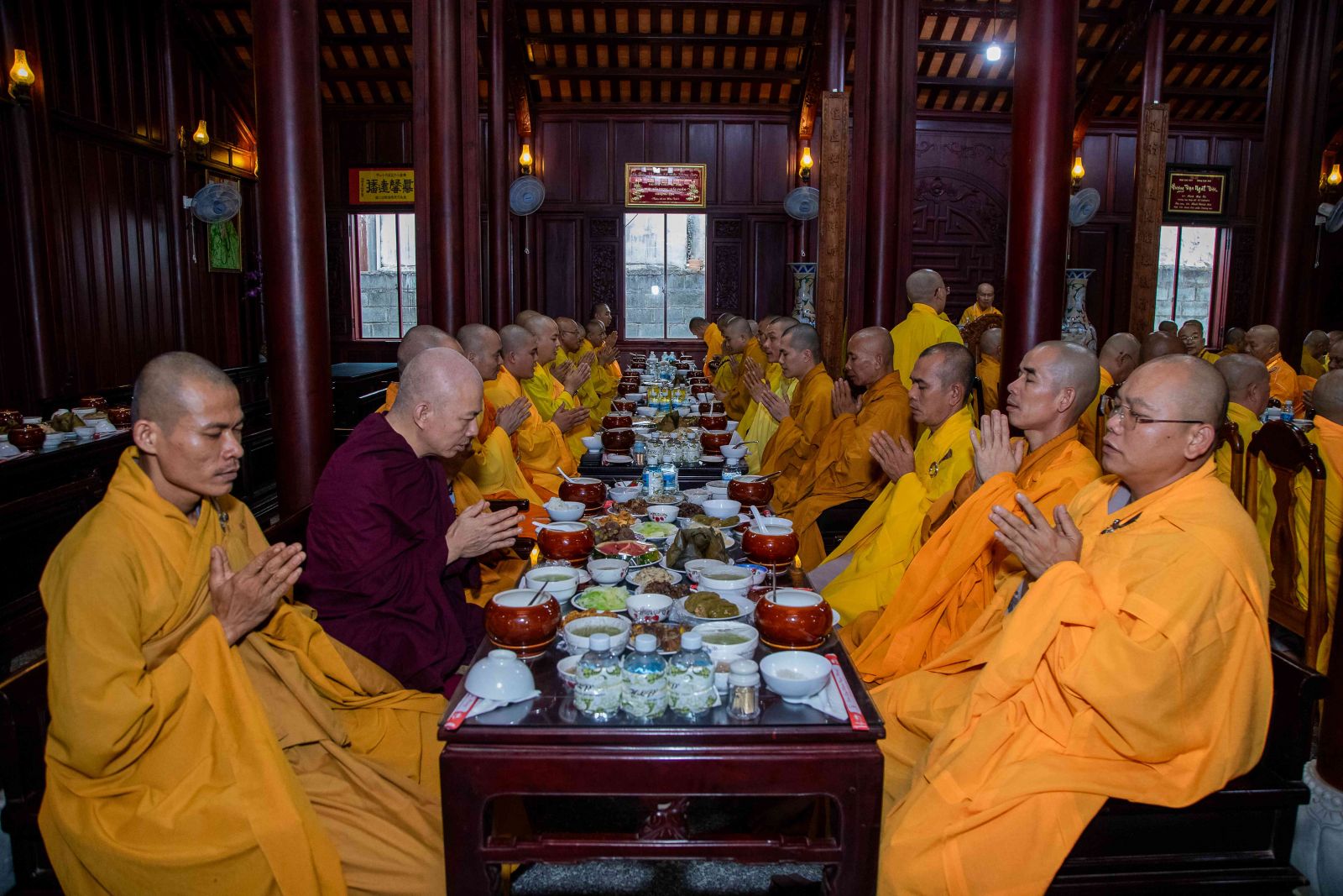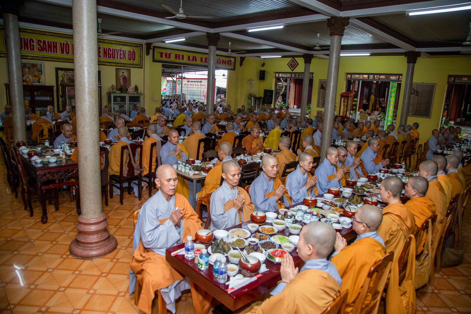Sau đó toàn thể Chư Tăng Ni, quý nam nữ Phật tử đồng vân tập về tại trai đường để thực hiện nghi thức quá đường và thọ trai.
