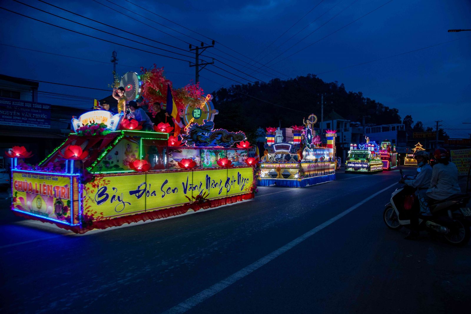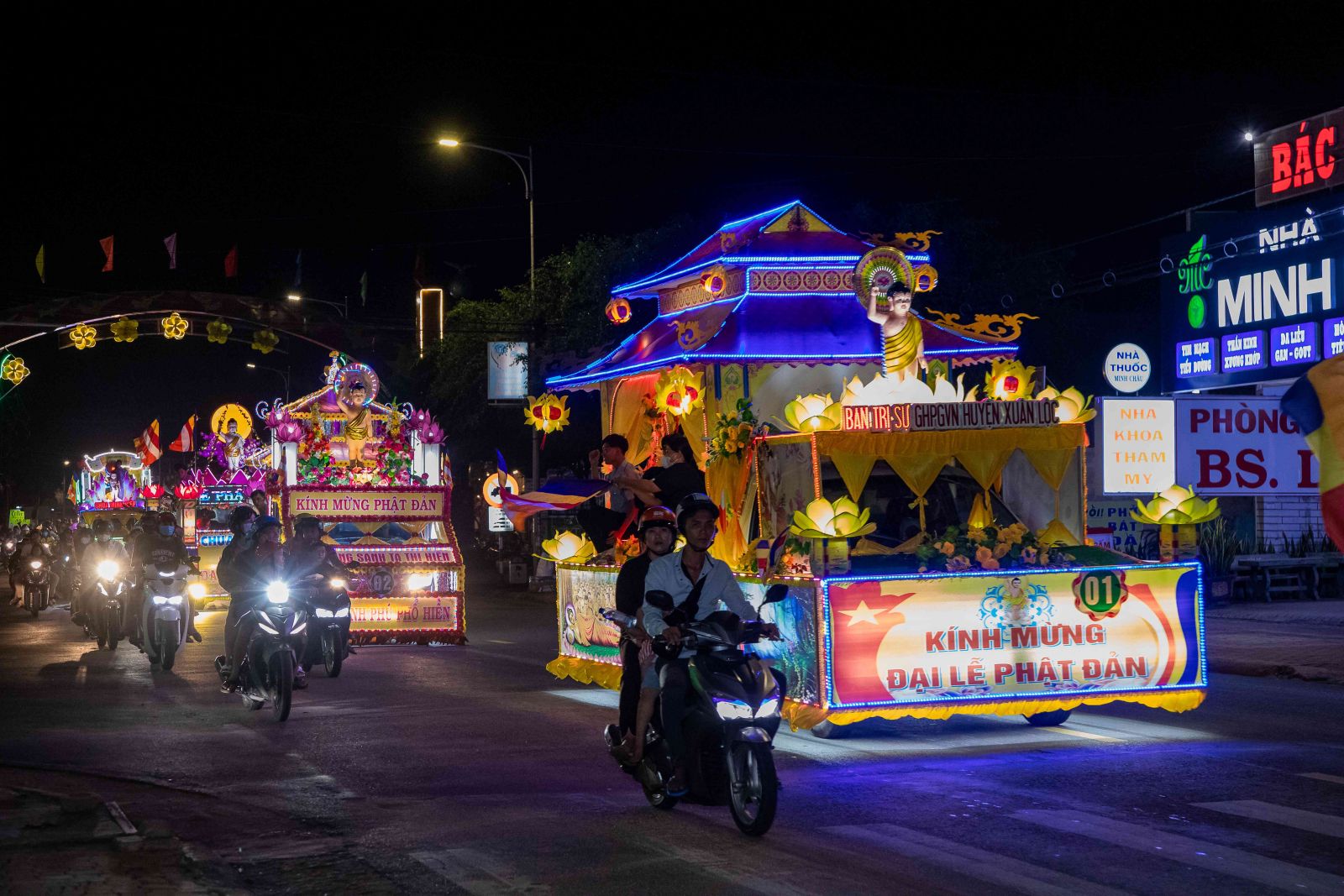 Chiều ngày 13/04/Giáp Thìn, 14 chiếc xe hoa đã được trang trí cờ hoa rực rỡ đã tập trung về tại Chùa Huyện Hội Xuân Lộc (Trụ sở Ban Trị sự). Chư Tăng Ni cùng các Phật tử trong huyện cùng vân tập về lễ đài chính.. Mỗi chiếc xe hoa đều được từng đơn vị tự viện thiết trí một cách rất công phu, tỉ mỉ, có sự sáng tạo riêng xoay quanh chủ đề về cuộc đời Đức Phật từ khi Ngài đản sinh cho tới lúc Ngài nhập Niết-bàn, hình ảnh mái chùa, tháp chuông… thể hiện tấm lòng chân thành của người con Phật dâng lên Đấng Từ Phụ nhân kỷ niệm 2568 năm ngày Ngài thị hiện ở cõi Ta-bà. Bên cạnh đó có hơn 30 chiếc xe 4 chỗ, 7 chỗ ngồi và xe bán tải đều được trang trí tượng Phật đản sanh, kết cờ hoa để tham gia diễu hành.
