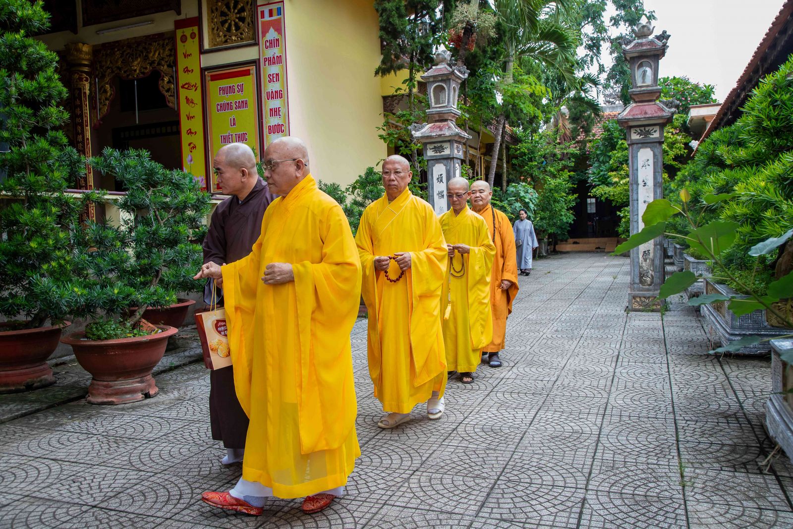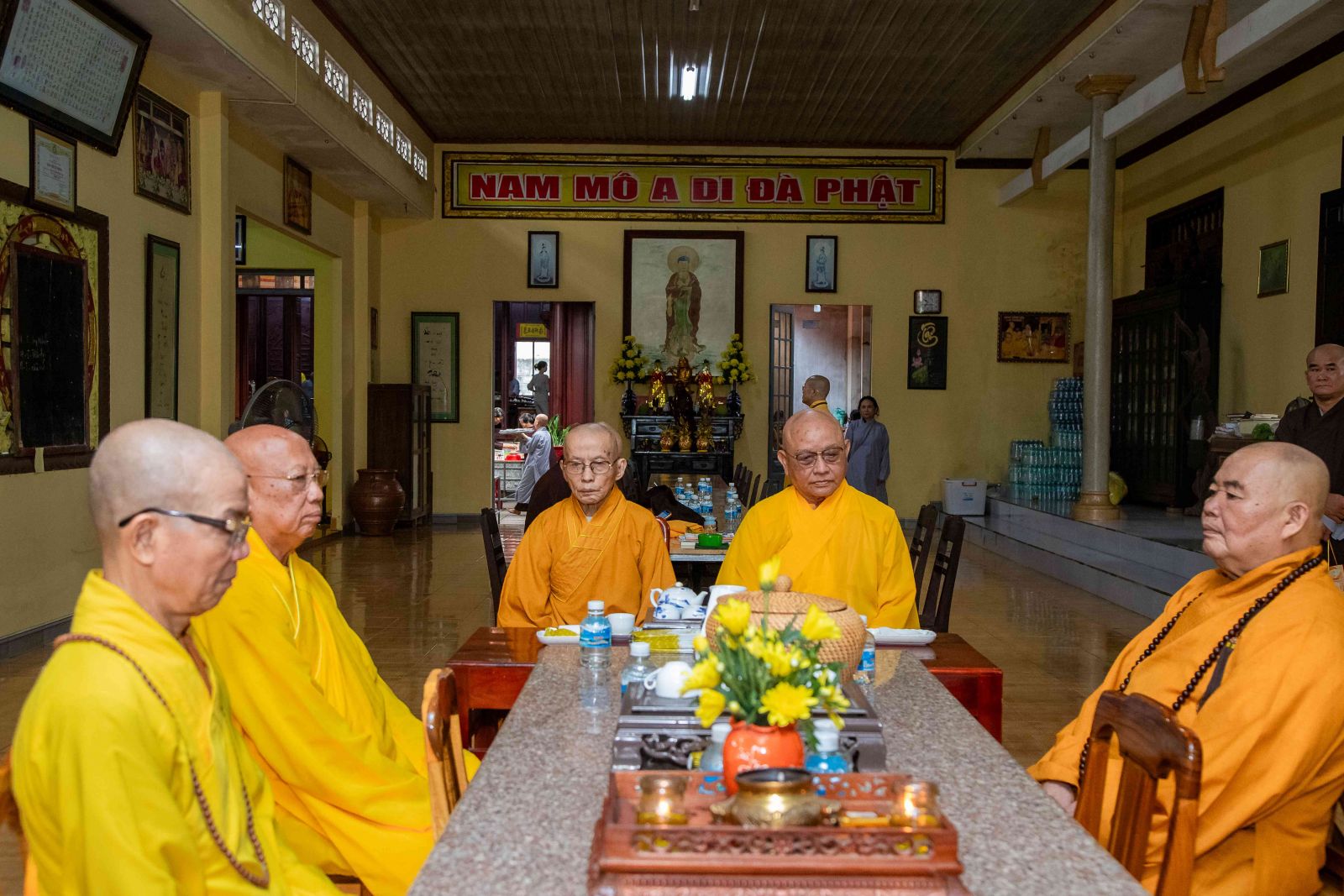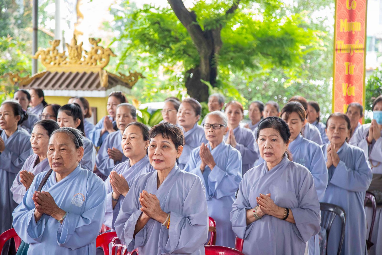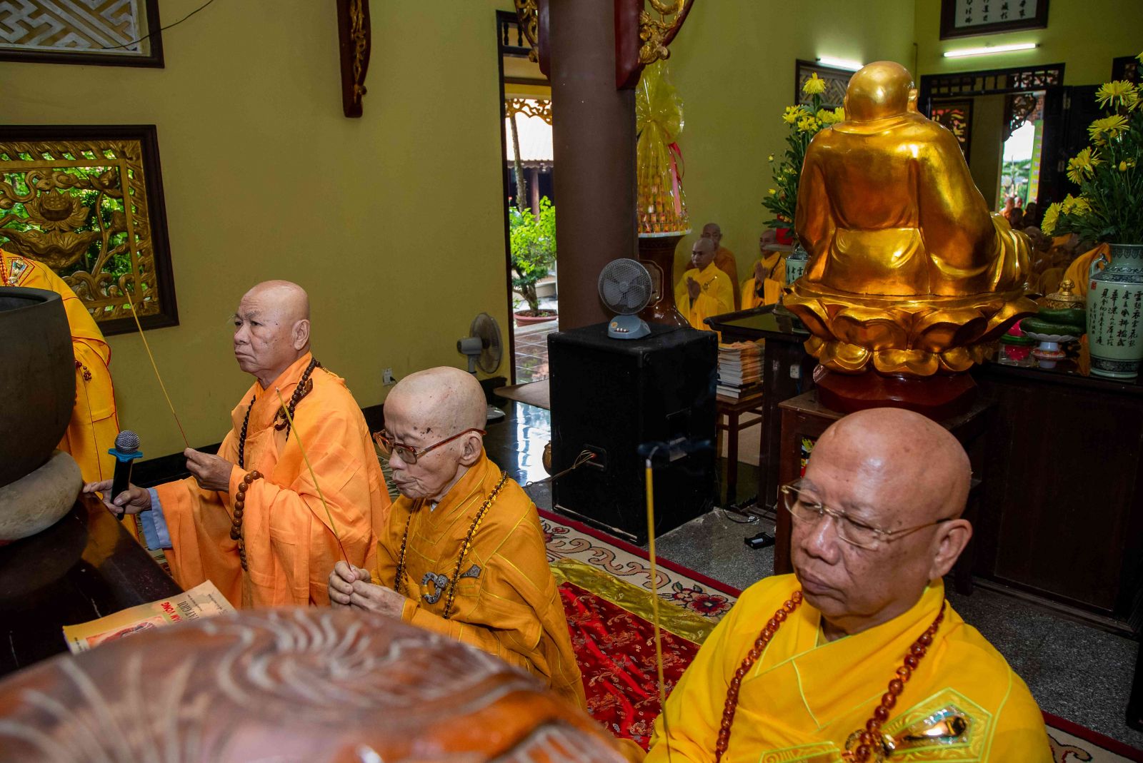 Tại chánh điện, chư Tôn giáo phẩm Ban Chứng minh, Ban chức sự Trường hạ niêm hương bạch Phật; toàn thể đại chúng thành kính đảnh lễ Tam bảo, thực hiện nghi thức Bố-tát theo pháp. Đây là kỳ Bố-tát vào ngày Rằm nên chư Tôn đức Tăng Ni cùng quý Phật tử thọ Bồ-tát giới đồng lắng nghe HT. Thích Thiện Đồng trùng tuyên Kinh Phạm Võng Bồ Tát giới.