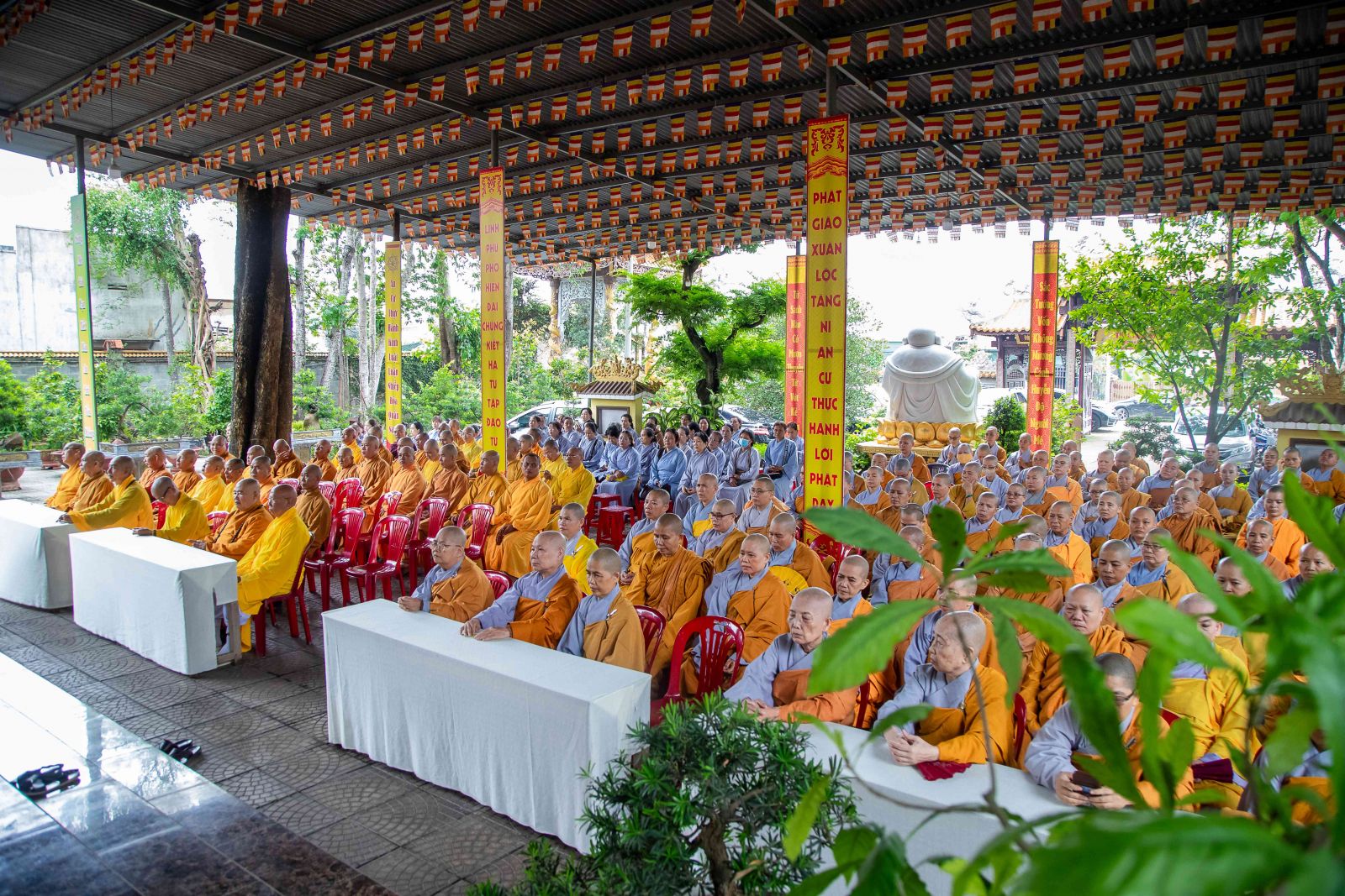 Sau nghi thức Bố-tát toàn thể chư Tăng Ni và quý Phật tử vân tập tại hội trường để lắng nghe pháp thoại của HT. Thích Thiện Đạo - Thành viên HĐCM Trung ương GHPGVN, Chứng minh BTS GHPGVN tỉnh, Chứng minh Trường hạ huyện Xuân Lộc. Trong thời Pháp thoại Hòa thượng Pháp sư đã sách tấn chư Tăng Ni hành giả An cư. Chúng ta đã là người tu học Phật, là con của Như Lai thì phải sống với nhau làm sao trọn vẹn cả tâm lẫn trí, hai cái này cần phải được hỗ tương cho nhau. Khi cái tâm được nâng đỡ, nuôi nấng thì cái trí sẽ phát triển tốt và cái trí đó sẽ hỗ trợ cho cái tâm phát triển nhanh và phát triển đúng hướng. Tất cả Tăng Ni nên sống đúng với nếp sống cộng đồng để rồi cùng vui, cùng tu học tiến bộ với nhau đừng tạo nên bất cứ điều gì bất hòa với nhau, bởi vì pháp của Đức Thế Tôn là pháp thanh tịnh và an vui. Mỗi hành giả an cư cần cố gắng hòa hợp, an vui, hoan hỷ và nhất là “phải tốt cái tâm chứ đừng thâm cái đầu”. Mỗi cá nhân cần phải tự gột rửa, cần làm sạch thân tâm của mình đừng để bị nhiễm ô giữa dòng xoáy của cuộc đời này.